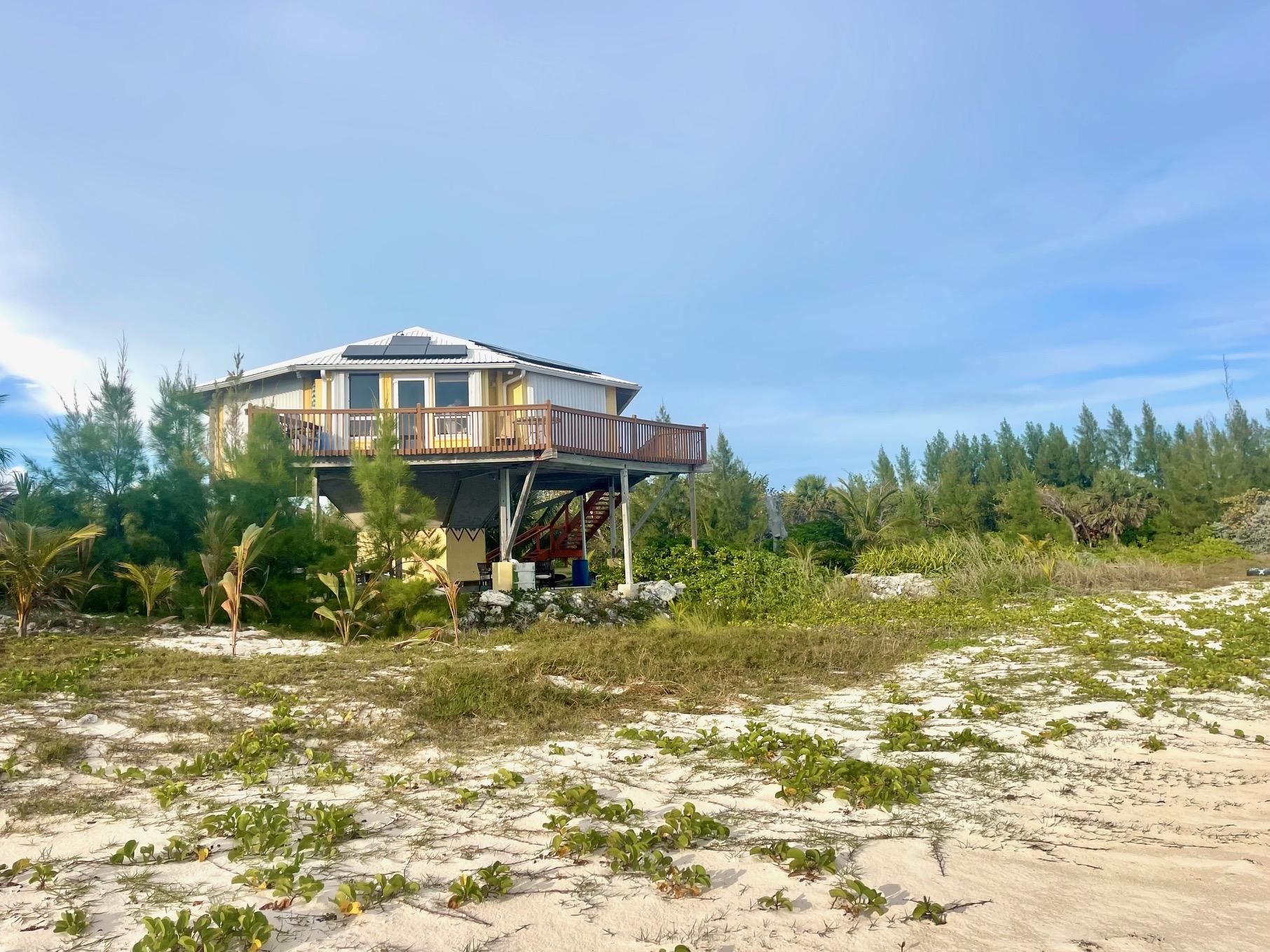 Escape to your private island retreat! This hurricane-resistant, self-sufficient home is anchored 18 feet into bedrock and has hurricane-proof windows, storm shutters, and a durable metal roof, sustaining no damage from past storms. Located on the east side of Grand Bahama, just 30 minutes from town, it offers 116 feet of pristine beachfront with breathtaking panoramic ocean views. The home features 2 bedrooms, 2.5 baths, plus a downstairs room (with that half bath), perfect for guests or extra storage. The shaded area under the home is great for a workshop, lounge, or alfresco dining. Completely off-grid and self-contained, it runs on solar power, well water, and a generator for backup. Solar panels power all appliances, lights, and the well pump, while the generator runs the water heater. Sitting on a 21,324 sq. ft. lot, the property includes easement access to the road and a low annual property tax of just $504. A true tropical paradise, built to last!
