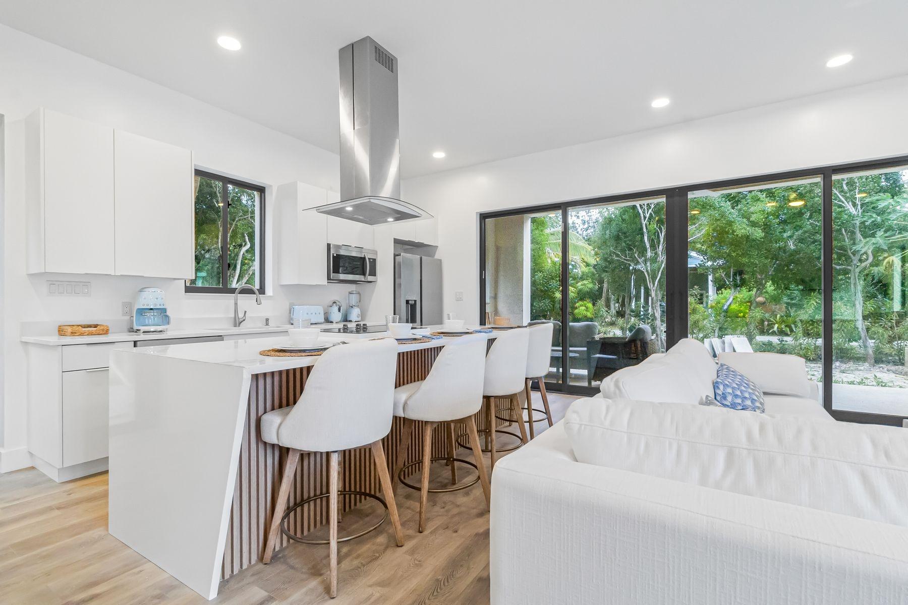 Discover this stunning modern contemporary home nestled within the serene La Bougainvillea Resort property, just off Banks Road. Enjoy beautiful garden views with access to resort amenities, including beach access. This exceptional residence is built with patented SprayRock technology, providing one of the strongest hurricane-rated structures available today, certified for Miami-Dade standards and engineered to withstand winds up to 180MPH. Its energy-efficient green design features low-e HVHZ impact doors and windows, along with superior closed-cell spray foam insulation, ensuring remarkable fire, moisture, mold, mildew, termite, and insect resistance. This thoughtful construction helps keep operating and maintenance costs low, while creating a healthy, safe environment for your family. Centrally located on the La Bougainvillea Resort property, this home is just 12 minutes from Historic Governor’s Harbour, and a short stroll to world famous pink sand beaches.