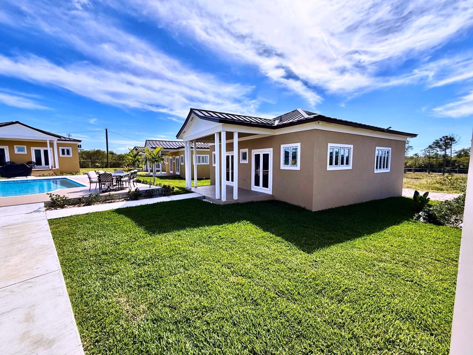 You can enjoy the tranquility and serenity of this newly built two-bedroom, 1.5-bath home situated in the quiet, family-oriented community of Bahamia. The home boasts 1160 square feet in size and sits on 1 acre of shared property. Each home comes fully furnished with new stainless steel kitchen appliances and a stackable Washer and Dryer. There is a beautiful shared pool and lots of outdoor and yard space. Call in to arrange a viewing.