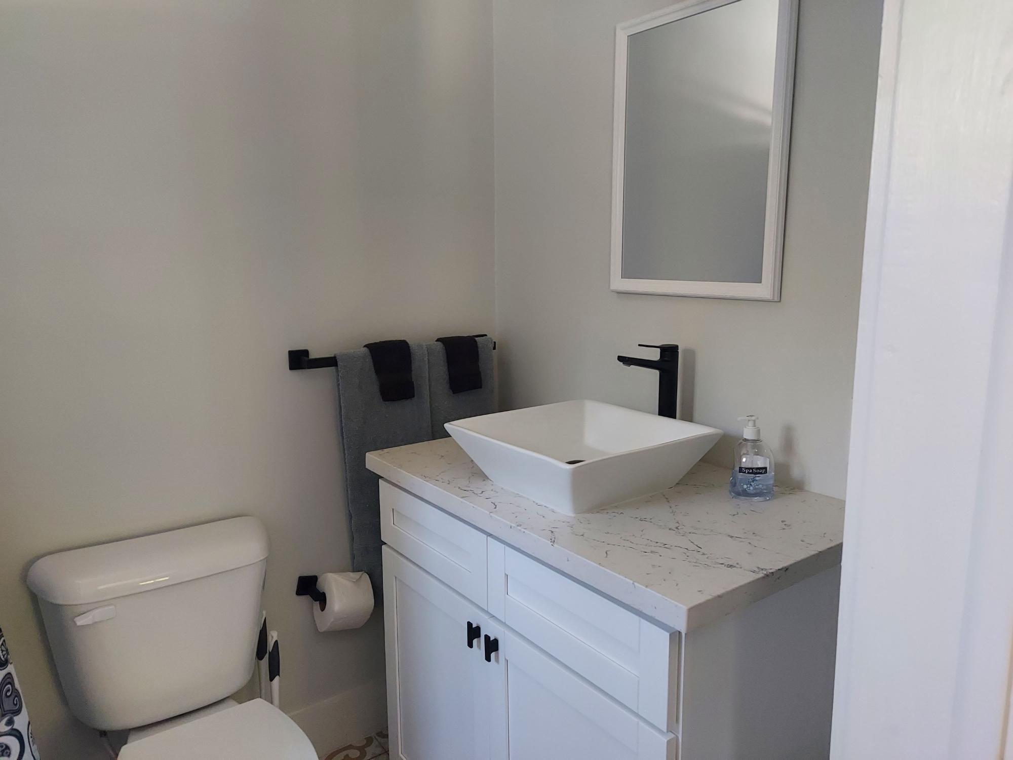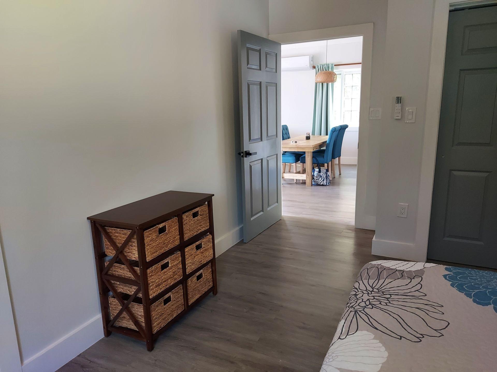 Sunset Escape is a newly built, chic island cottage with 2 lovely bedrooms and bathrooms facing the beautiful and serene south side, known as the Caribbean. Built to relax in comfort and enjoy the tropical beauty and climate of Eleuthera, the kitchen and bathrooms are fitted with lovely quartz countertops and care has been taken in selecting the furniture and decor, with a simple open plan designed to take advantage of the ocean and garden views from every room. It has a very good rental history. Surrounded by a wrap around porch for outdoor living, Sunset Escape is set in a quiet cul-de-sac surrounded by beautiful native vegetation providing privacy and quiet. It is within walking distance of the best beach in Rainbow Bay, with its calm turquoise waters, sea birds including pelicans and ospreys, and marine life including dolphins. Not far away there are beachfront cafes, local shops and the Rainbow Inn for home made pizza and fine dining. This is a fabulous location for exploring the magical island of Eleuthera, which has numerous beaches and interesting places to explore