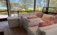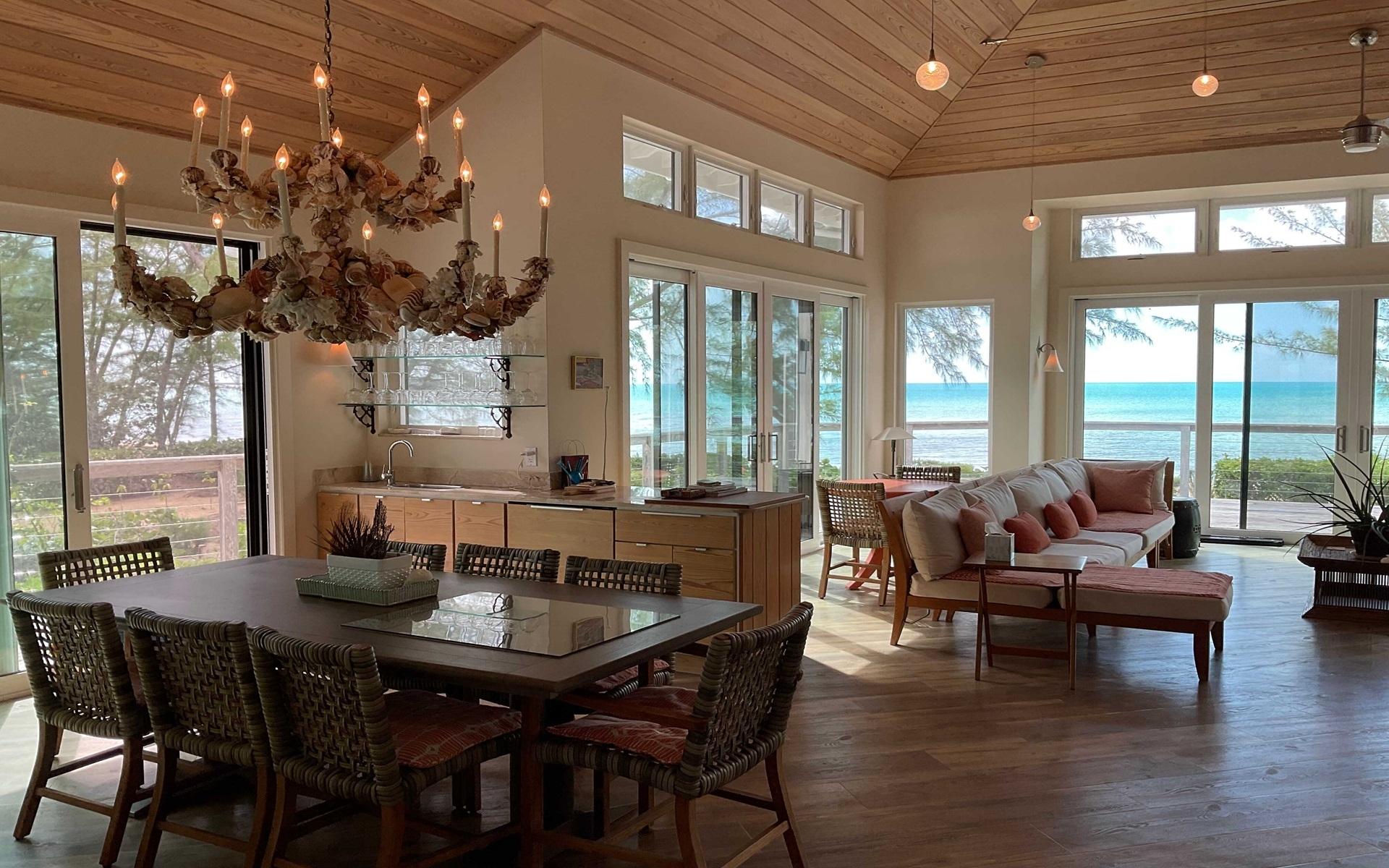 The home's design ensures spectacular views of the Caribbean Sea from every angle, making every moment spent here a scenic experience. A unique handmade driveway crafted from native rocks adds a charming and rustic touch to the property's exterior while blending seamlessly with the natural landscape. The Lower level has two comfortable bedrooms and 3 full baths, offering serene retreats with large windows to take in the stunning ocean vistas. A dedicated laundry room equipped with appliances and ample storage space for convenience. An exquisite screened sitting area that allows you to enjoy the fresh sea breeze and panoramic views without interruptions from insects, ideal for both relaxation and social gatherings. A cozy office space with large windows provides beautiful views, making it an inspiring place to work from home. The open living space is characterized by high cathedral ceilings, creating a sense of grandeur and spaciousness. The large windows throughout the home offer stunning views of the beach, allowing natural light to flood the interiors