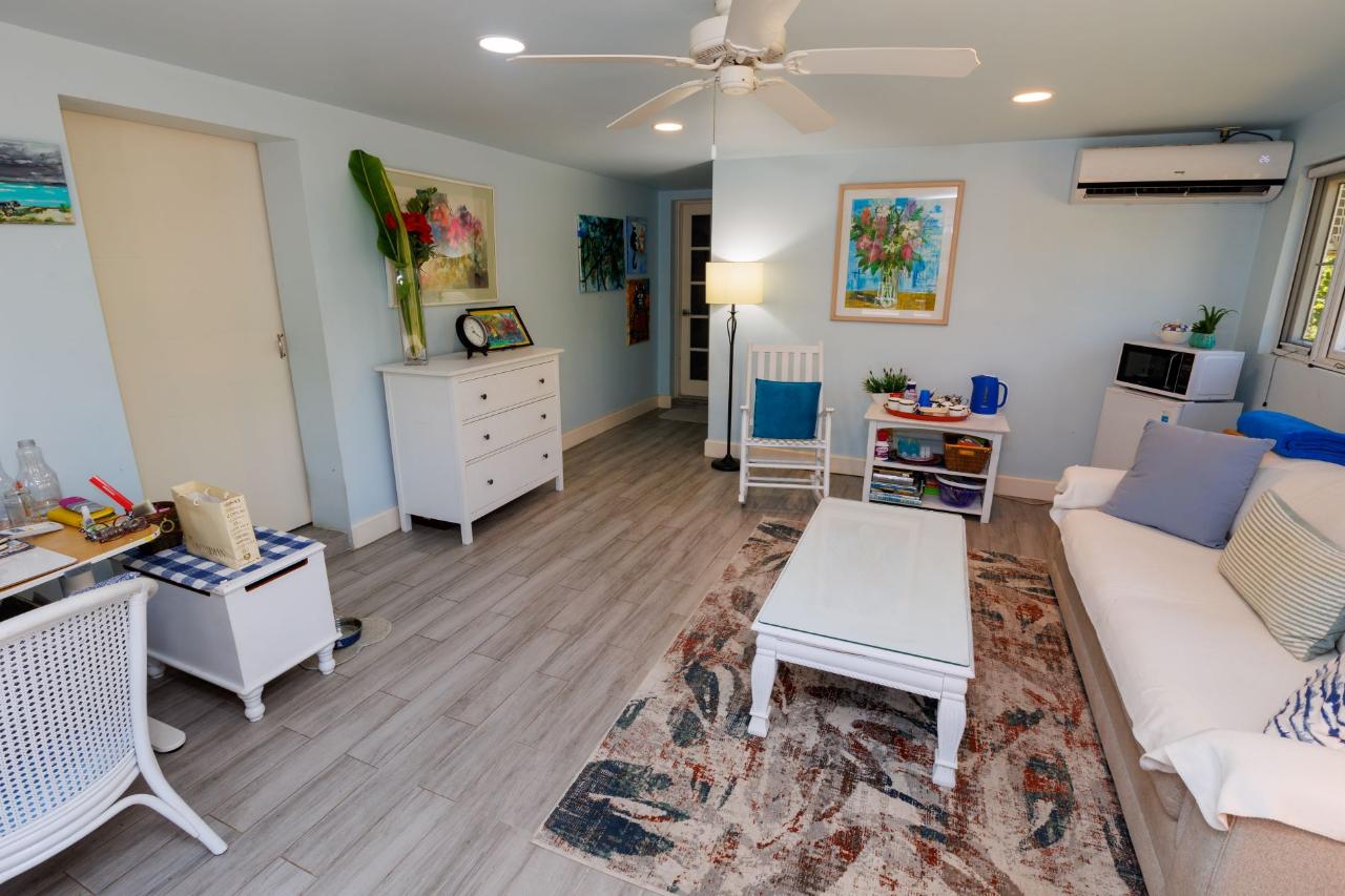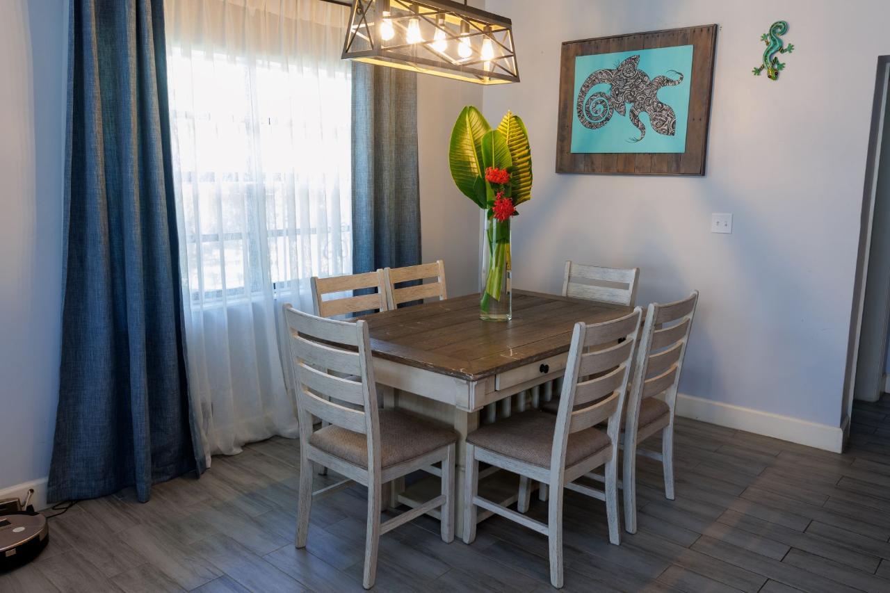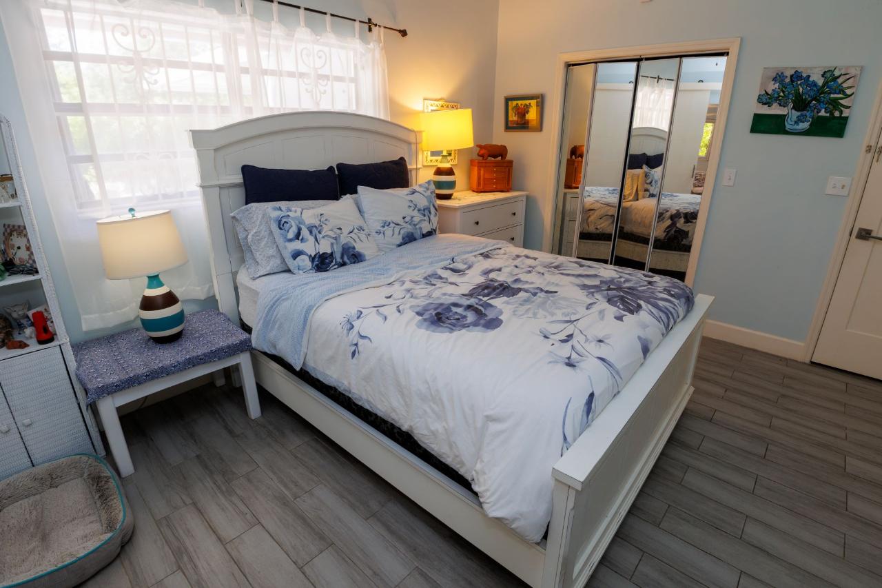 This newly re-modeled home is nestled in the quiet cul de sac of Hardy Hollow, in the upscale subdivision of Greening Glade on Grand Bahama Island. This lovely home offers a unique opportunity, as it also features a built-in guest cottage or Mother-in-Law's Suite—a two-bedroom, one-bath fully equipped suite with a private porch and separate garden area. This guest cottage is perfect for your out-of-town guests or as income potential! The home itself offers a large living room, dining room, and open-concept kitchen with state-of-the-art appliances. The entire home is fully tiled with wood-like ceramic tiles, and the spacious bedrooms have beautiful hanging barn doors. The house is protected by hurricane shutters and a new metal roof. There are four bedrooms and four full bathrooms in the main house. The back bedroom has been set up for a maid’s quarters, and the master bedroom has its own living room, too. It is perfect for the executive and family living. The grounds are lushly landscaped with mature trees, offering both privacy and shade as you relax in the backyard pool.