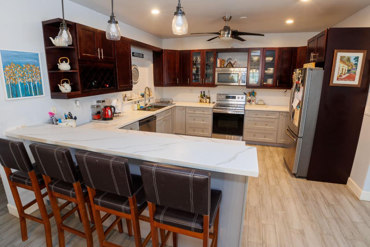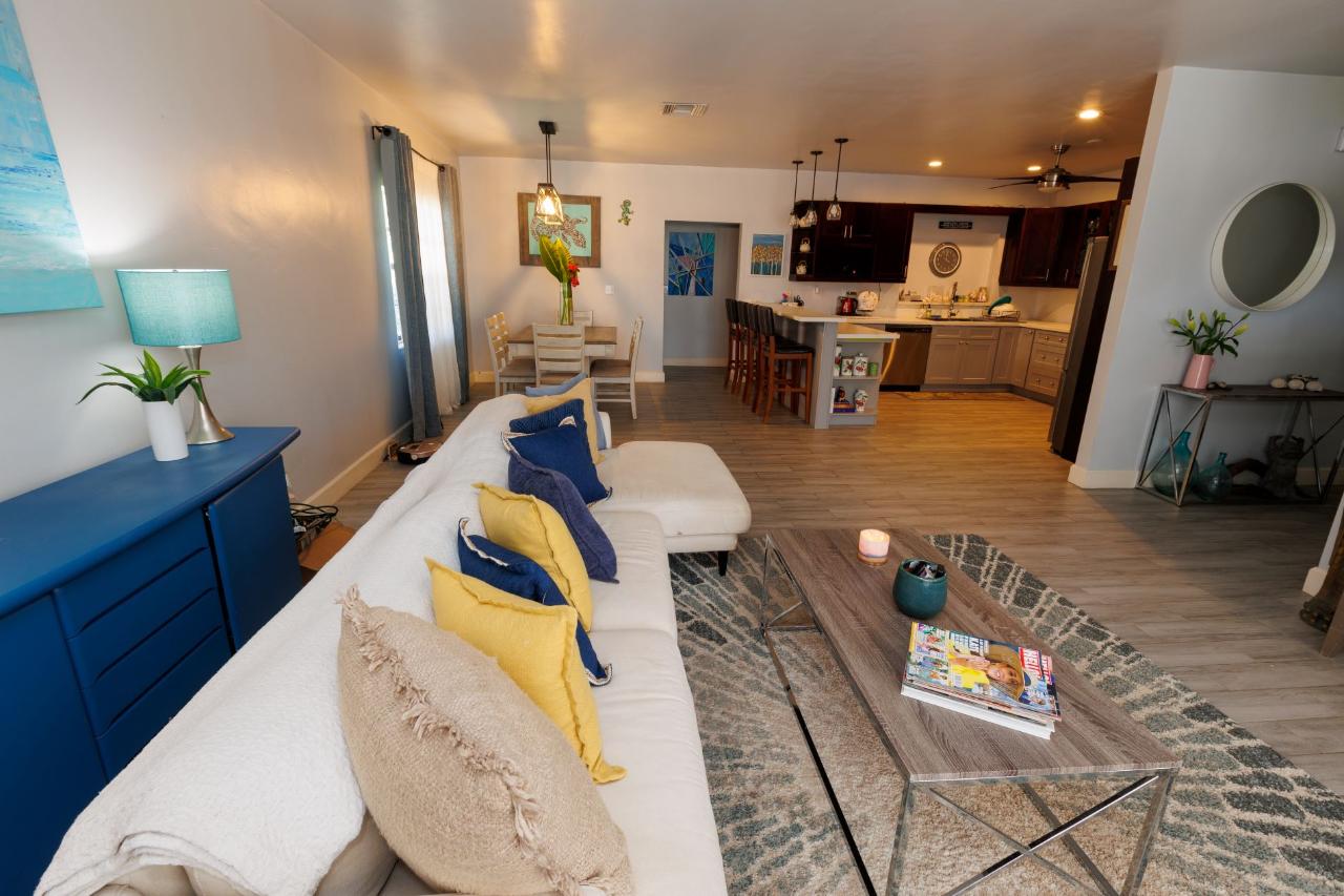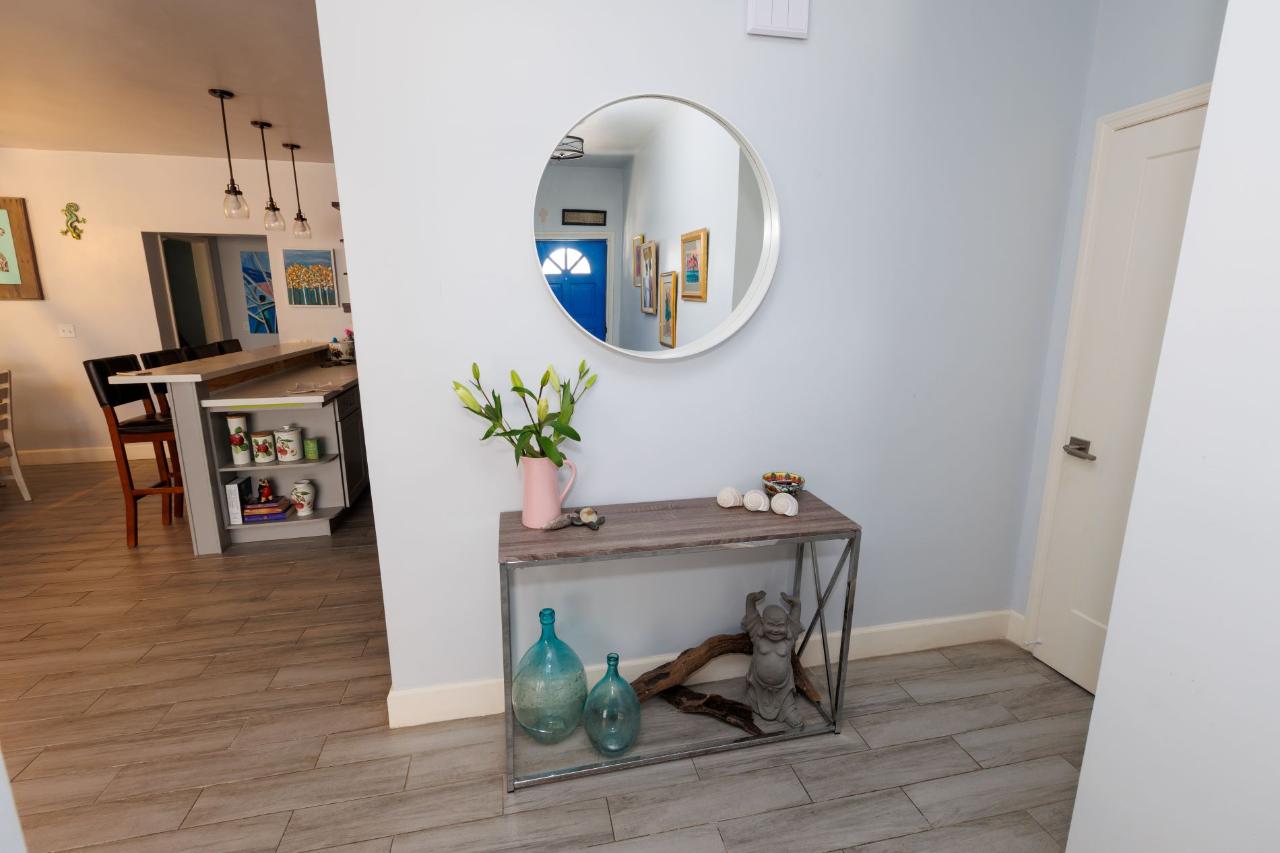 This newly re-modeled home is nestled in the quiet cul de sac of Hardy Hollow, in the upscale subdivision of Greening Glade on Grand Bahama Island. This lovely home offers a unique opportunity, as it also features a built-in guest cottage or Mother-in-Law's Suite—a two-bedroom, one-bath fully equipped suite with a private porch and separate garden area. This guest cottage is perfect for your out-of-town guests or as income potential! The home itself offers a large living room, dining room, and open-concept kitchen with state-of-the-art appliances. The entire home is fully tiled with wood-like ceramic tiles, and the spacious bedrooms have beautiful hanging barn doors. The house is protected by hurricane shutters and a new metal roof. There are four bedrooms and four full bathrooms in the main house. The back bedroom has been set up for a maid’s quarters, and the master bedroom has its own living room, too. It is perfect for the executive and family living. The grounds are lushly landscaped with mature trees, offering both privacy and shade as you relax in the backyard pool.