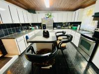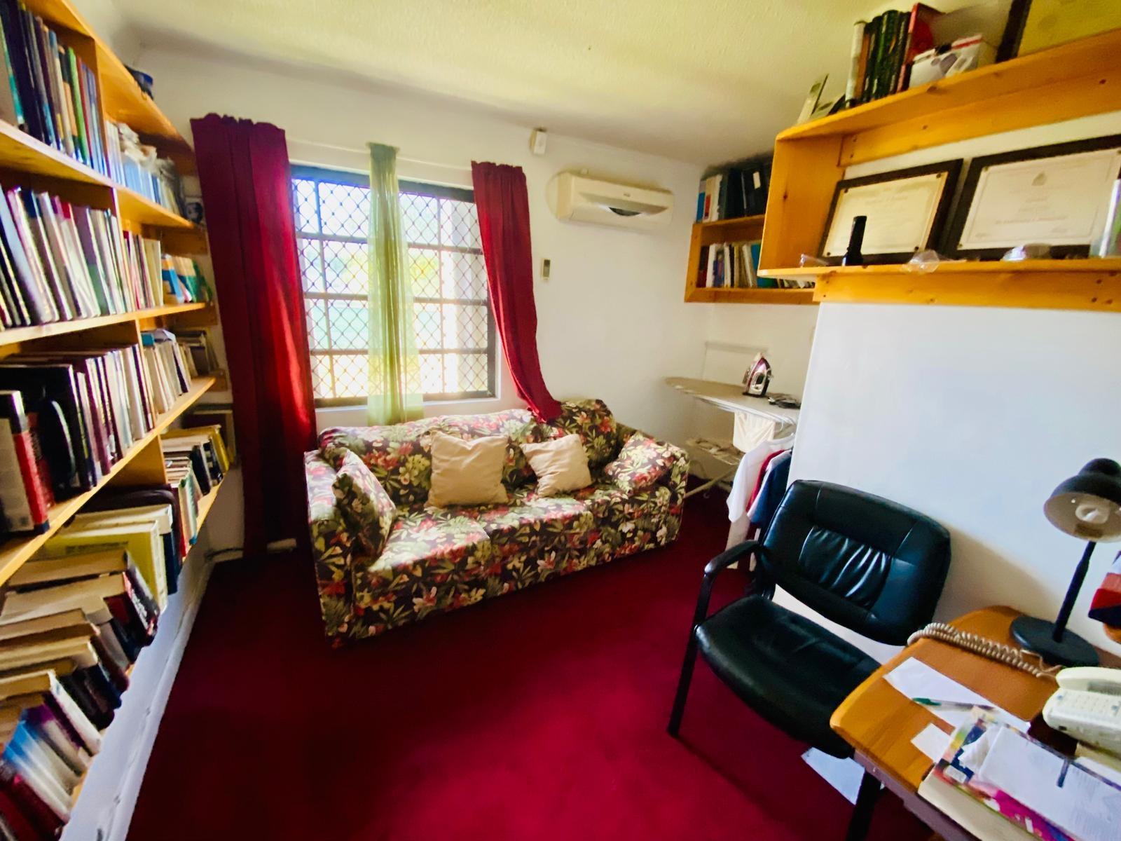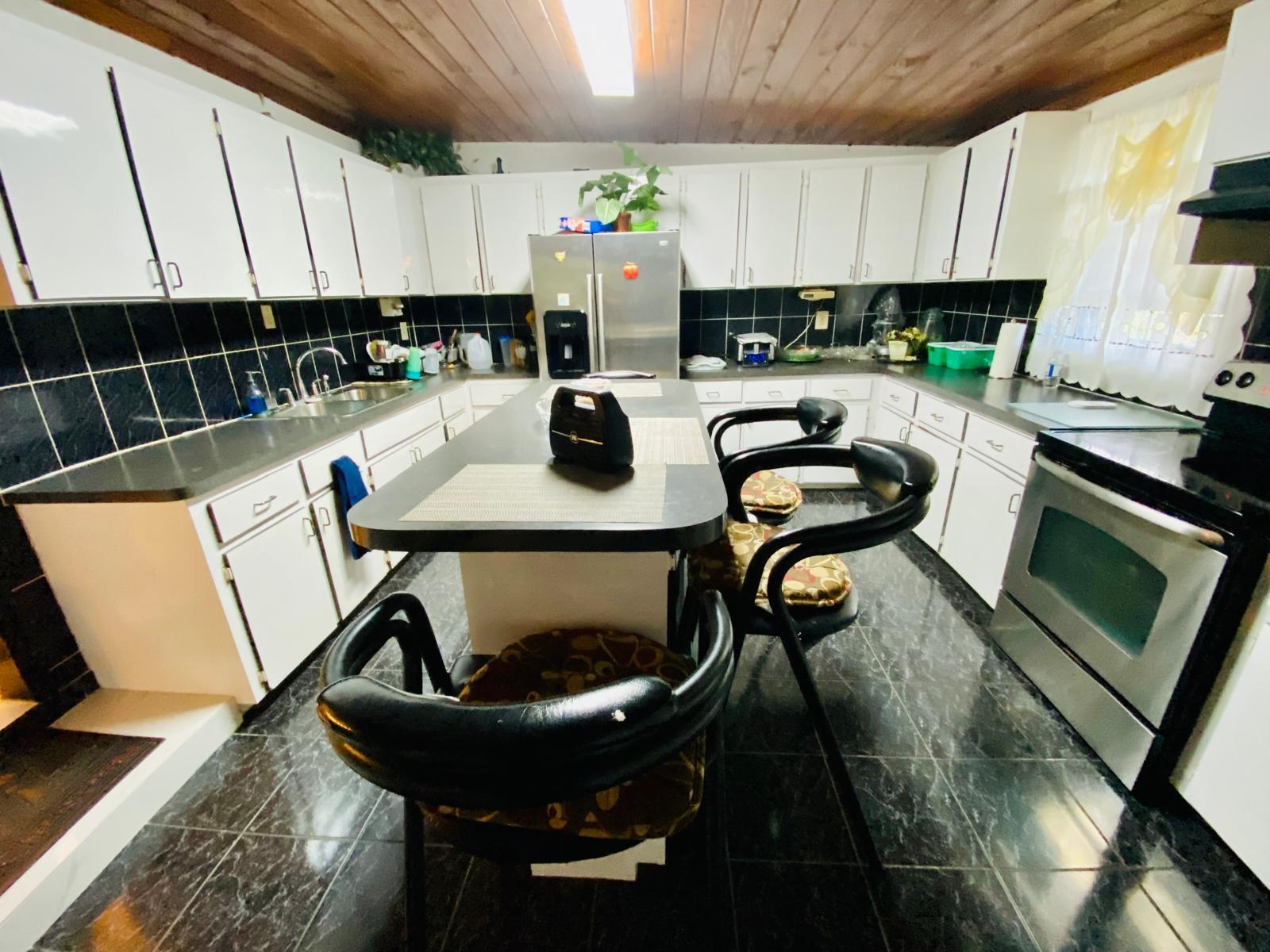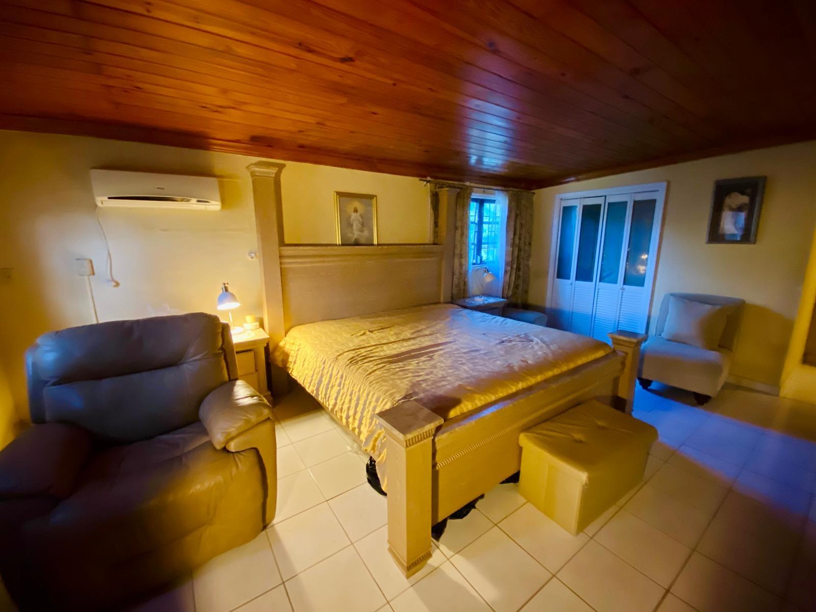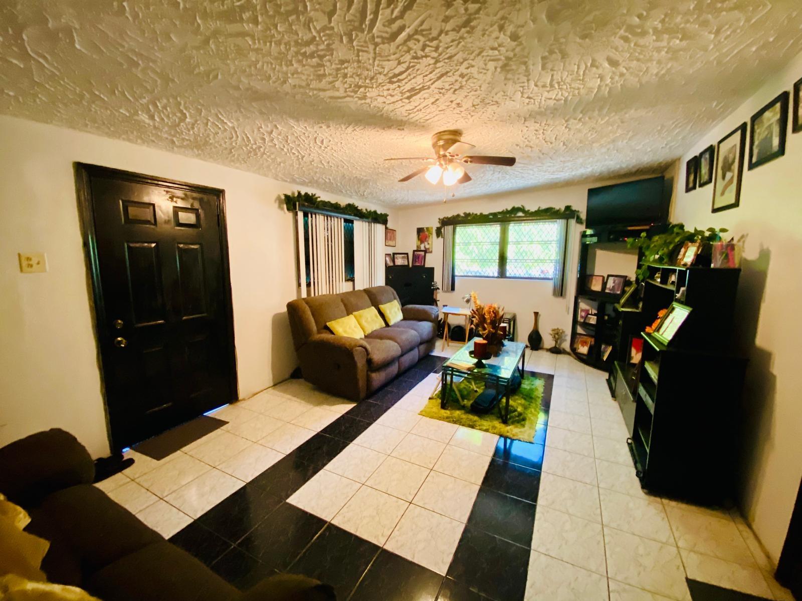 This home is situated in the quiet, elevated portion of Yeoman Woods. It has an open concept living and dining area. The kitchen and family room are adjacent to each other, perfect for family events and also entertainment in general. The home also has a small office, which is ideal for a work at home person. The back yard contains a convenient gardeners shed and numerous fruit bearing trees. This property is walled at the front with a motorized gate and supplemented with fencing covered with a privacy tarp, it also has hurricane shutters as well as a metal roof. The home is centrally located, a few minutes away from grocery stores, clinics, schools, restaurants, churches and the beach. Flooring on this home is part wood, part concrete.This home is being sold unfurnished.