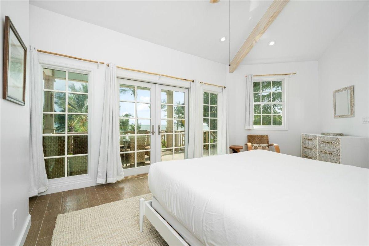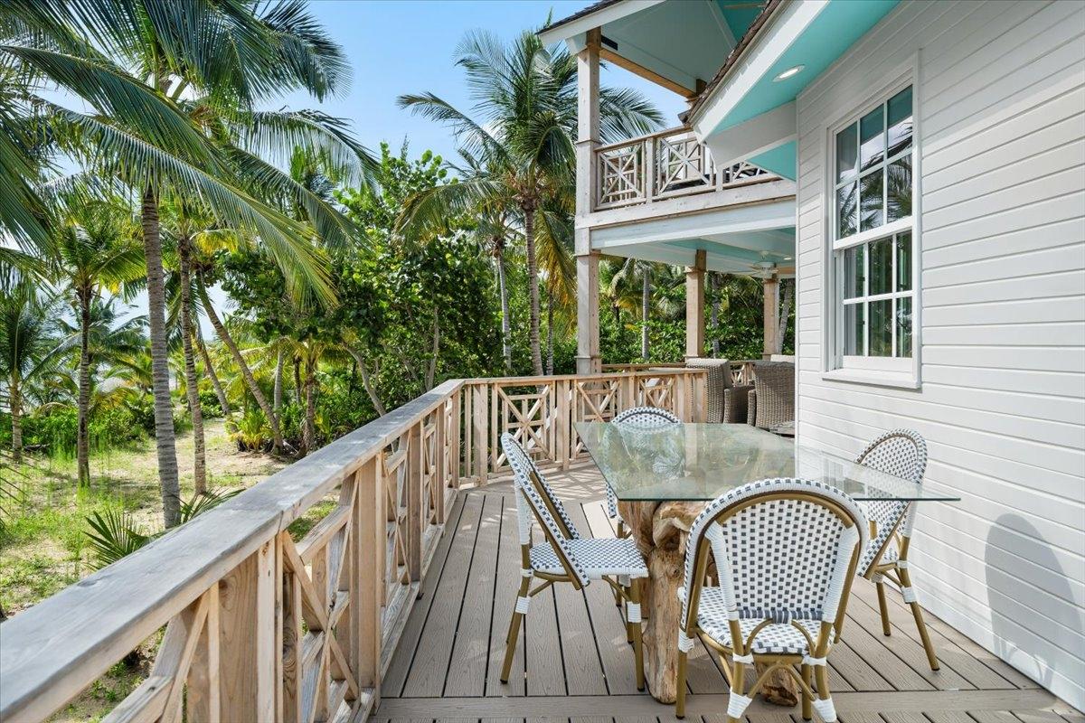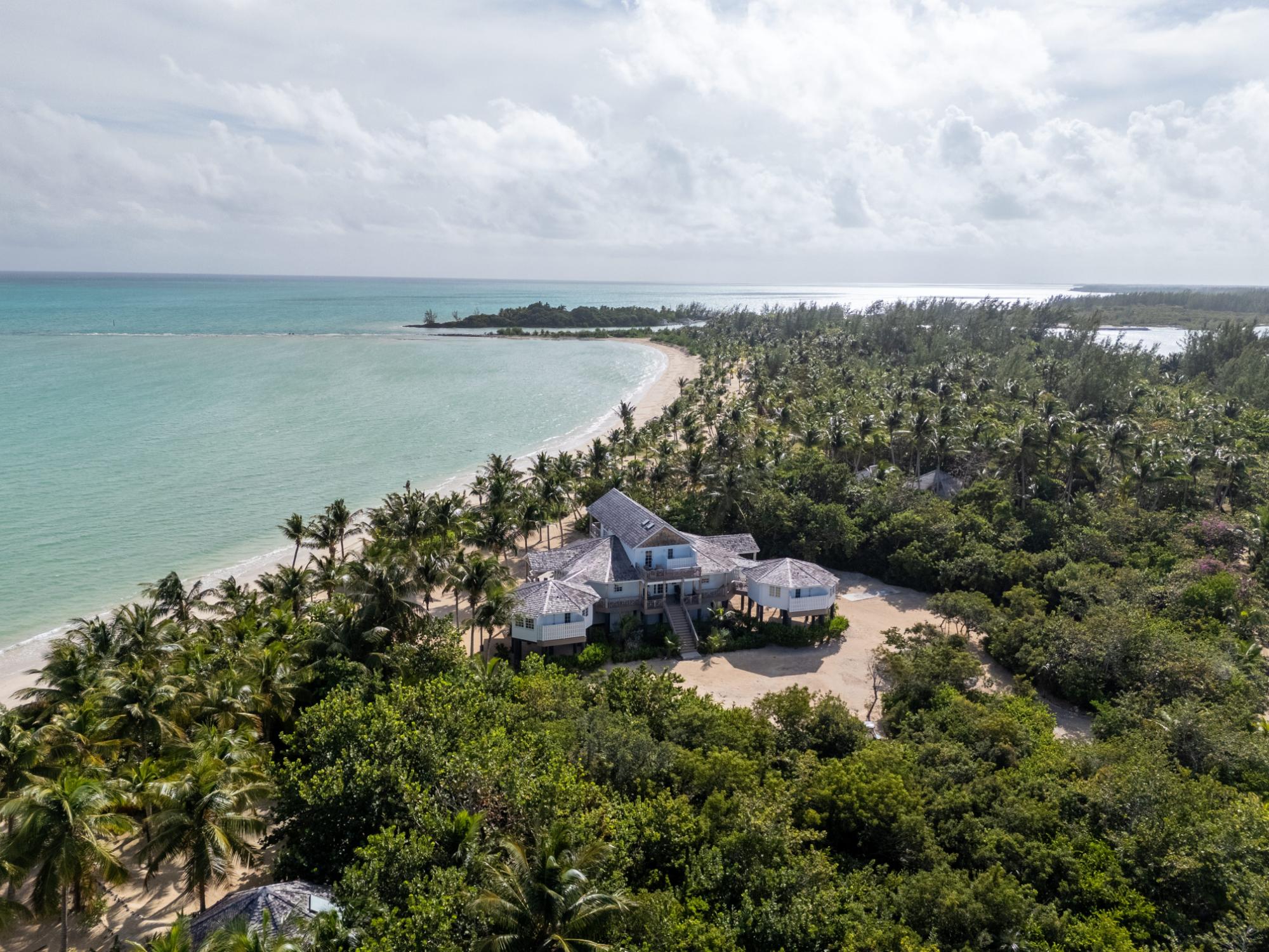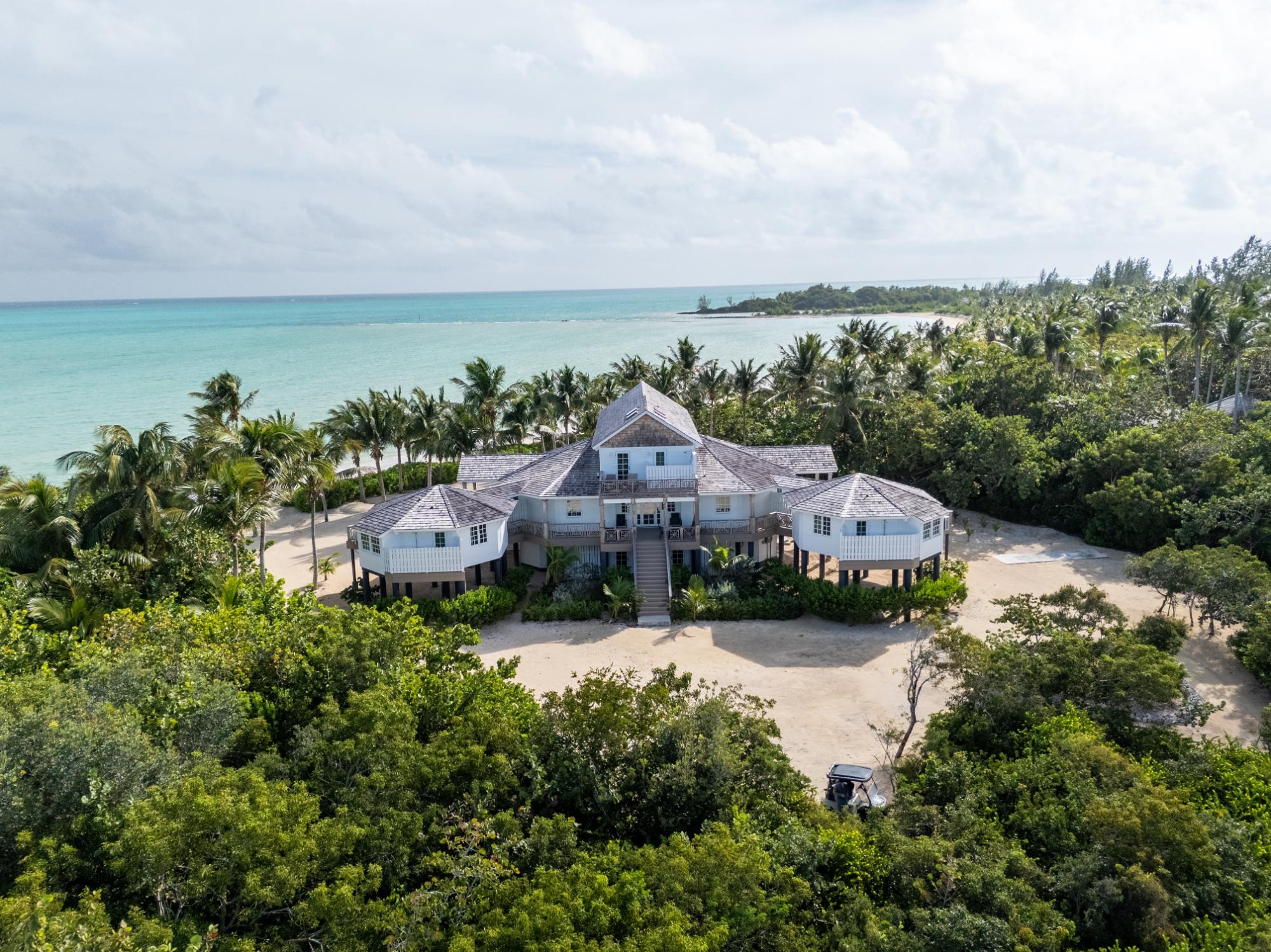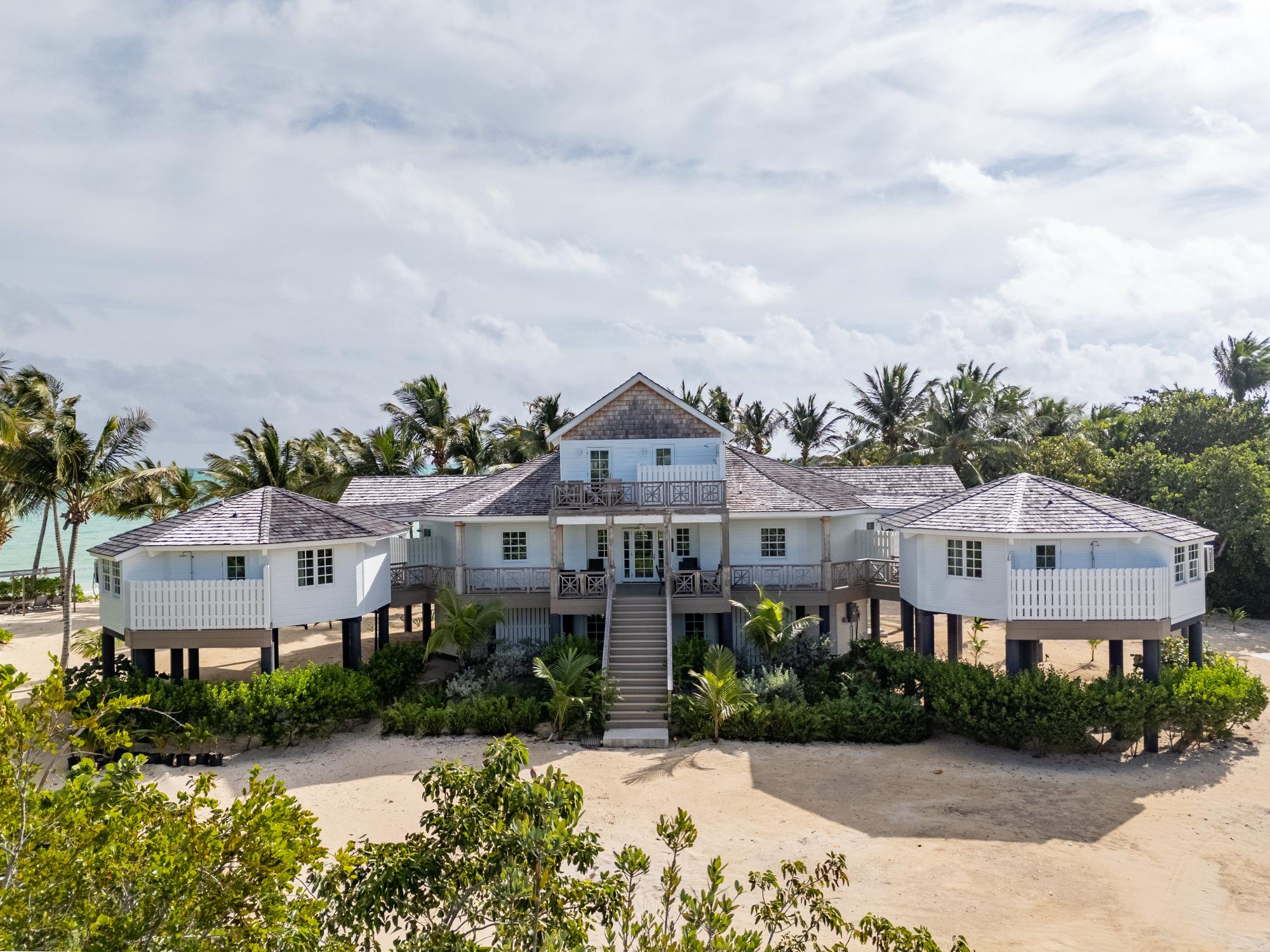 The majestic Queen Pineapple Villa is the latest and most sought-after oceanfront estate on Kamalame Cay. Nestled on the award-winning island off the Androsian coast, Queen Pineapple is the ultimate vacation bungalow fit for an entourage of family and guests. Constructed with 5 bedrooms, 5.5. baths and 4,630 sq. ft. air-conditioned space, the property holds three main floors. The first floor occupies the kitchen, living and dining room, while the second floor boasts a 2,545 sq. ft. deck that leads guests into their separate in-suite bedrooms. Finally, the crown of Queen Pineapple hosts a master bedroom and in-suite bathroom at the top floor. The main balcony hosts a 230 sq. ft. staircase entrance at the front, and two staircases at the back, opening up into an expanded, 200 ft shoreline. Queen Pineapple is fashioned with other amenities, including powder rooms, laundry, entry foyer, covered deck and 405 sq. ft. landings, and 870 sq. ft. parking. Wrapped around lush green palms, Queen Pineapple’s circular property ensures privacy and space for all guests.