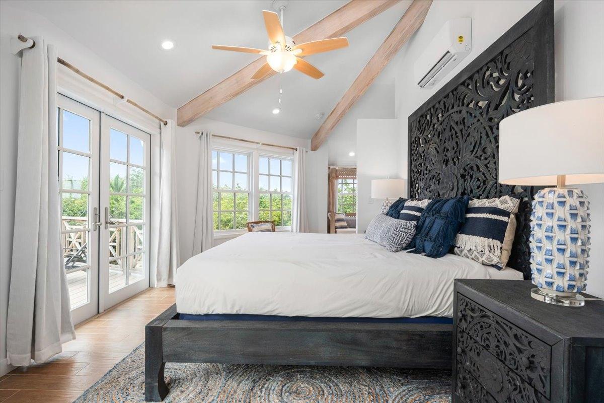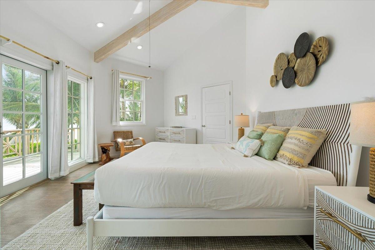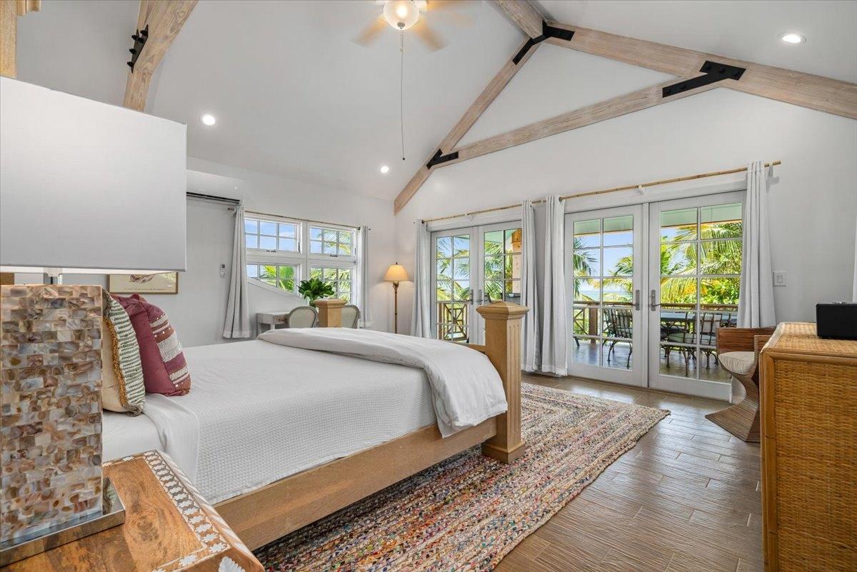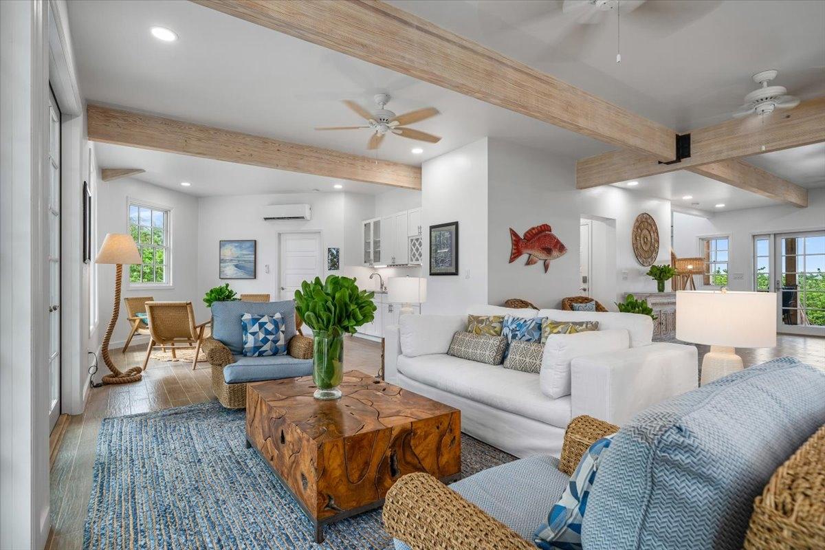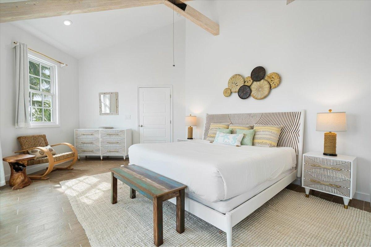 The majestic Queen Pineapple Villa is the latest and most sought-after oceanfront estate on Kamalame Cay. Nestled on the award-winning island off the Androsian coast, Queen Pineapple is the ultimate vacation bungalow fit for an entourage of family and guests. Constructed with 5 bedrooms, 5.5. baths and 4,630 sq. ft. air-conditioned space, the property holds three main floors. The first floor occupies the kitchen, living and dining room, while the second floor boasts a 2,545 sq. ft. deck that leads guests into their separate in-suite bedrooms. Finally, the crown of Queen Pineapple hosts a master bedroom and in-suite bathroom at the top floor. The main balcony hosts a 230 sq. ft. staircase entrance at the front, and two staircases at the back, opening up into an expanded, 200 ft shoreline. Queen Pineapple is fashioned with other amenities, including powder rooms, laundry, entry foyer, covered deck and 405 sq. ft. landings, and 870 sq. ft. parking. Wrapped around lush green palms, Queen Pineapple’s circular property ensures privacy and space for all guests.