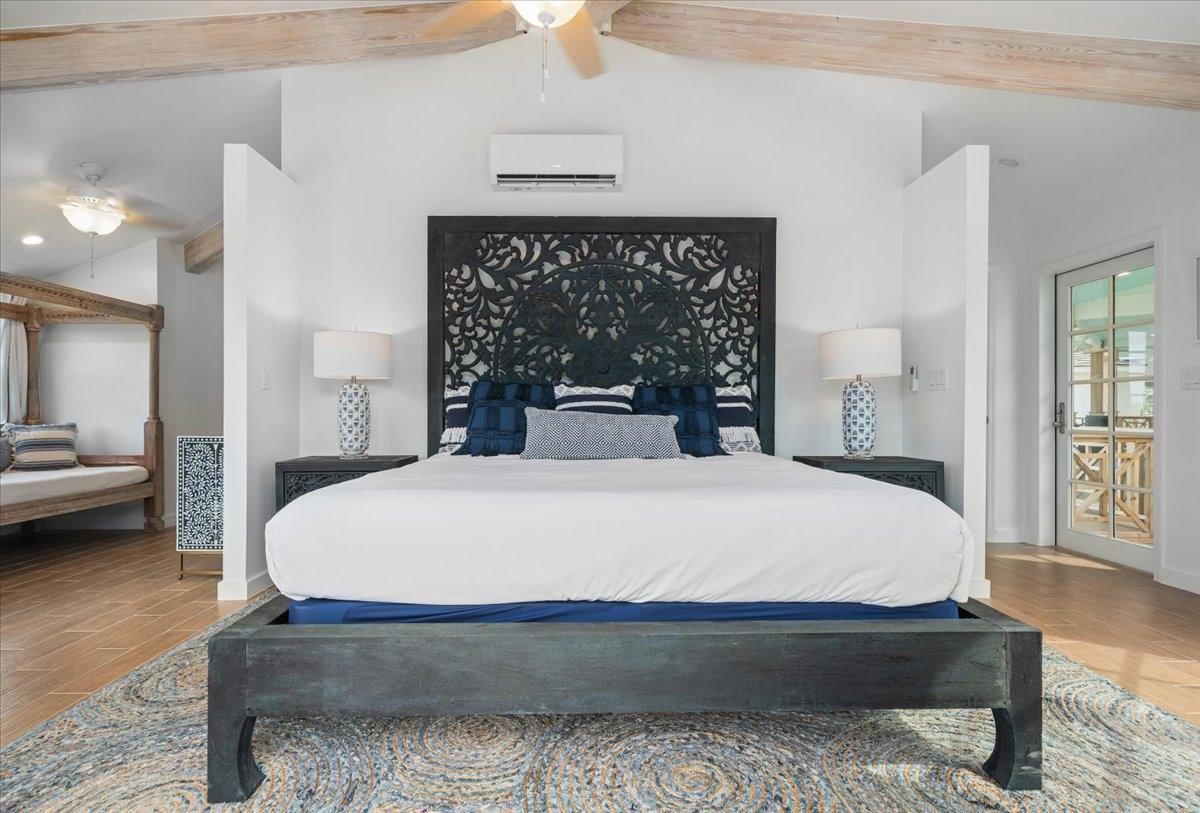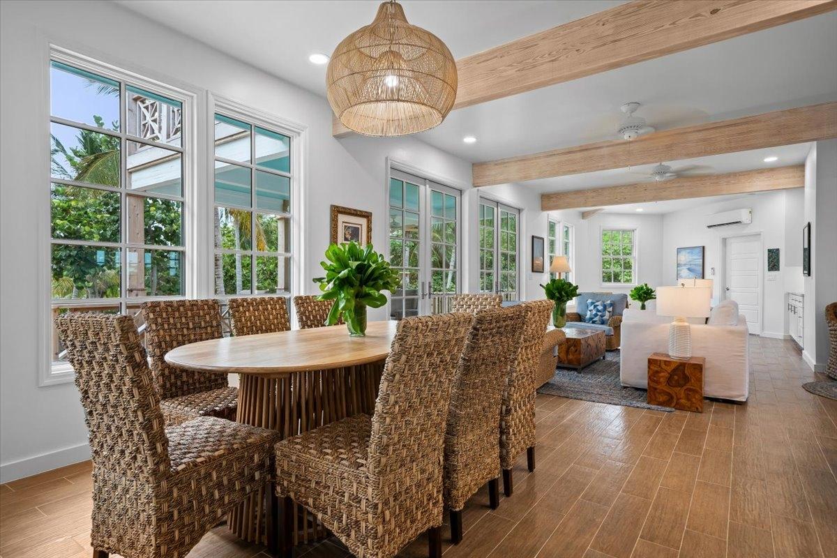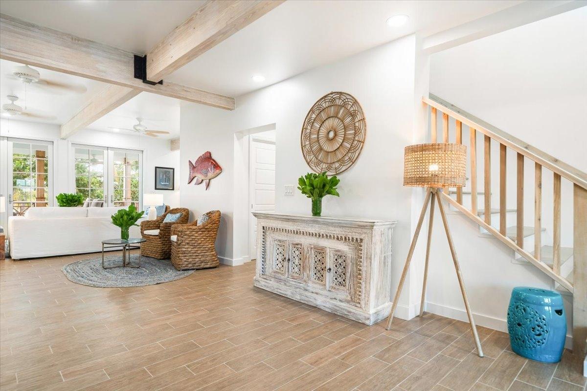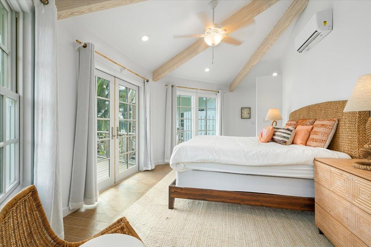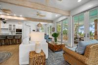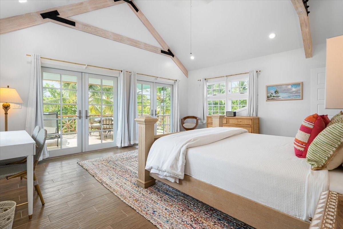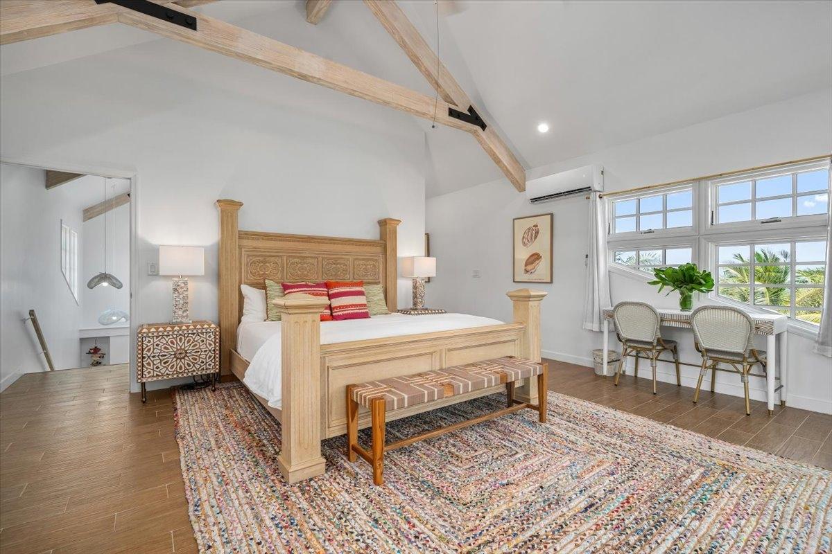 The majestic Queen Pineapple Villa is the latest and most sought-after oceanfront estate on Kamalame Cay. Nestled on the award-winning island off the Androsian coast, Queen Pineapple is the ultimate vacation bungalow fit for an entourage of family and guests. Constructed with 5 bedrooms, 5.5. baths and 4,630 sq. ft. air-conditioned space, the property holds three main floors. The first floor occupies the kitchen, living and dining room, while the second floor boasts a 2,545 sq. ft. deck that leads guests into their separate in-suite bedrooms. Finally, the crown of Queen Pineapple hosts a master bedroom and in-suite bathroom at the top floor. The main balcony hosts a 230 sq. ft. staircase entrance at the front, and two staircases at the back, opening up into an expanded, 200 ft shoreline. Queen Pineapple is fashioned with other amenities, including powder rooms, laundry, entry foyer, covered deck and 405 sq. ft. landings, and 870 sq. ft. parking. Wrapped around lush green palms, Queen Pineapple’s circular property ensures privacy and space for all guests.