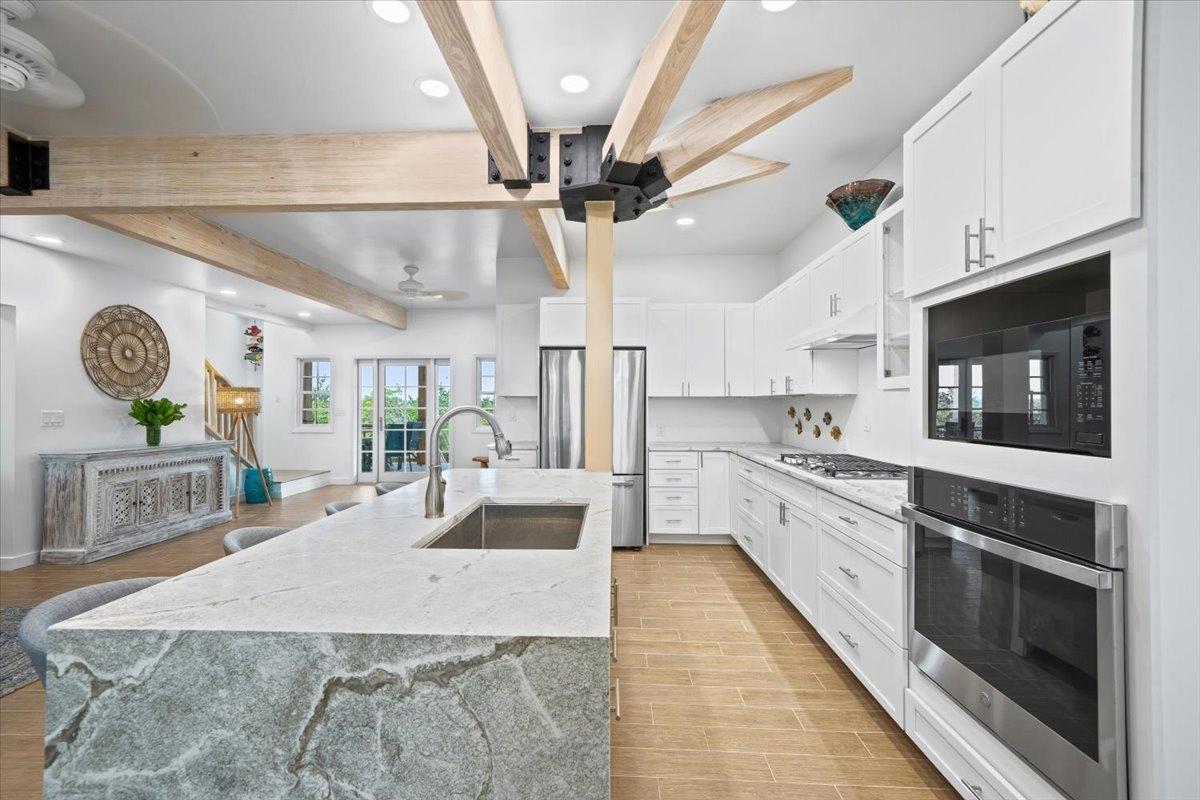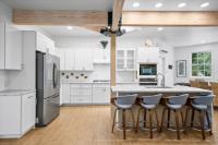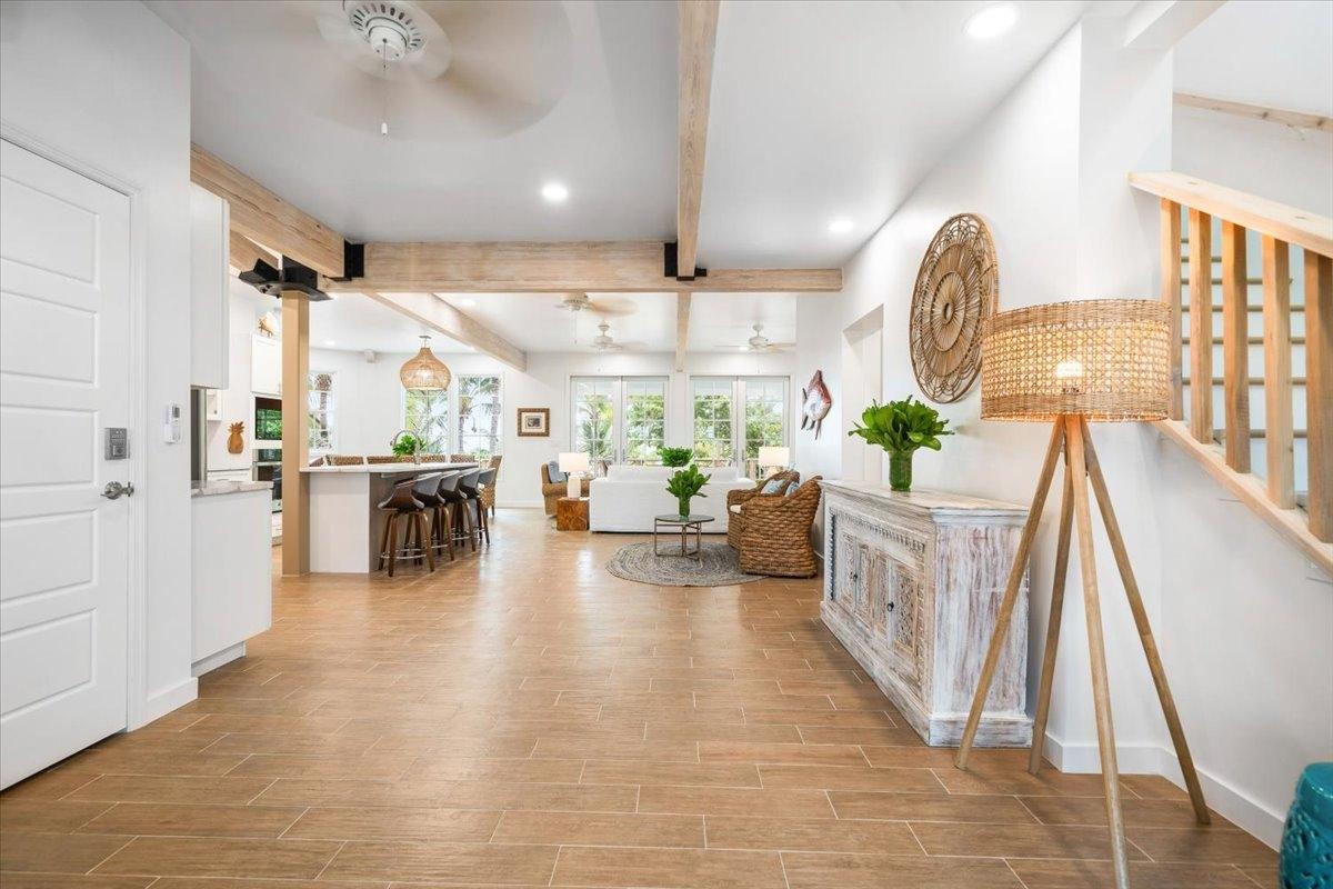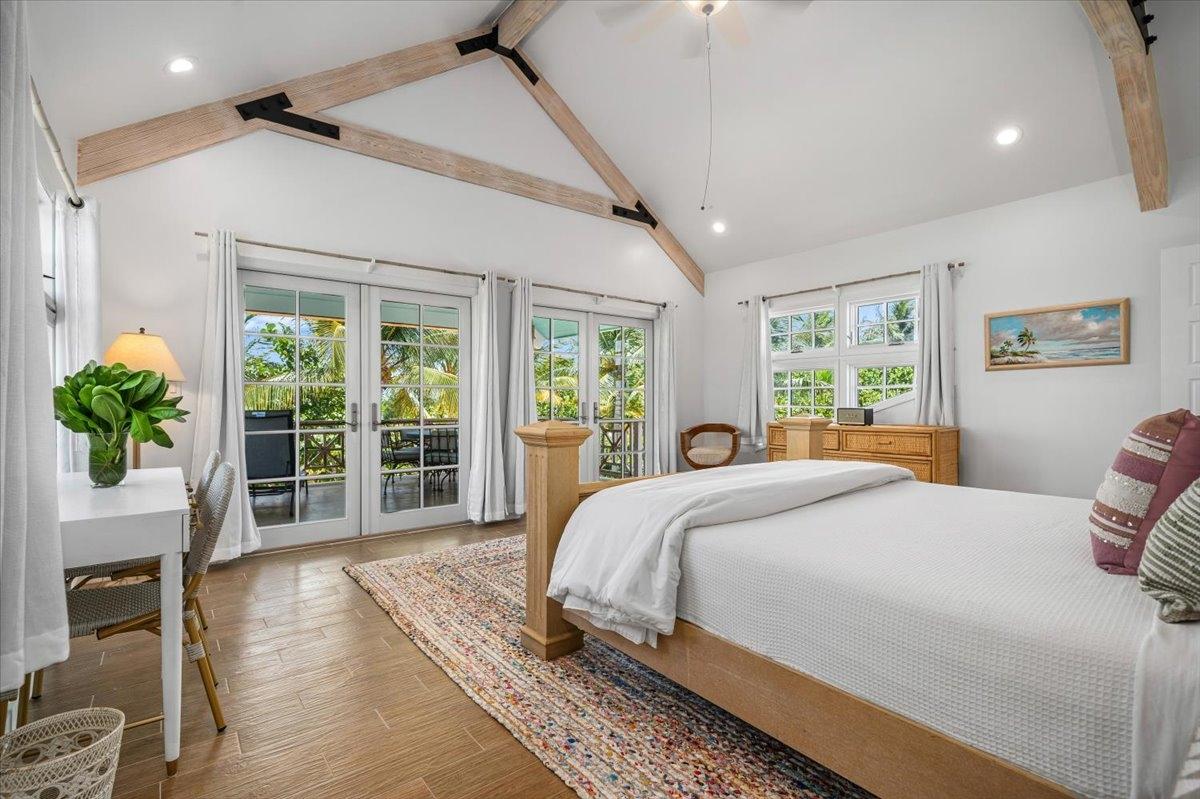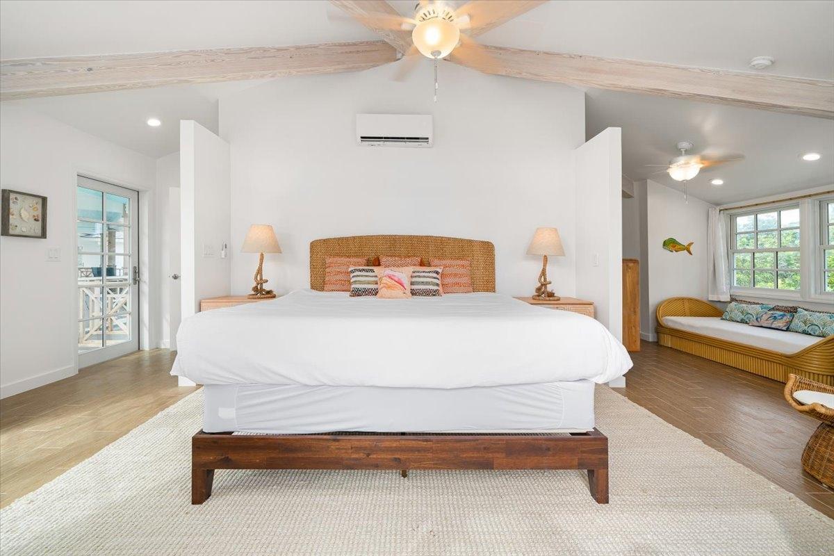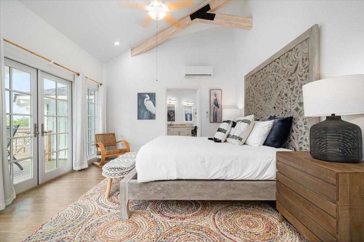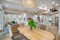 The majestic Queen Pineapple Villa is the latest and most sought-after oceanfront estate on Kamalame Cay. Nestled on the award-winning island off the Androsian coast, Queen Pineapple is the ultimate vacation bungalow fit for an entourage of family and guests. Constructed with 5 bedrooms, 5.5. baths and 4,630 sq. ft. air-conditioned space, the property holds three main floors. The first floor occupies the kitchen, living and dining room, while the second floor boasts a 2,545 sq. ft. deck that leads guests into their separate in-suite bedrooms. Finally, the crown of Queen Pineapple hosts a master bedroom and in-suite bathroom at the top floor. The main balcony hosts a 230 sq. ft. staircase entrance at the front, and two staircases at the back, opening up into an expanded, 200 ft shoreline. Queen Pineapple is fashioned with other amenities, including powder rooms, laundry, entry foyer, covered deck and 405 sq. ft. landings, and 870 sq. ft. parking. Wrapped around lush green palms, Queen Pineapple’s circular property ensures privacy and space for all guests.