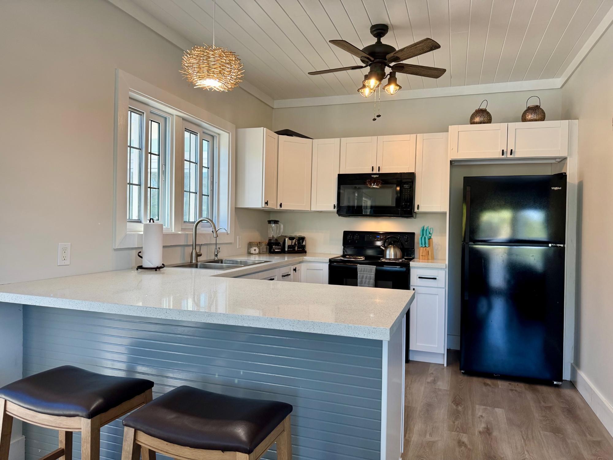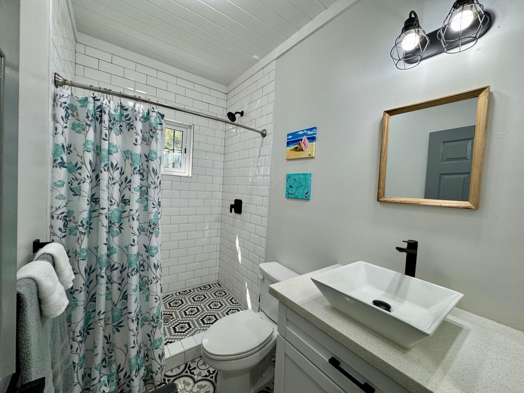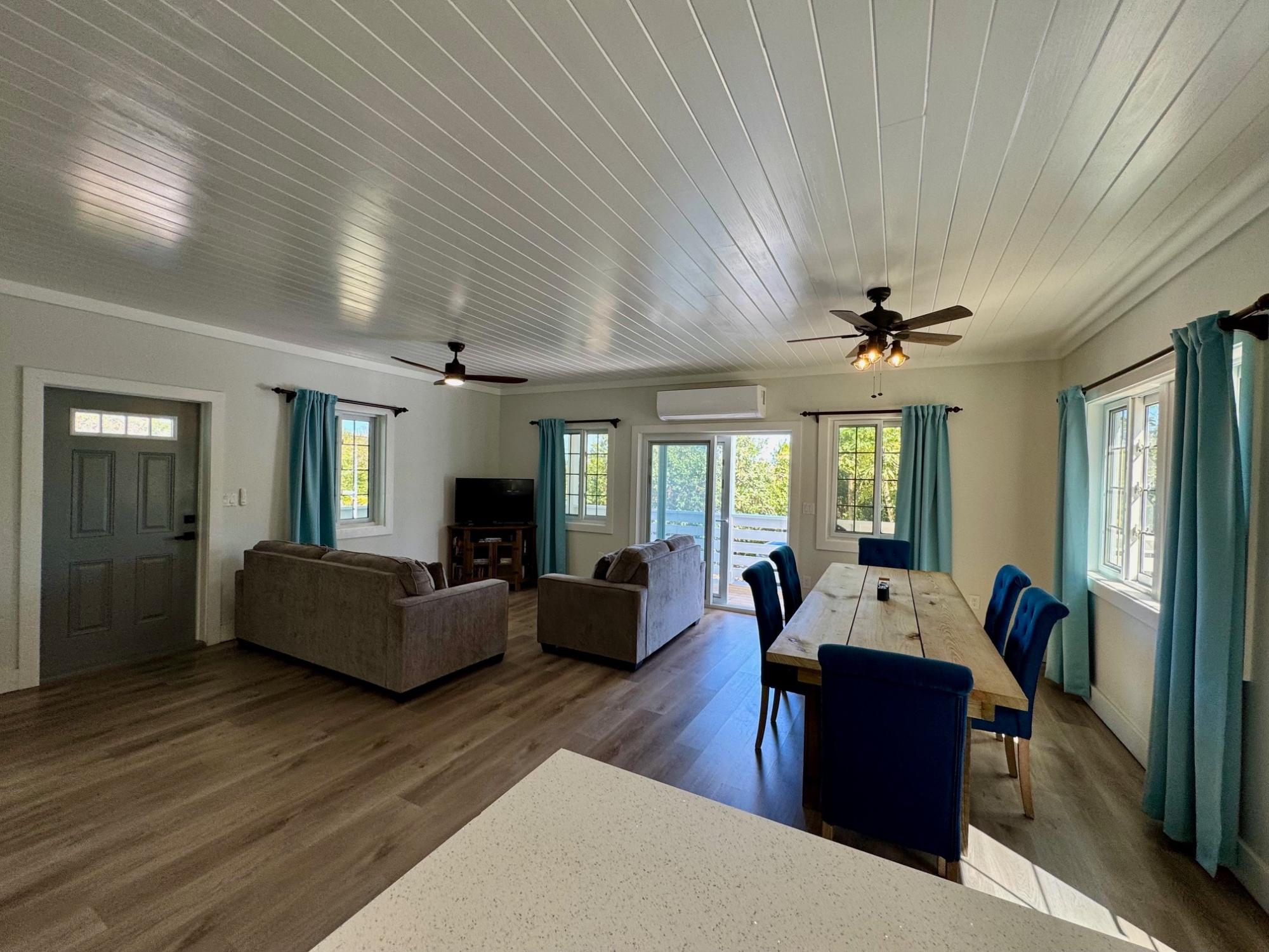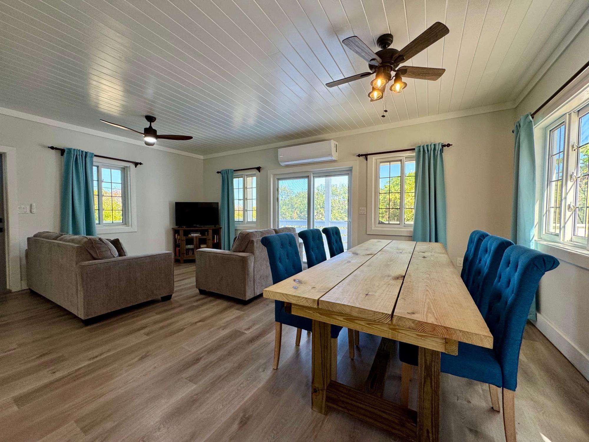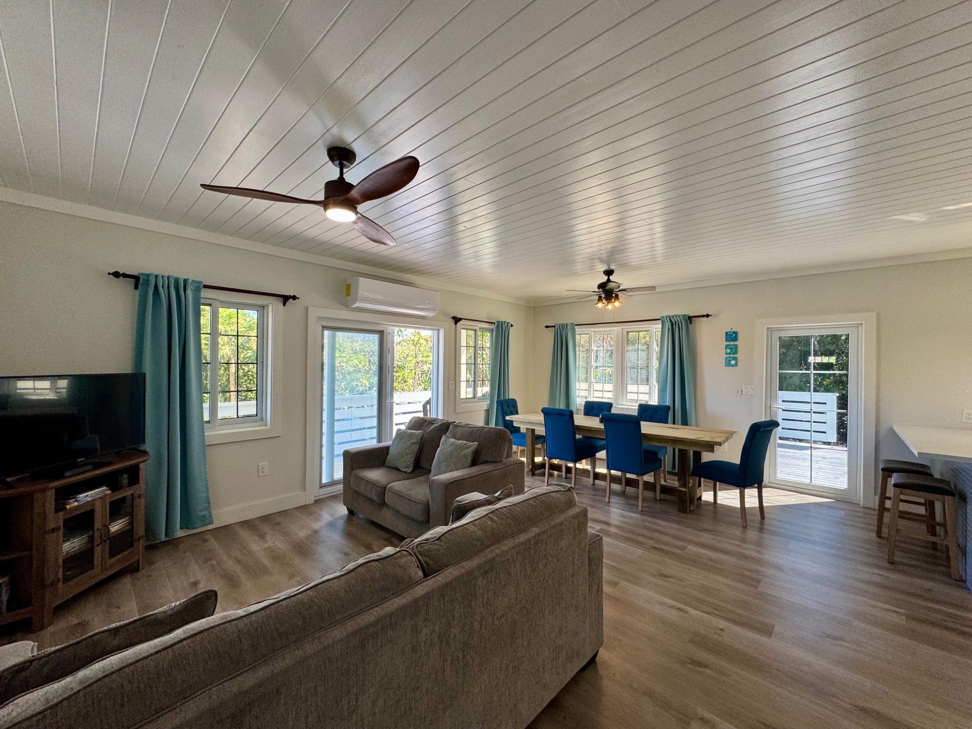 Escape to Sands of Time, a beautifully crafted 3-bedroom, 2-bathroom home tucked into the heart of Rainbow Bay, one of Eleuthera’s most sought-after coastal communities. This newly built island retreat sits perched above the Atlantic, offering peaceful seclusion, gentle sea breezes, and effortless indoor-outdoor living. Step into the open-concept great room, where tasteful design meets laid-back island charm. The modern kitchen features stylish finishes and flows seamlessly into the living and dining areas. Perfect for gathering with friends and family. Large sliding doors open onto a wrap-around wooden deck, blurring the lines between interior comfort and lush tropical surroundings. The master suite and great room both connect to outdoor spaces, capturing the true essence of island life. Built with quality craftsmanship, this frame-constructed home comes fully equipped with high-end finishes, all utilities, and high-speed internet. Its established vacation rental success makes it ideal for a personal getaway, remote work hub, or investment property.