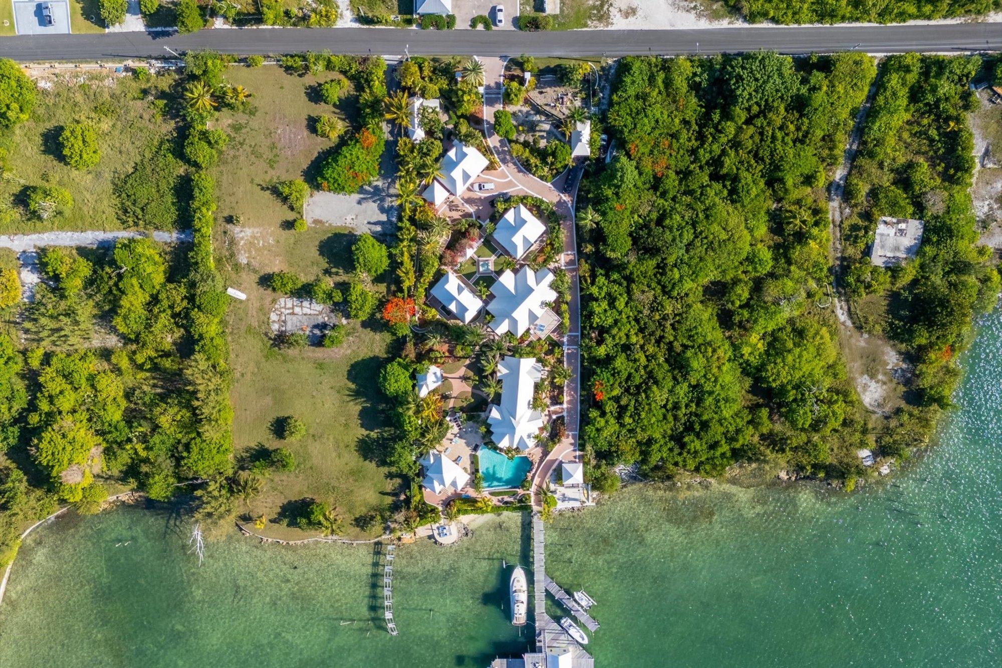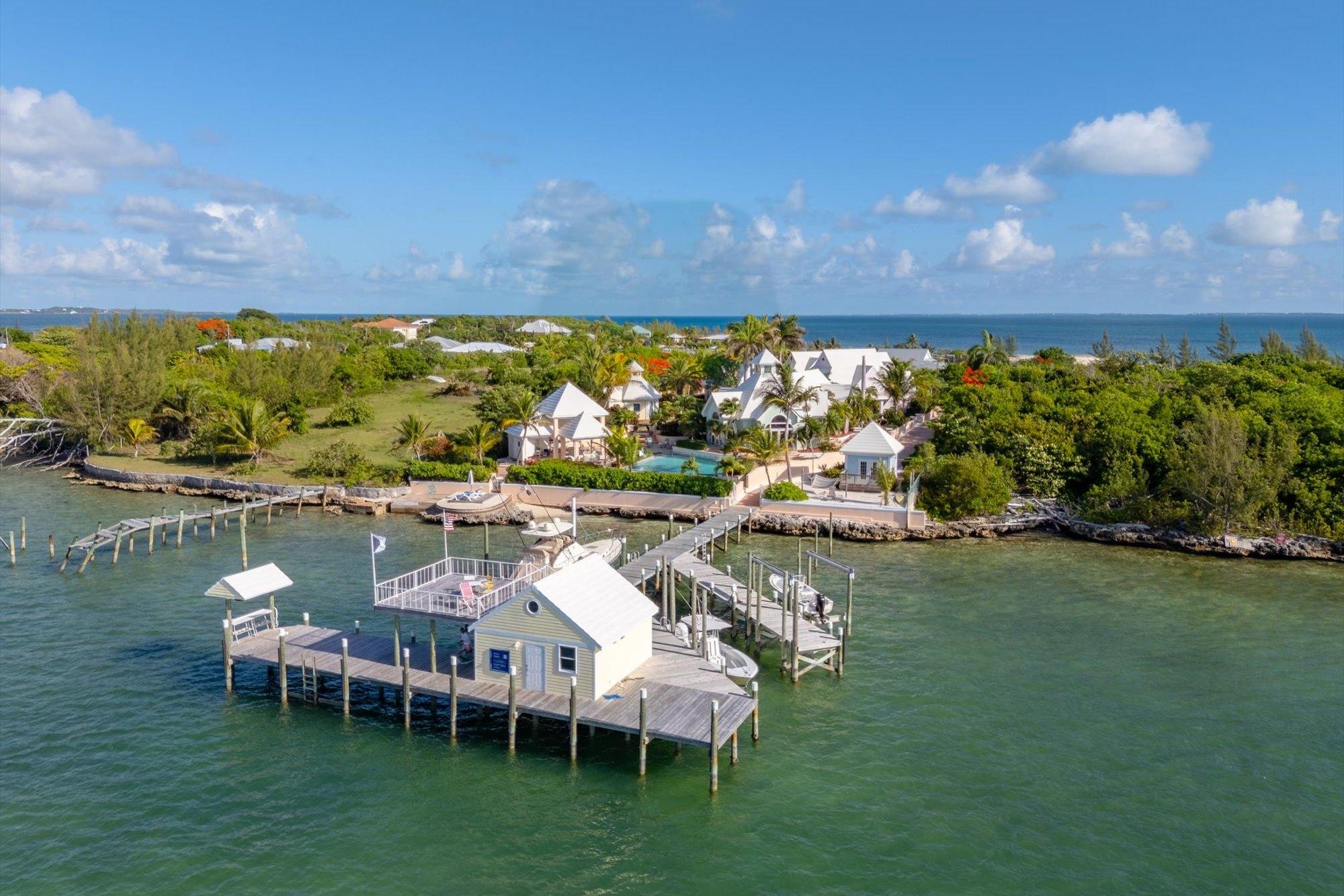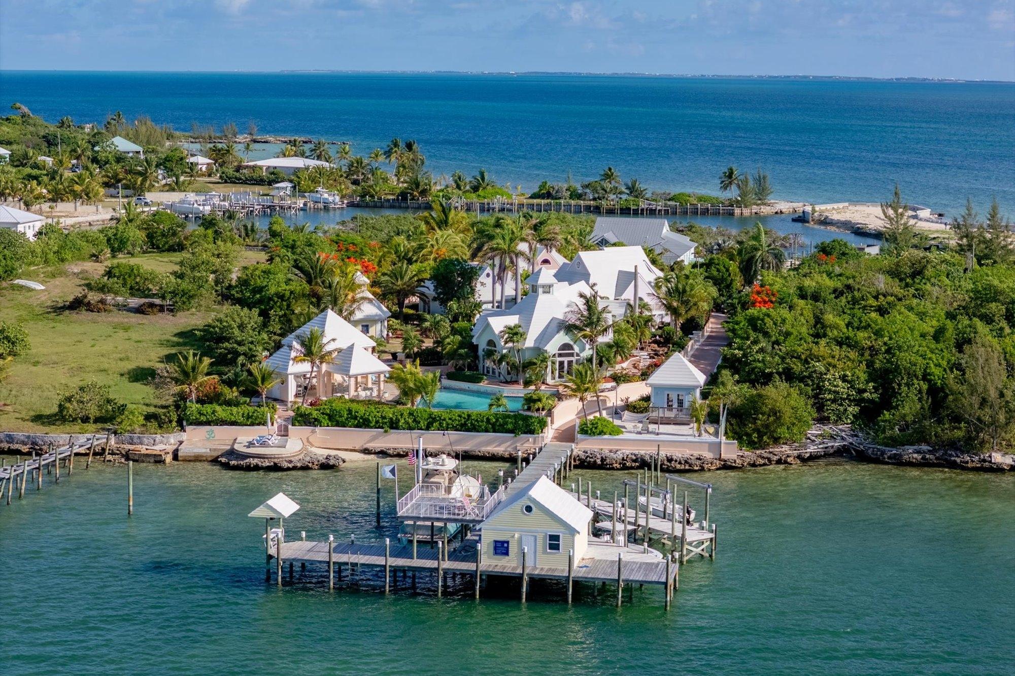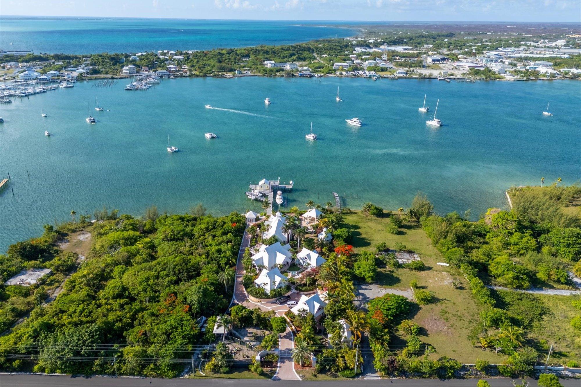 Designed for privacy and exclusivity, Villa Tatutina is a peaceful and luxurious gated estate located on the southern side of the community of Pelican Shores in Marsh Harbour. This stunning turnkey compound is both perfect as a corporate/family retreat or as a luxury rental property, supported by a strong rental history. Situated on 1.25 acres of lush native foliage overlooking both the Sea of Abaco and the harbour, offers 12 different structures, including 5 fully furnished private villas ranging in size from 640 sq. ft to 1,808 sq. ft. Each structure features storm impact windows and Hardiplank construction. There are 10 bedrooms, 9 full baths, and 2 half baths in addition to the 4 inside kitchens and 1 outside kitchen. The property features 152' of protected waterfrontage and dockage for vessels up to 130', inclusive of a 24,000-lb capacity boat lift, multiple moorings for docking options, two separate dock power pedestals, each with 50-over-30-amp electric and water hook-ups. The entire property is backed up by a 60-KW Kohler generator and offers a 30,000-gallon cistern.
