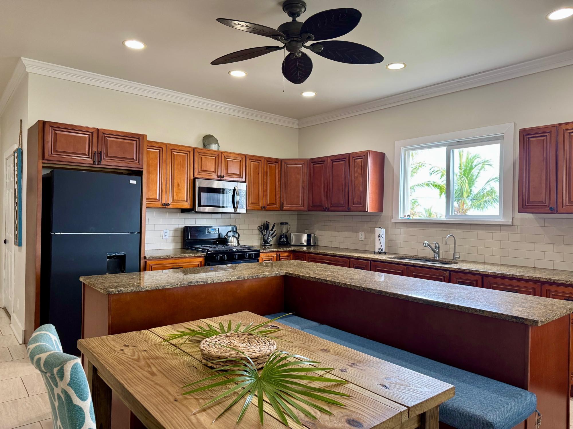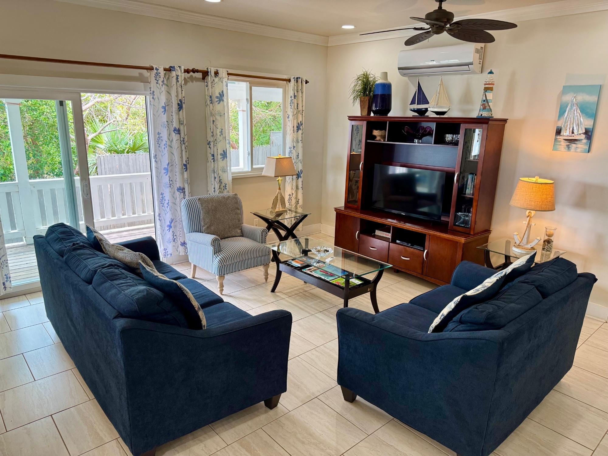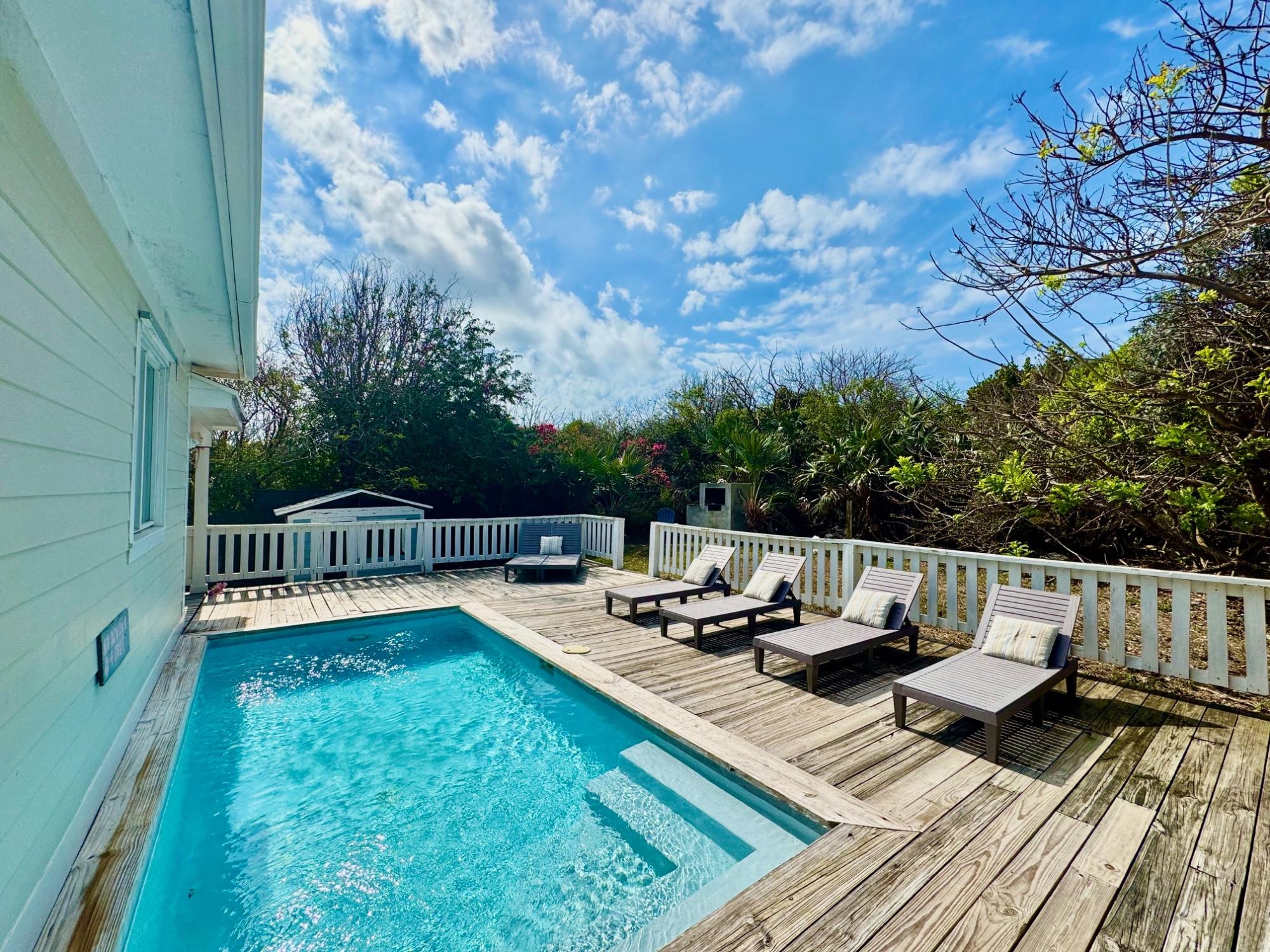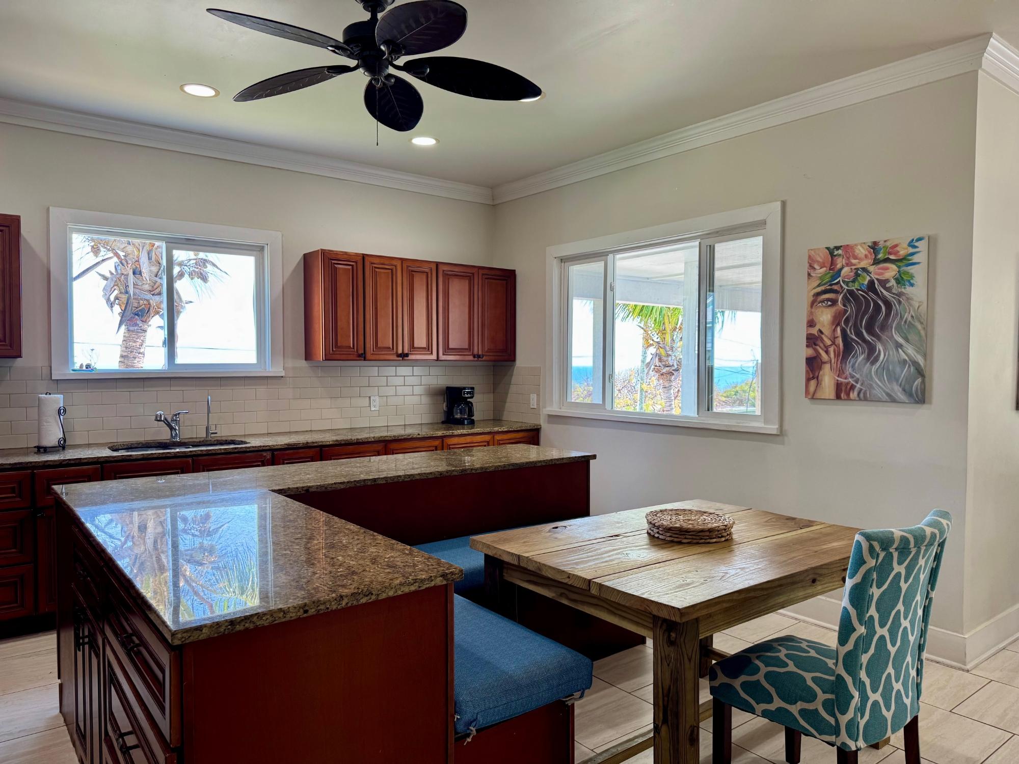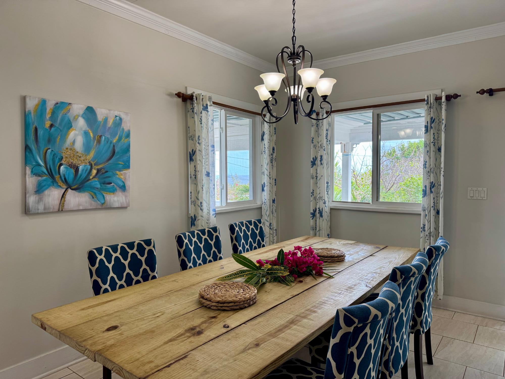 Welcome to Sweet Merlot, a beautifully designed island retreat in the heart of Rainbow Bay, one of Eleuthera’s most coveted coastal communities. This thoughtfully crafted compound features a spacious 4-bedroom, 3.5-bathroom primary residence, a charming 2-bedroom, 2-bath guest cottage connected via a dual-entry foyer, and a separate guest studio/home office above, ideal for extended family, remote work, or vacation rental flexibility. Perched above the Atlantic Ocean and surrounded by lush tropical landscaping, Sweet Merlot offers sweeping views, gentle sea breezes, and the effortless rhythm of indoor-outdoor living. Multiple decks, a private poolside patio, shaded porches, and intimate seating areas invite you to relax, entertain, and soak in the serene surroundings. Step inside the open-concept great room, where relaxed elegance meets coastal comfort. A modern kitchen with sleek finishes flows seamlessly into the dining and living spaces, creating the perfect setting for gathering with friends and loved ones. Expansive sliding glass doors open onto a wraparound deck.