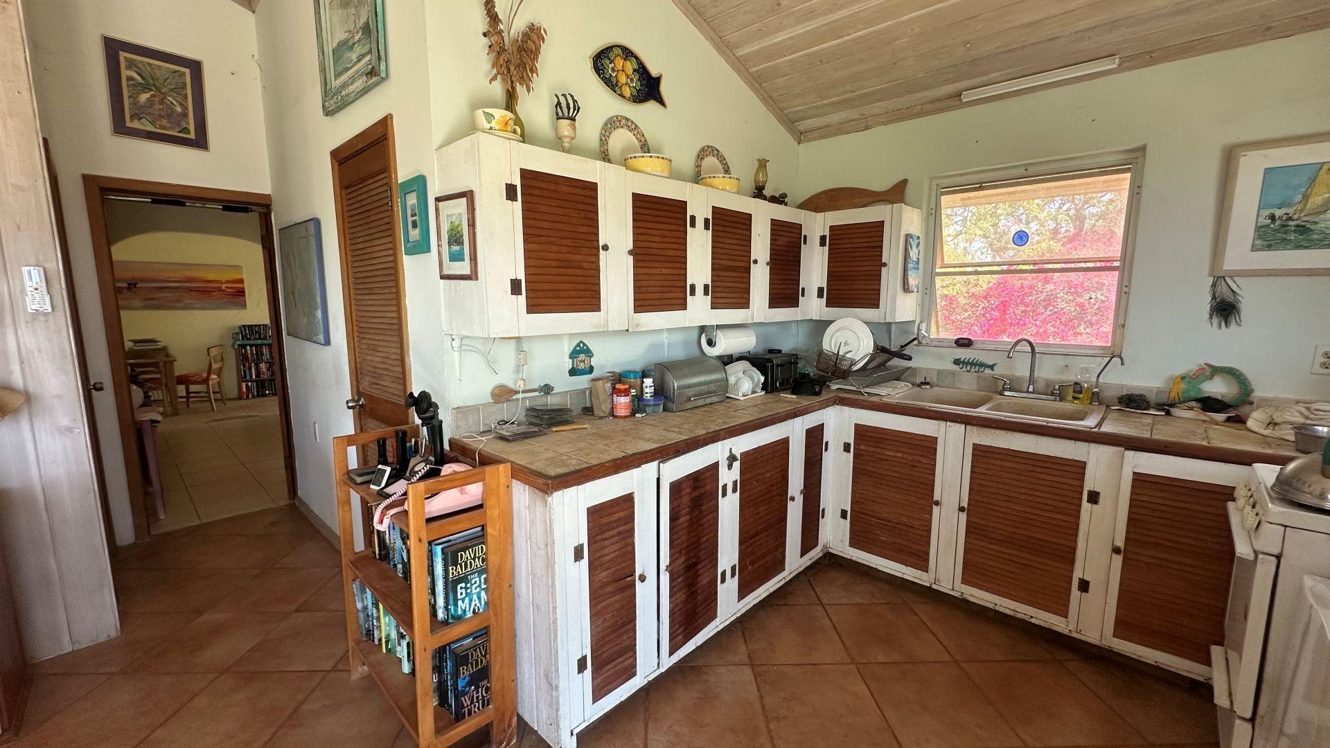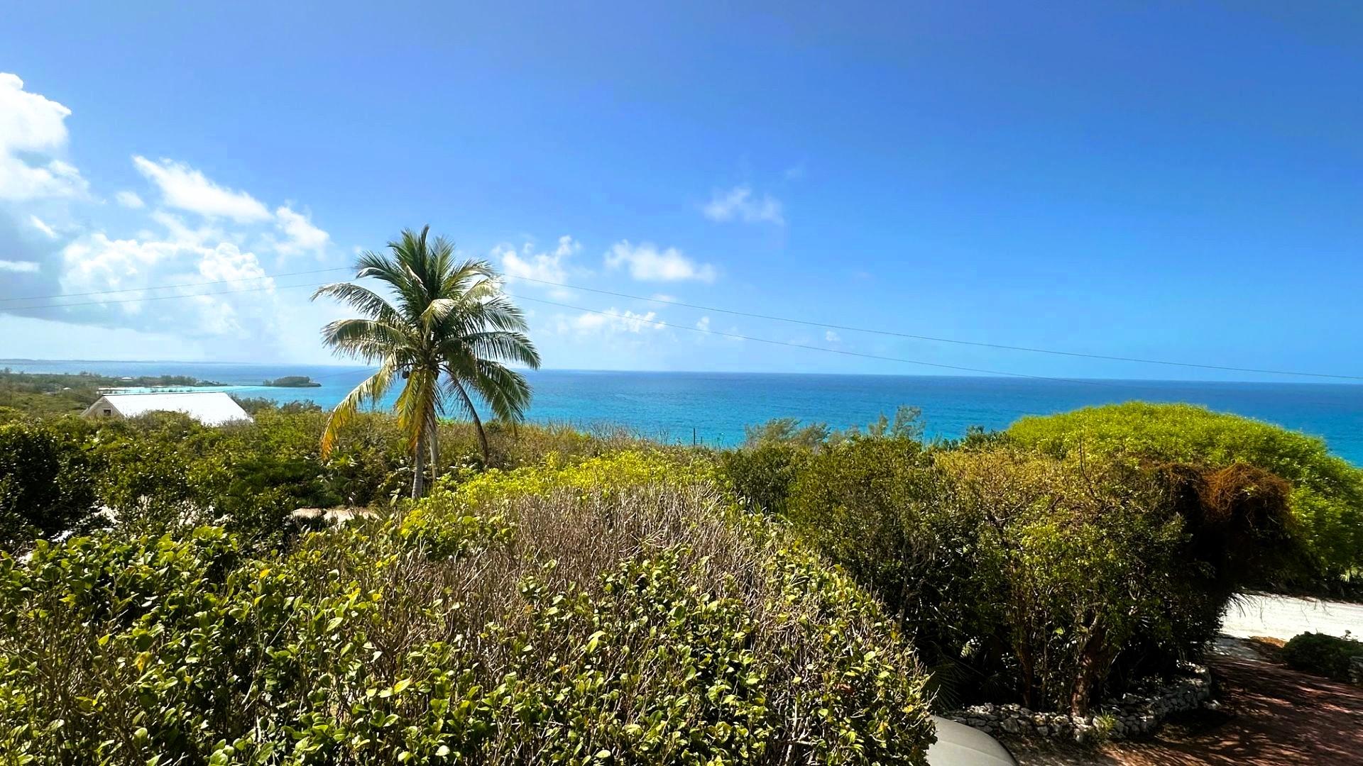 Lots 26, 27, 28, 29 and 35, 36, 37 and 38, Block 10, Section A, Rainbow Bay This extraordinary property, perched on one of the highest ridges in Rainbow Bay, offers magnificent 360-degree views of both the tranquil Bight of Eleuthera and the Atlantic Ocean, as well as the island of Eleuthera. Spanning eight lots in Block 10, Section A —four on Honeycreeper Road and four on Hilltop Road—the estate sits 127 to 135 feet above sea level and offers privacy, elevation, and unmatched natural beauty. Main Residence: Located on Lot 27, the split-level home was constructed in 1992 and features 1,644 sq. ft. of interior space and 476 sq. ft. of patio area. The ground floor includes two bedrooms, one and a half bathrooms, and an open-concept kitchen, dining, and living room. Vaulted tongue-and-groove wood ceilings add warmth and character. A spiral metal staircase with beautifully crafted mahogany steps leads to a small tower (built in 2005) that serves as a third bedroom or office with stunning views of both coastlines. The master bedroom was created by converting part of the original garage
