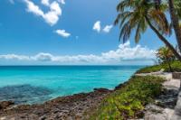 Discover your private island retreat with this beautifully maintained 2-bedroom, 2-bathroom waterfront home set on a rare double lot. Framed by mature coconut palms and vibrant tropical landscaping, this peaceful haven offers panoramic ocean views and direct access to a sandy-bottomed sea, perfect for swimming. Inside, enjoy a step-down great room with native stone fireplace, open-concept kitchen, and multiple entertaining spaces, all designed to maximize natural light and views. Both bedrooms feature ensuite baths, with the primary suite offering an extended sitting area for added comfort. Outside, expansive patios invite al fresco dining and sunset lounging, while a detached garage with laundry adds convenience. The second lot provides endless possibilities, build a guest cottage, pool, or lush garden retreat. Ideally located near beautiful beaches and local amenities.
