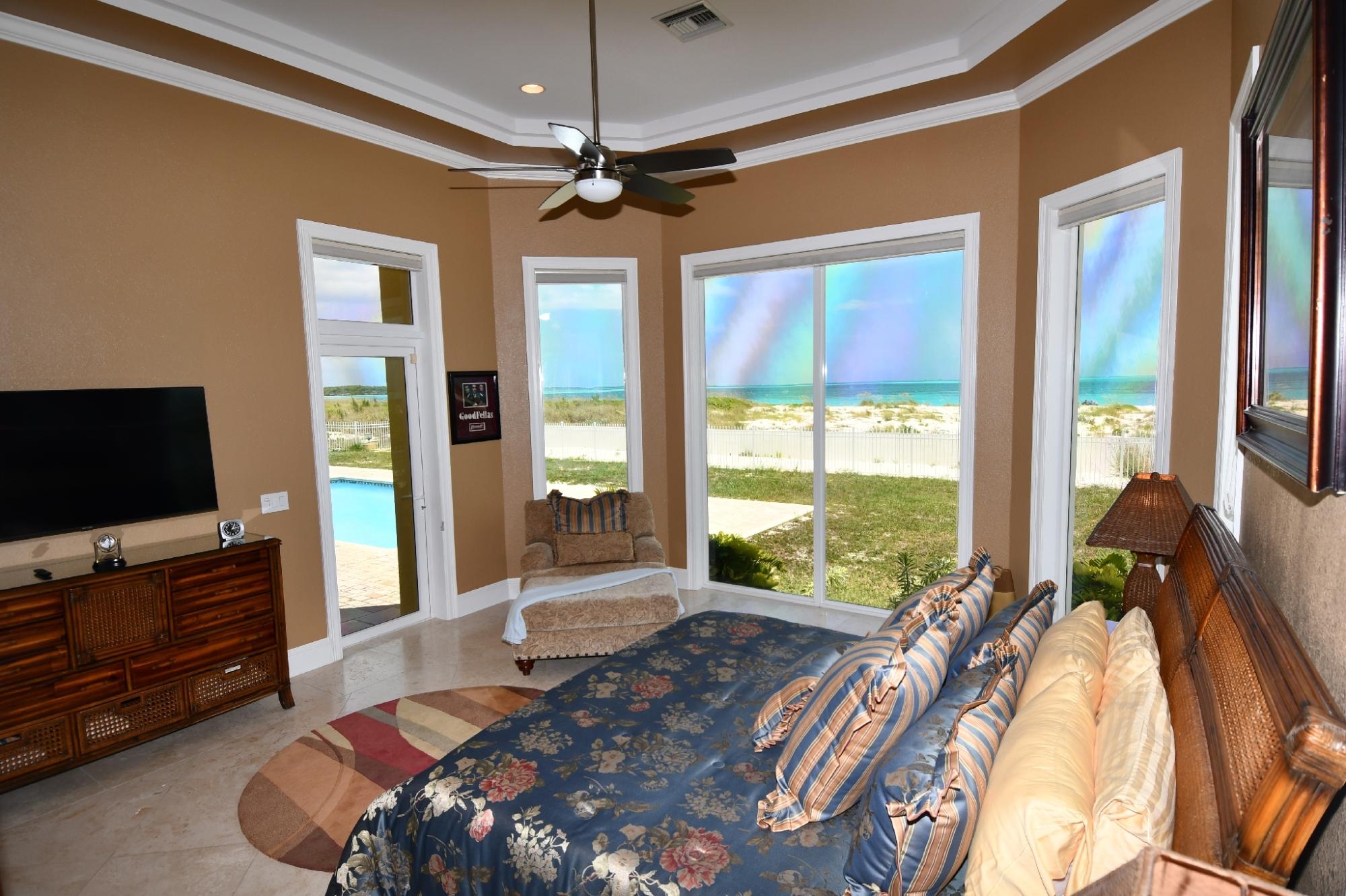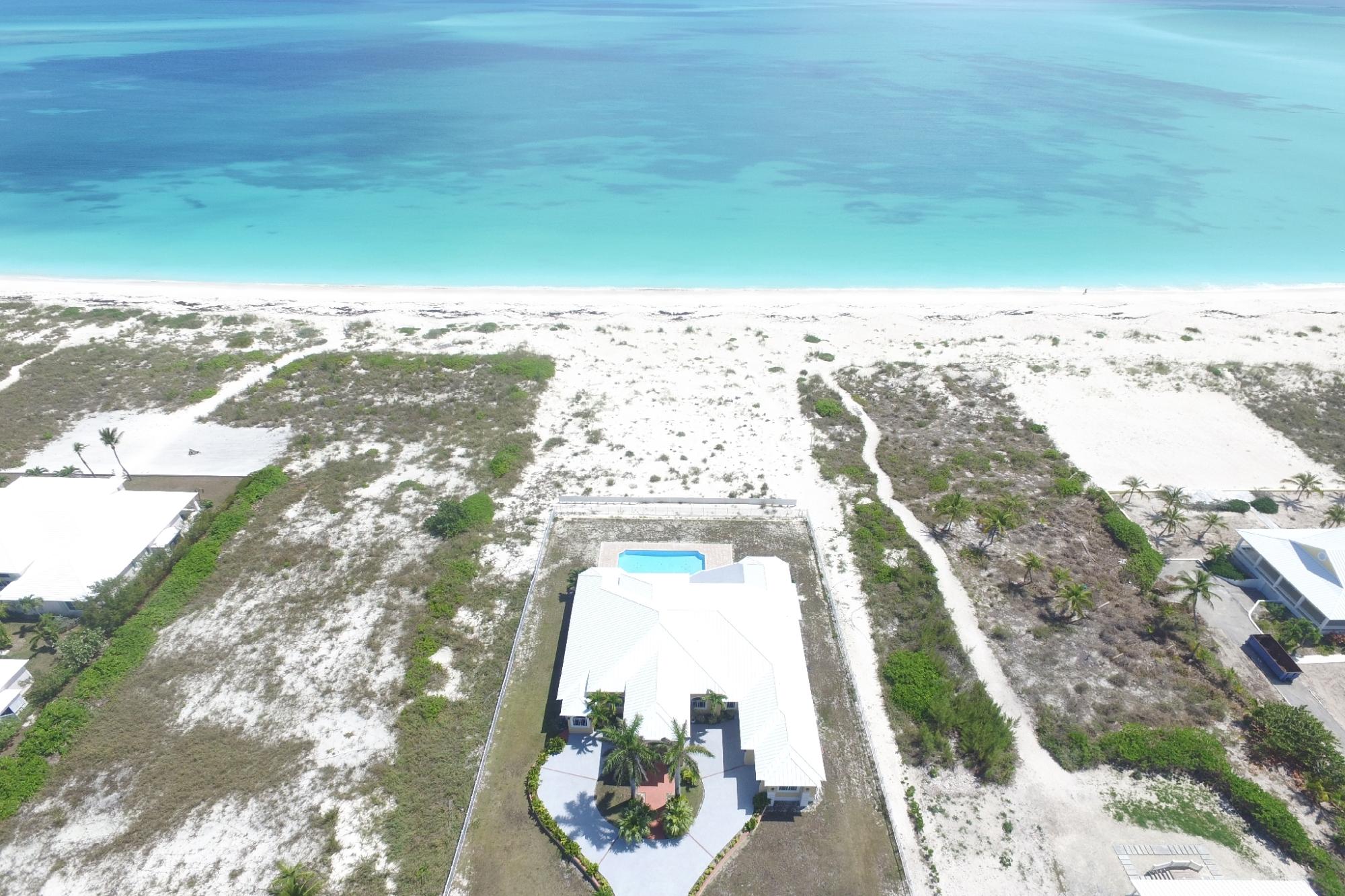 Discover The Villa, an unparalleled beachfront oasis that redefines luxury living. This exquisite architectural masterpiece spans 5,797 square feet of opulent interior space, featuring 6 bedrooms and 5 bathrooms. Enjoy 150 feet of pristine white sand beachfront on the world-renowned Treasure Cay Beach. The main residence boasts 2 beachfront suites and 2 garden bedrooms with en suite baths, complemented by a charming 2-bedroom, 1-bath guest house. An additional 1,996 square feet of covered verandahs, a three-vehicle garage, and a porte cochere enhance the property allure. Indulge in the ultimate beachside experience with a stunning pool, expansive tiled deck, and pool bar, all set against the backdrop of 2.25 acres of lush, tropically landscaped grounds. The Villa’s modern design offers breathtaking ocean views from nearly every room, with elegant columns and arches adding a touch of Mediterranean charm. This is your dream beachfront retreat, where luxury infuses with nature.