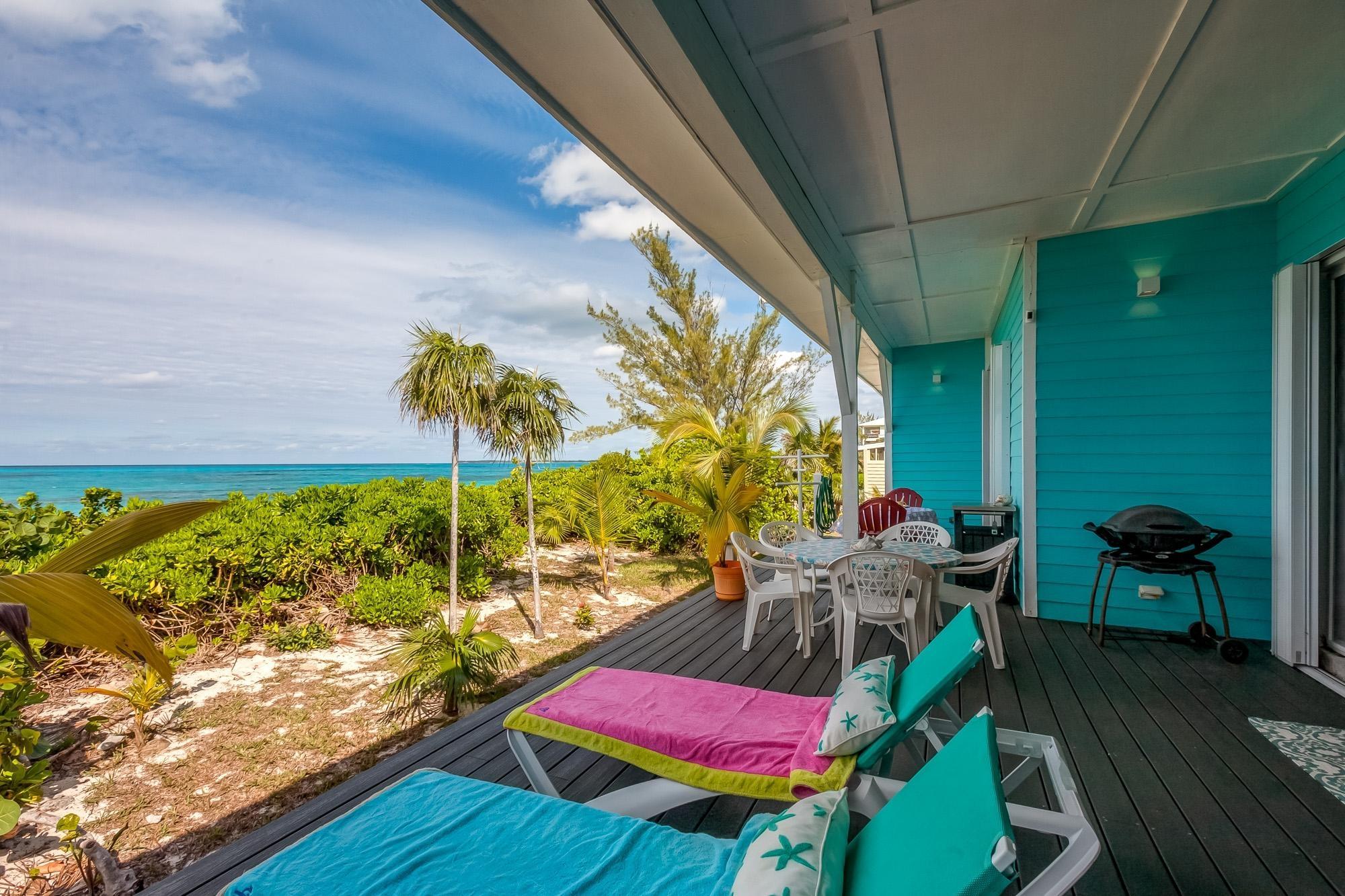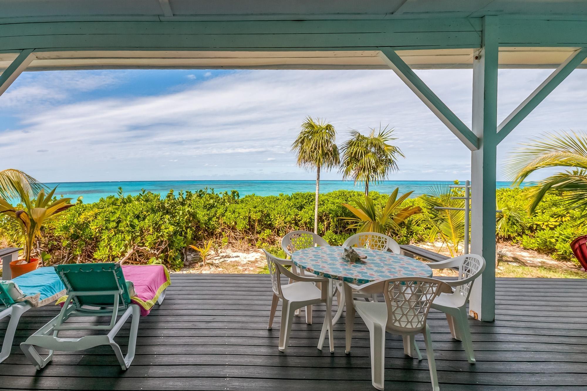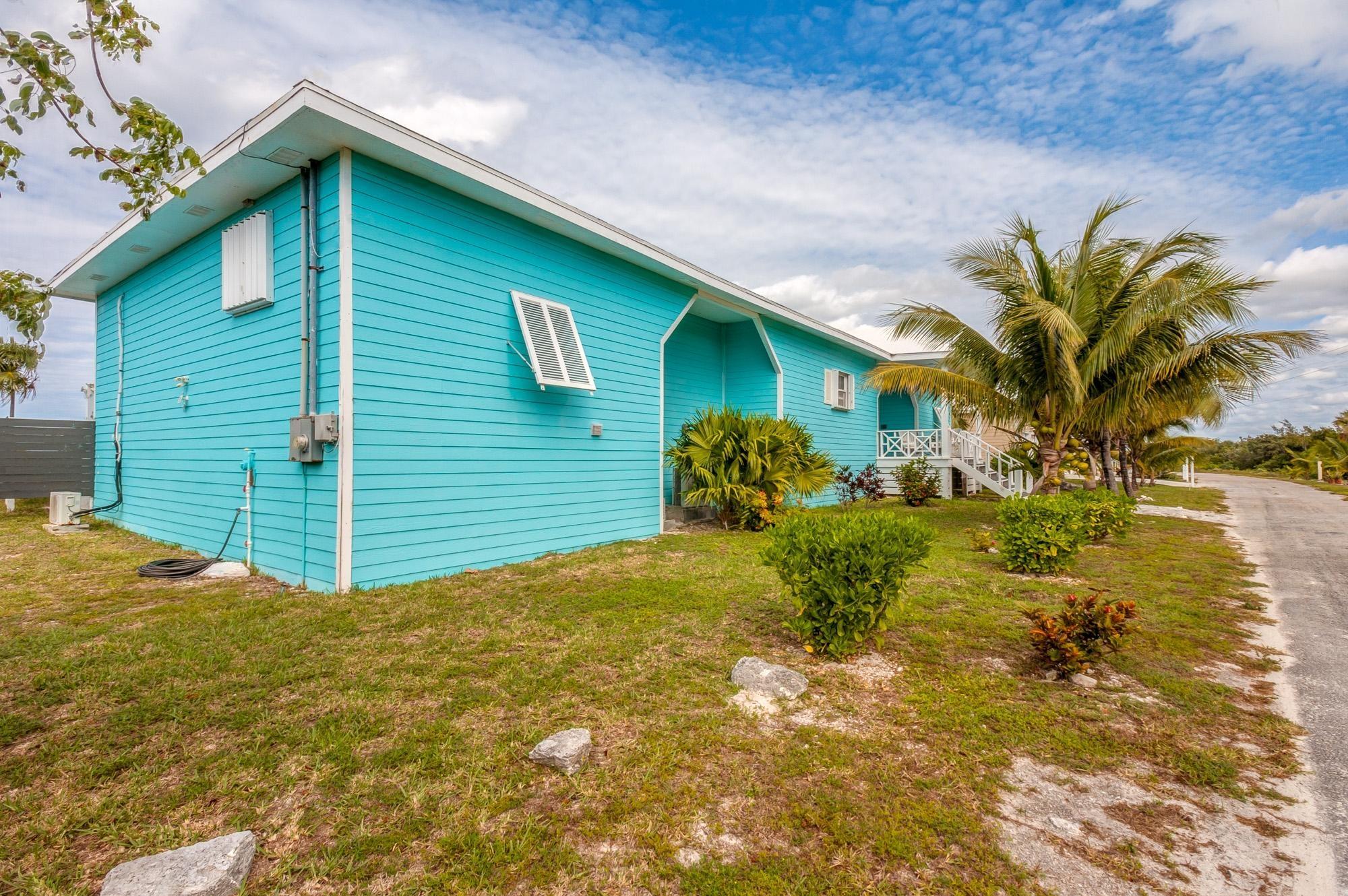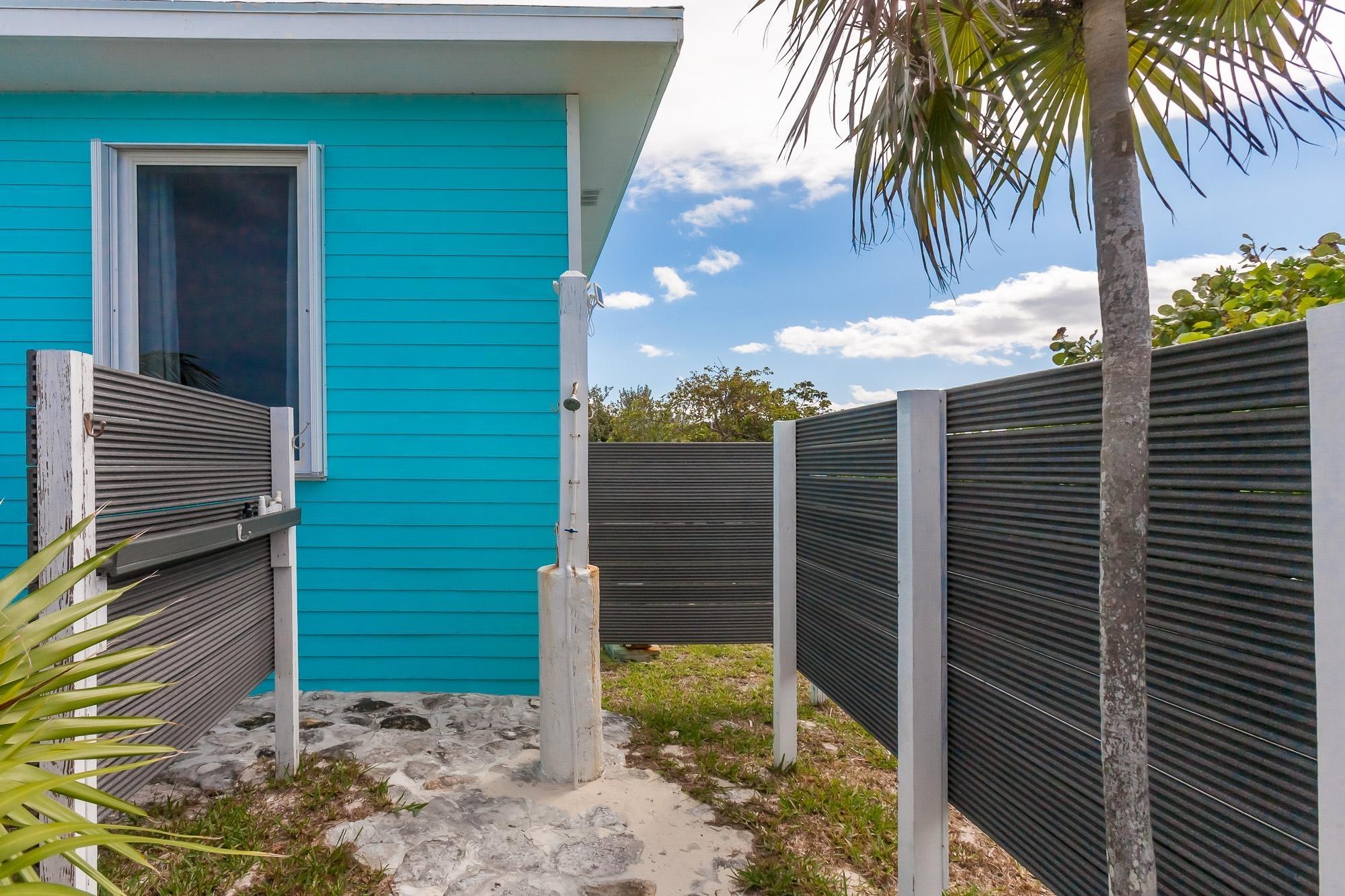 PARTIAL OWNER FINANCING -Meticulously maintained, thoughtfully crafted single-family residence with 100 ft of beachfront on San Salvador. Built in 2022, the home includes three bedrooms and two bathrooms in an open layout designed to make the most of ocean views and cooling breezes. The floorplan allows for separation into a 1 bedroom (king), 1 bathroom unit and a 2 bedroom (king and queen) 1 bathroom living space, both with independent entries, kitchens and decks. Practical tile flooring, split AC units, vaulted ceilings, impact windows and hurricane shutters create a comfortable and secure beachfront property. The main kitchen features quartz countertops, smudge-resistant stainless steel appliances, and direct access to an outdoor deck—ideal for al fresco meals. Mature coconut palms, marine-grade exterior lighting, outdoor shower, BBQ pit, and an all-weather deck maximize outdoor living. A stone path leads directly to the sandy beach. The entire home or either side can be used as a rental. Located a few minutes from town and accessed by paved roads. Offered partially furnished.