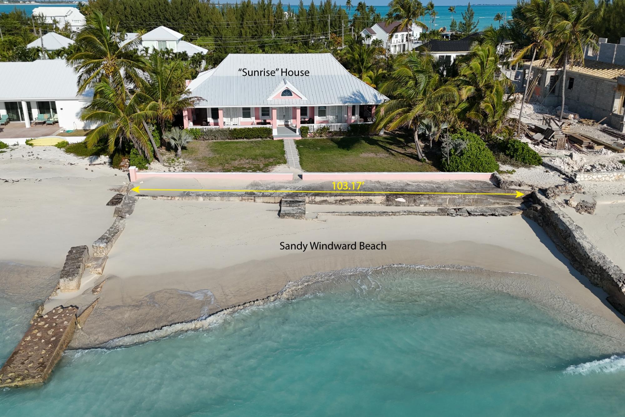 Sunrise Beach House, Windward Beach, located on a private cul-de-sac. Own this great open concept, totally refurnished turn key home which boast 2 of 3 ocean front bedrooms, 2 Bath with detached garage. Enjoy a drink when sunbathing on your own direct beach edge patio while witnessing every color of ocean blues. Sip your morning coffee under your covered patio while watching our stunning sunrises and boats at a distance heading out to our close fishing grounds. Bonus, this beach home is also located a short 5 minute walk to access the other 3.5 mile long Treasure Cay beach. Shopping & beachfront restaurants are only a 5 to 10 minute golf cart ride away. A must see, own your piece of Treasure Cay paradise and be a part of this close knit community today! The property is appointed with low maintenance landscaping, a backup generator and water system. Windward Beach at Sunrise Point, Treasure Cay, Abaco, Bahamas.