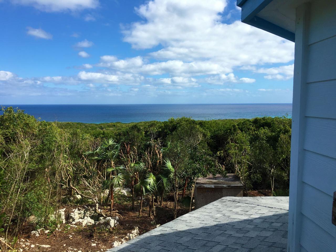 This solidly built off-the-grid home, with an open plan Sky Room and separate 164 sq ft outhouse, is conveniently located within close proximity to world-famous Surfer's Beach, Surfer's Haven, Surfer's Manor, and Gregory Town (home of the Eleuthera pineapple). A great opportunity exists to purchase a finished exterior structure and to complete the interior finishes to your own specifications for a private dwelling or an income-producing property. The view includes a view of the surf at Surfer's Beach. The view from the upstairs Sky Room peers into the outside corner of the actual Surfer's Beach break, enabling one to check the surf without leaving the house. The house has that expansive "Skyline Drive" ocean view with a direct view of the break, as well as tranquil garden views that showcase nature, and the natural rock formations and tropical landscaping, typically found in this part of Eleuthera. The lot has a town water-fed, 1600-gallon plastic cistern, which gravity feeds the outhouse for toilet, sink, and shower. The cistern is surrounded by a circular rock wall