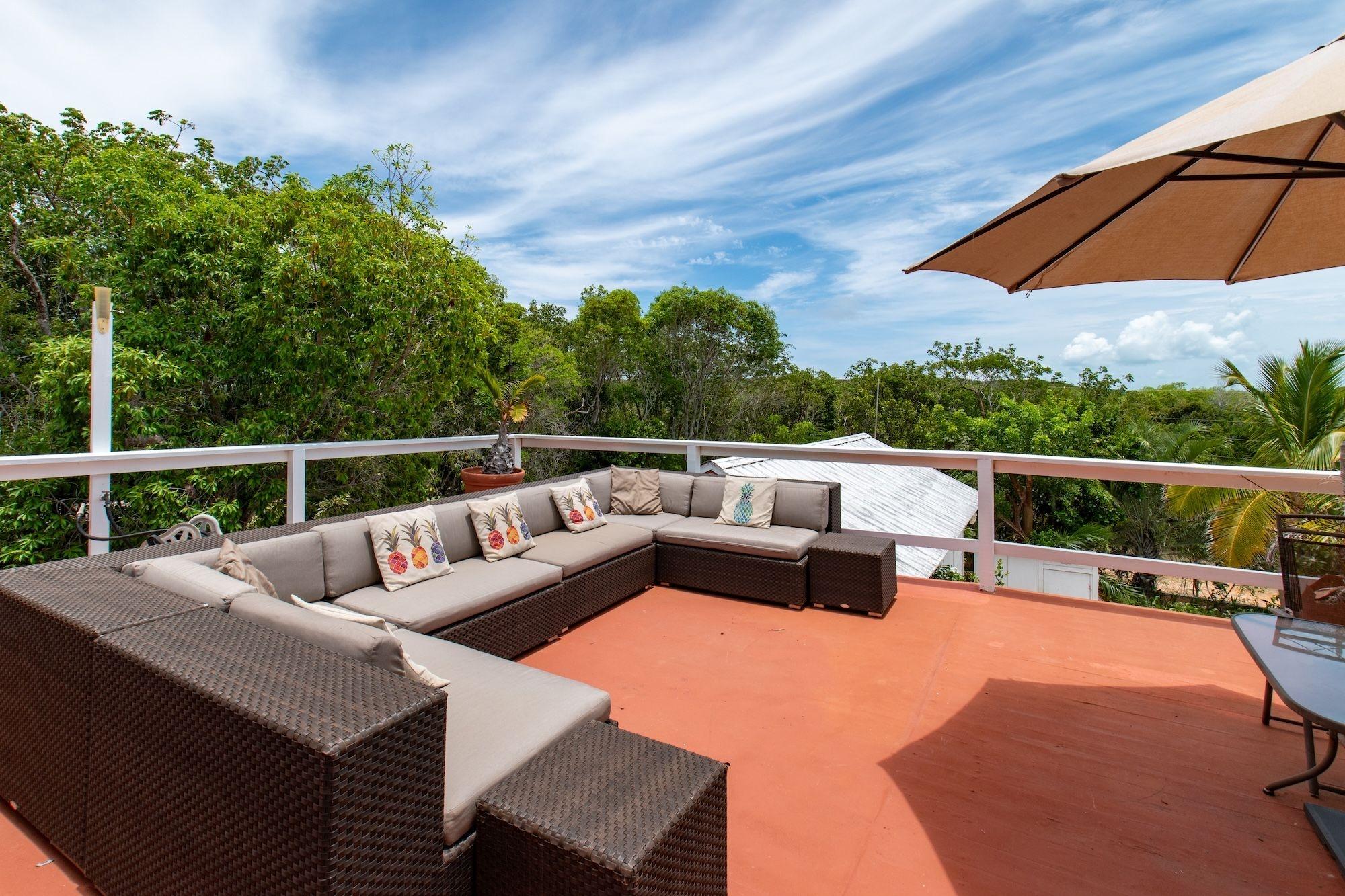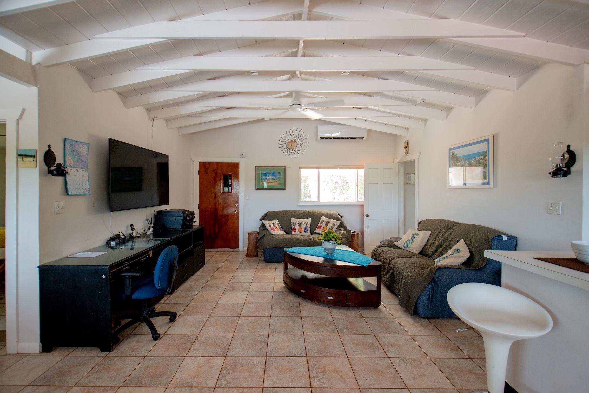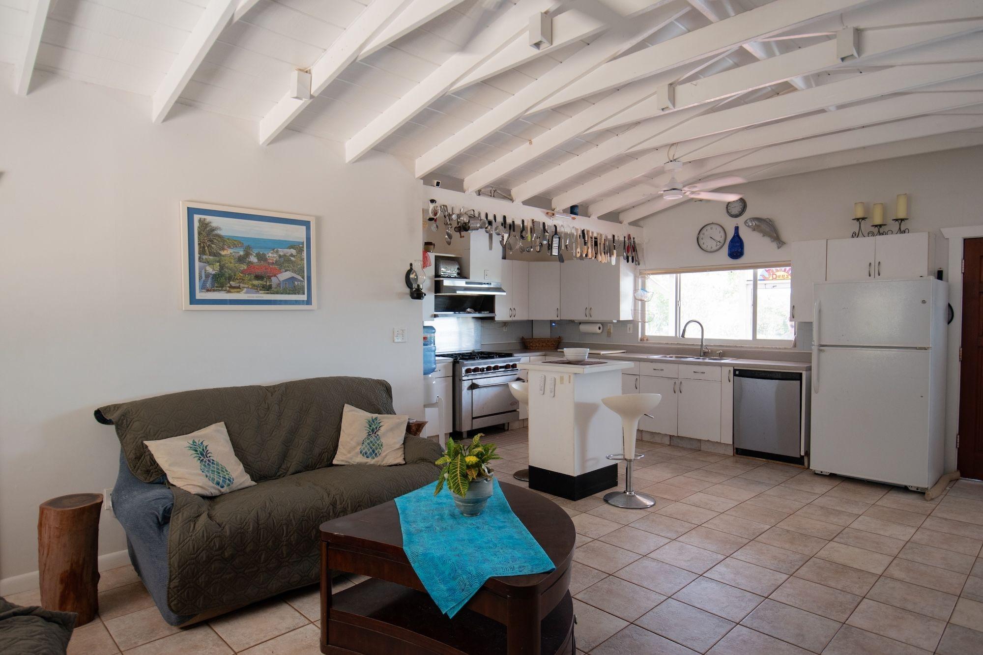 Charming island retreat in Oleander Gardens, Gregory Town, Eleuthera. Sunny Days features a 2-bed, 2-bath main home with open-concept living and an expansive partially screened upper deck perfect for outdoor entertaining. A separate 1-bed, 1-bath concrete studio cottage with kitchenette adds guest or rental flexibility. The 0.22-acre lot is landscaped with native trees and is a short walk to the community beach. Additional highlights include a large carport, laundry area, storage shed, woodshop, 9 kW dual-fuel generator, storm shutters, city water, and a 1,000-gallon cistern.