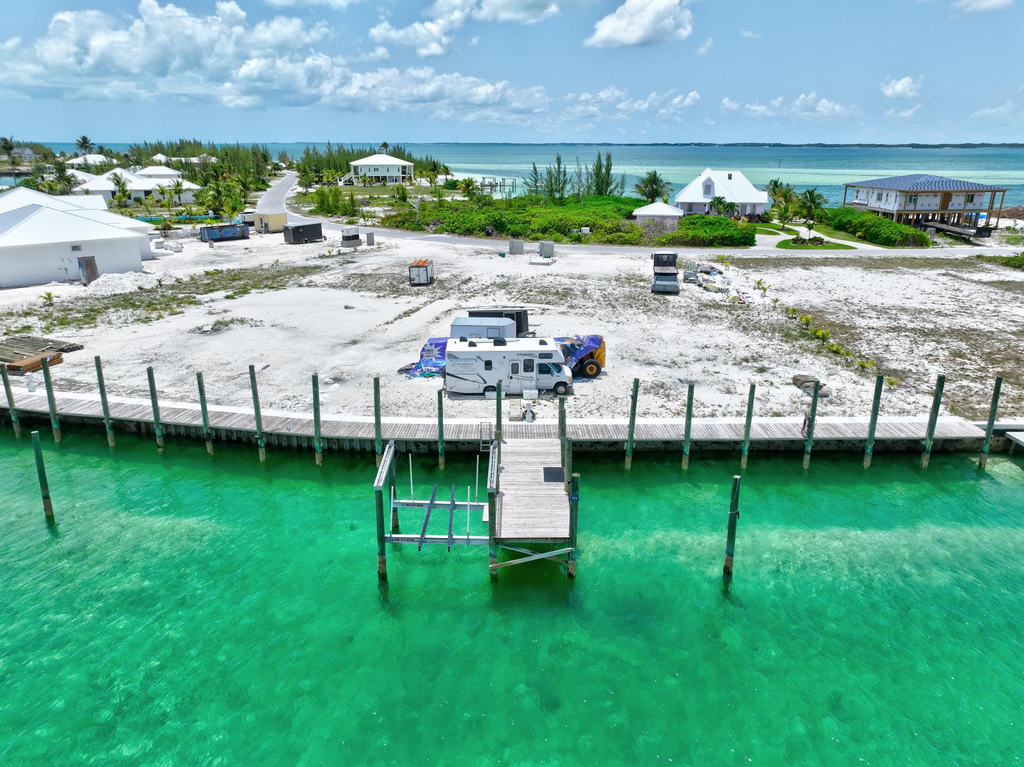Canal Lot 5, Block 200 - Treasure Cay. 17,150 sq. ft. parcel with 118ft of new seawall on Brigatine Bay. Features full-length dock and pier, 18,000lb boat lift, power and water 50 amp pedestal. Approved plans for garage and boathouse included. Ready-to-build lot in a prime location across from Clipper Cay.