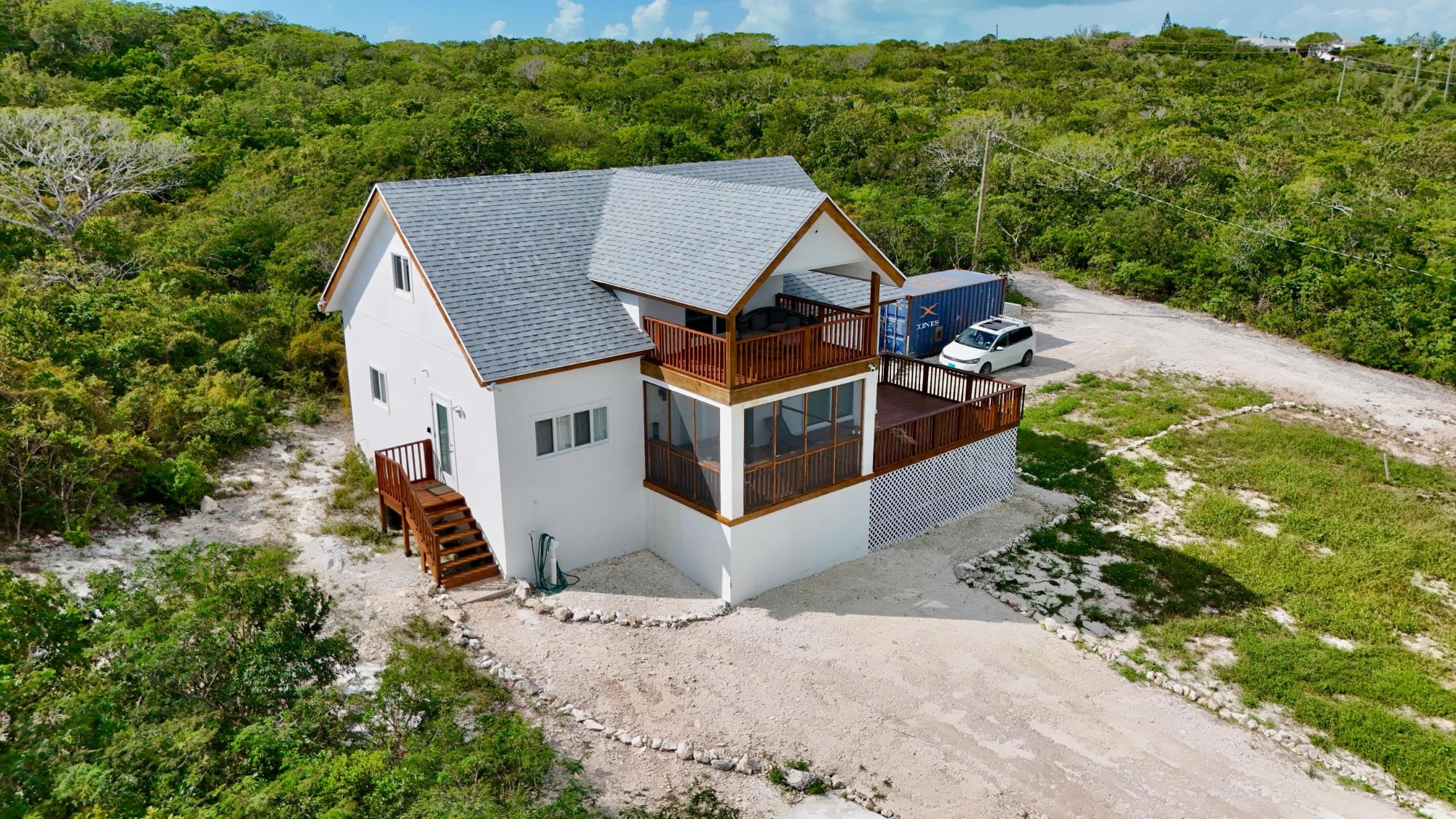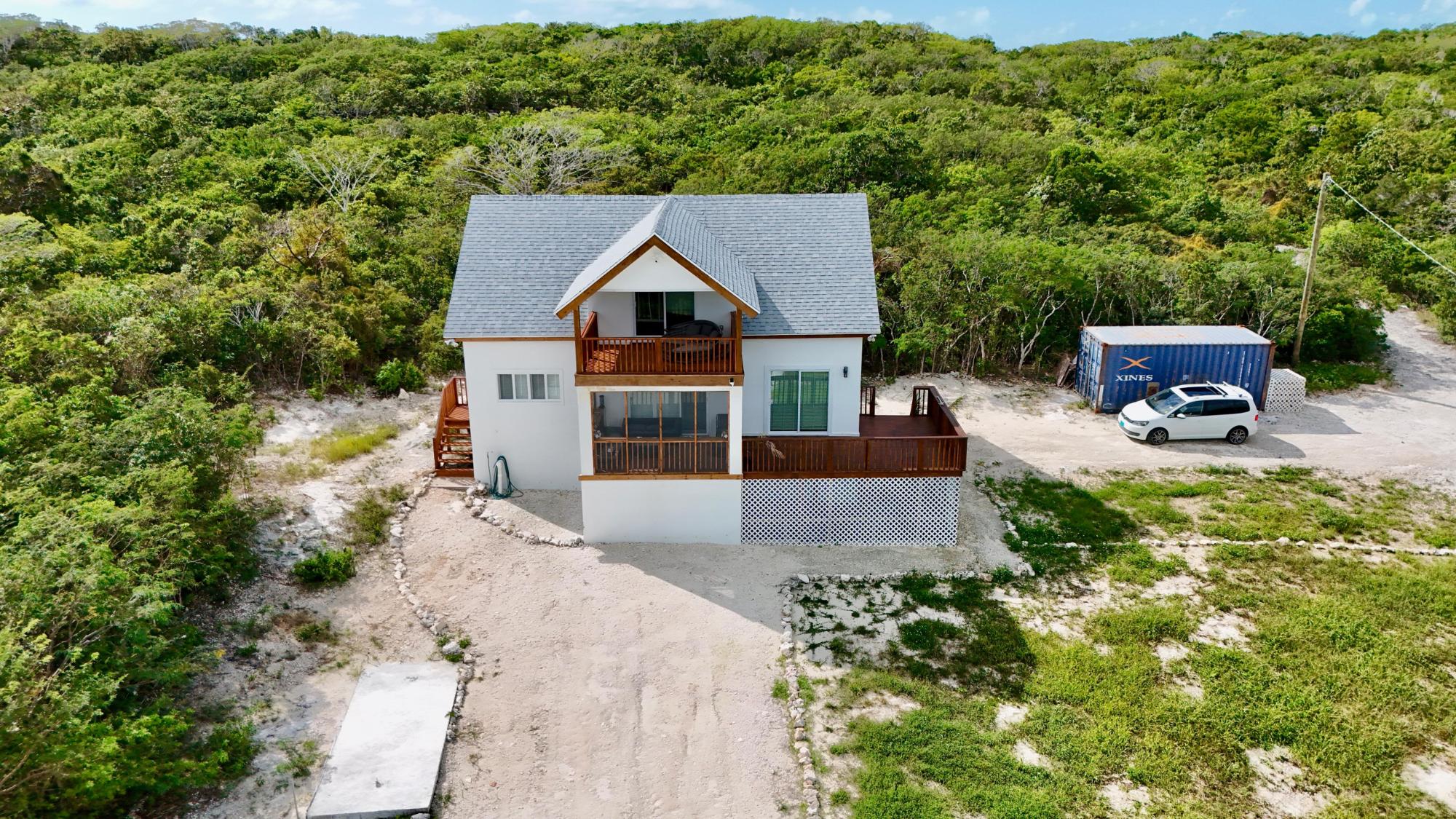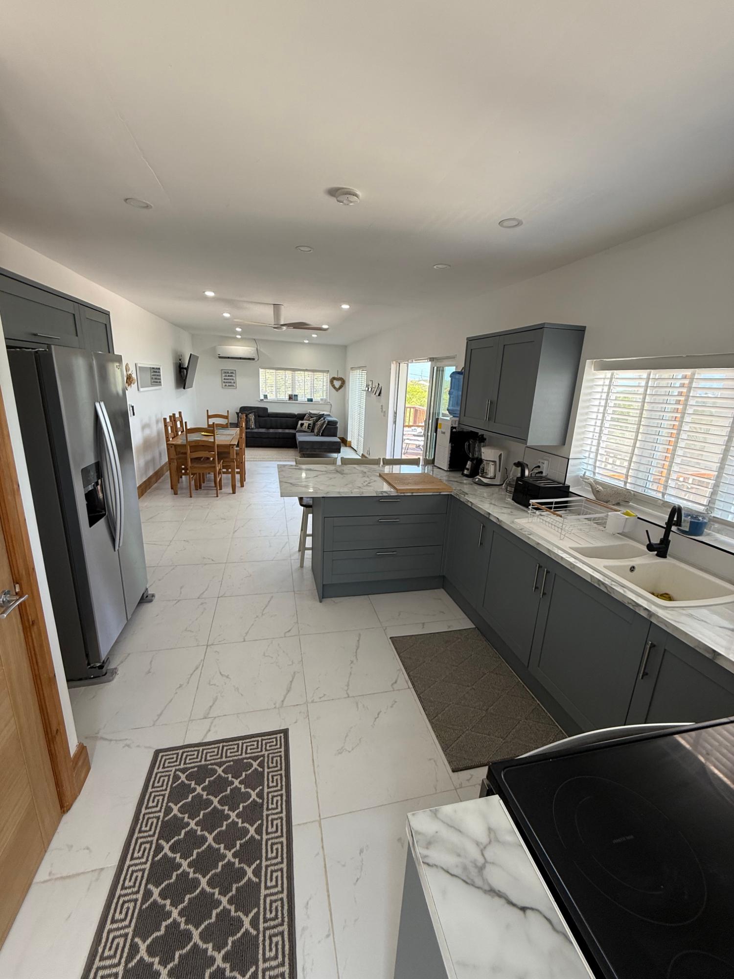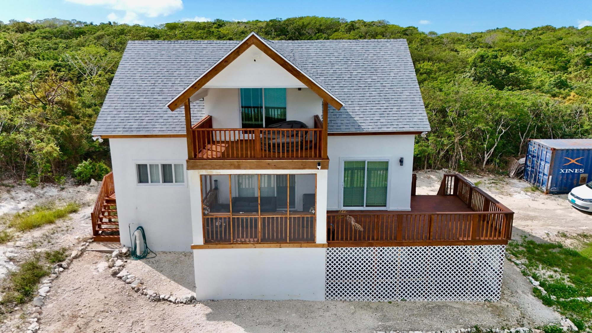 Regatta View is a newly completed modern home set on a hillside corner lot in the highly sought-after community of Flamingo Bay. Just 5 minutes from George Town and 15 minutes from the airport, the property combines convenience with privacy in one of Exuma’s most desirable locations. Spanning 2,000 square feet over 2 floors, it has been designed with families in mind. There are 3 spacious bedrooms, including a luxurious master suite with private balcony, and 2 sleek bathrooms. At its heart is a brand-new kitchen fitted with high-quality appliances: a full-sized fridge freezer with water and ice maker, large oven with built-in air fryer, fitted washer and dryer, plus generous storage. The open-concept living and dining area flows to oversized windows and sliding doors that frame breathtaking turquoise views. Expansive decking, covered balconies, and a partly screened patio maximize outdoor living, offering stunning vistas of Flamingo Bay, February Point, Moriah Harbour, and Crab Cay. Already a successful holiday let, Regatta View is both a dream family home and a smart investment.