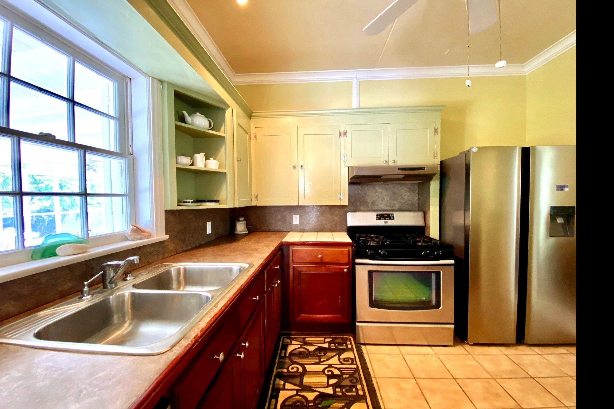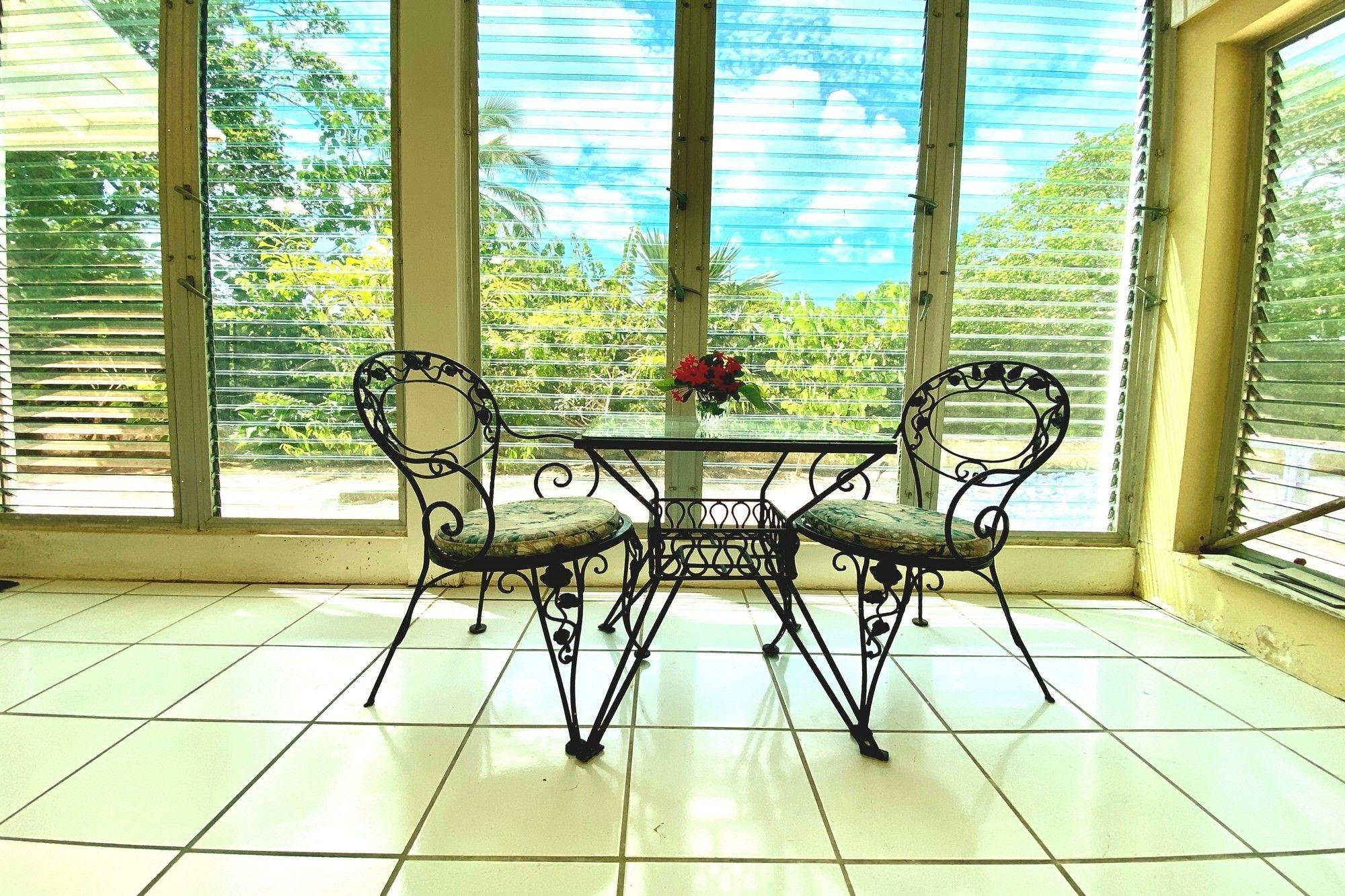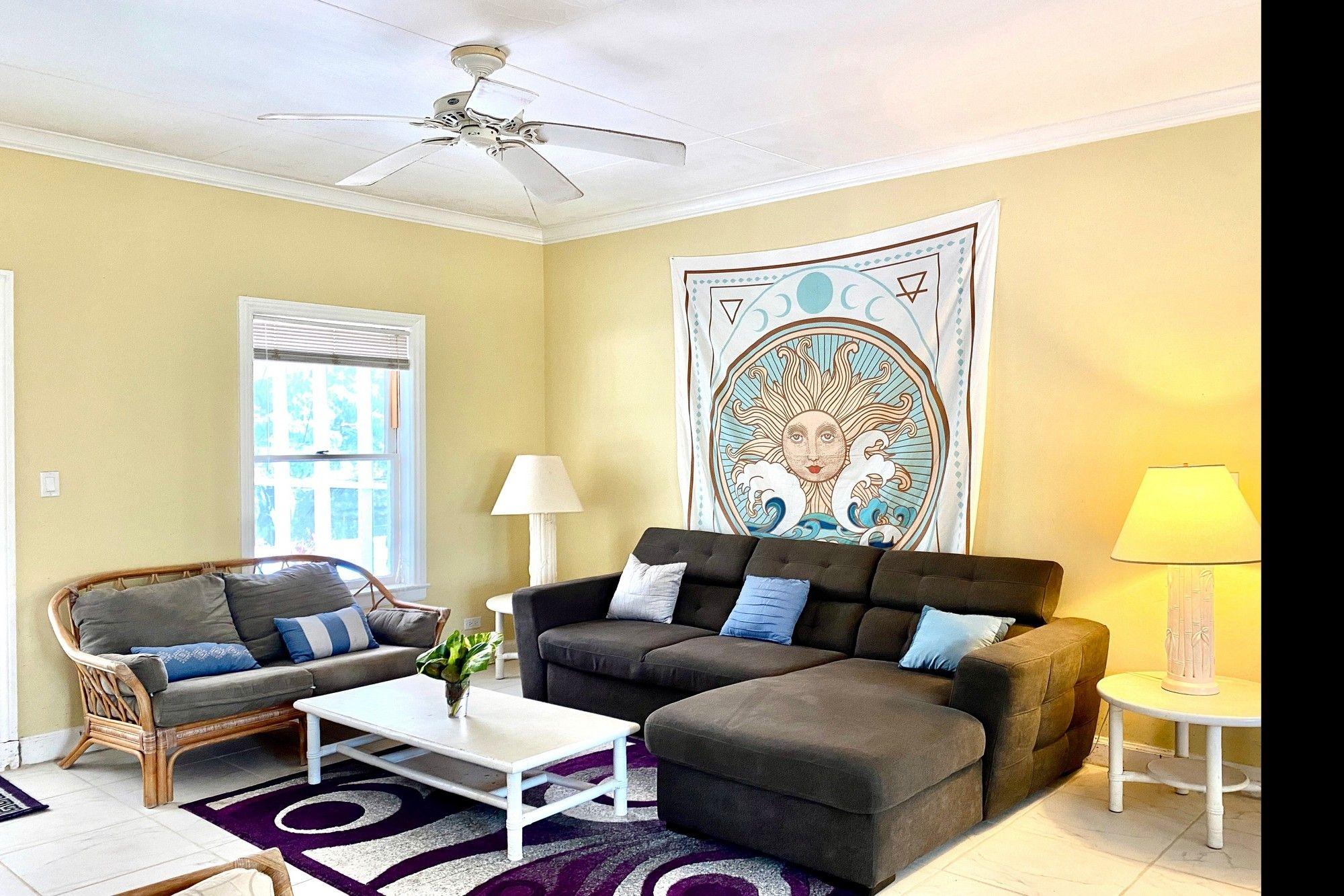 Charming vintage Bahamian concrete cottage on a 3.4-acre elevated, landscaped lot in Rock Sound, Eleuthera. The 3-bed, 2-bath main house features open-concept living with screened porches overlooking lush gardens and a private freshwater pool. Renovated in 2012 with ongoing updates. Includes city water, cistern, washer/dryer, and one-car garage with storage. Detached 1-bed, 1-bath guest cottage requires renovation. Surrounded by mature palms, fruit trees, and a spectacular banyan tree. Minutes to groceries, dining, medical services, and the iconic Ocean Hole. Ideal for a serene family home, vacation rental, or smart investment in growing South Eleuthera.