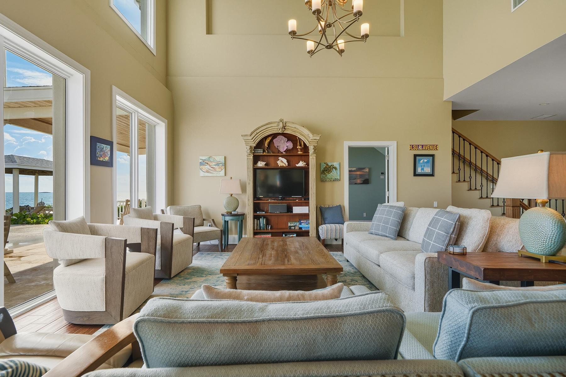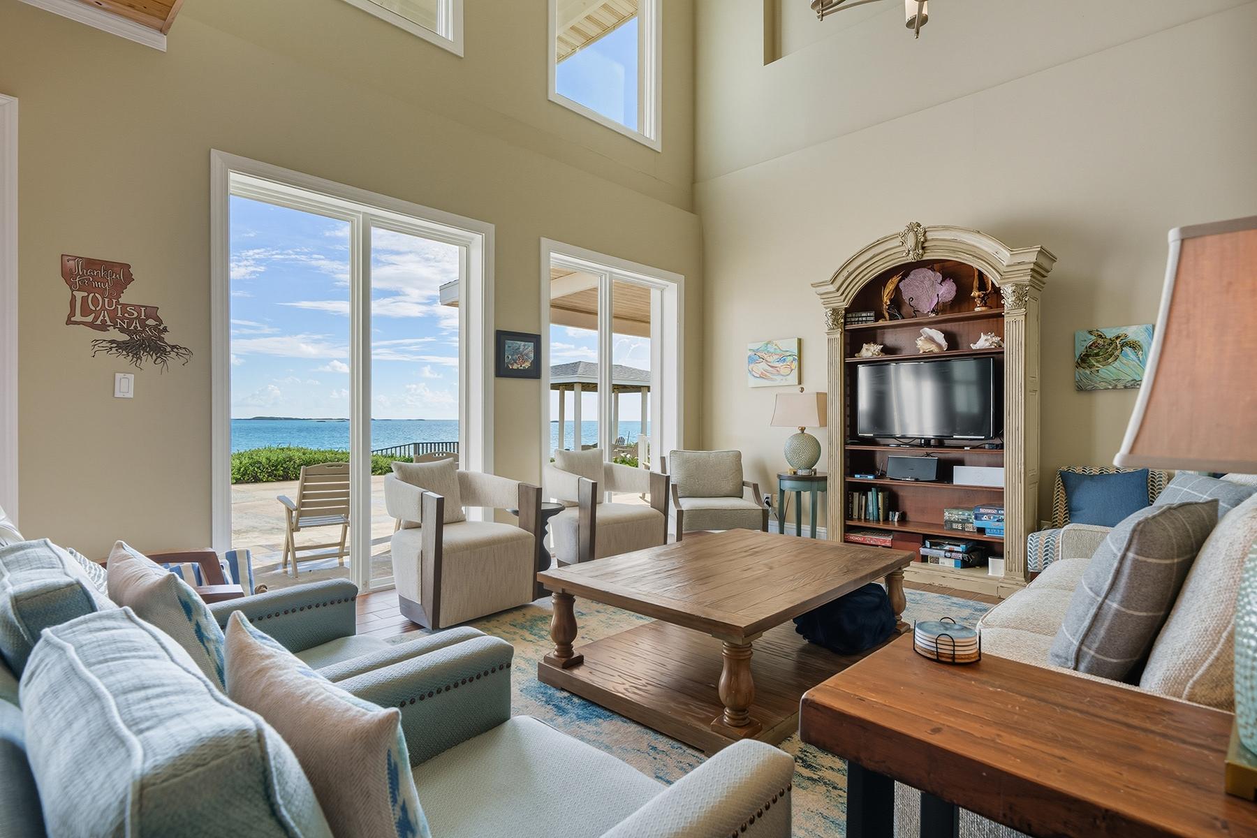 Introducing Cut Pearl. Perched 15 feet above the beach in the highly sought-after and exclusive community of The Cut on Little Exuma, in The Bahamas, this home is both accessible and private, offering its owners and guests the best of island living. Built into the natural elevation, Cut Pearl presents unique opportunities for its next owner. Entering on the ground level, you are greeted by a grand staircase leading up to the main floor. A spacious open concept living, dining, and kitchen area creates the perfect setting to make the most of family time while enjoying unobstructed views of Exuma?s turquoise waters. With more than enough space for the entire family, Cut Pearl features five bedrooms and four bathrooms. Two of the three ensuite bedrooms are located on the main floor, while the third is tucked away upstairs with a spectacular ocean view. Step outside to the expansive patio to dine al fresco, lounge beneath the cabana, take in the sunset sky, or follow the stairs down to the private powder-sand Cut beach, reserved exclusively for property owners and their guests.