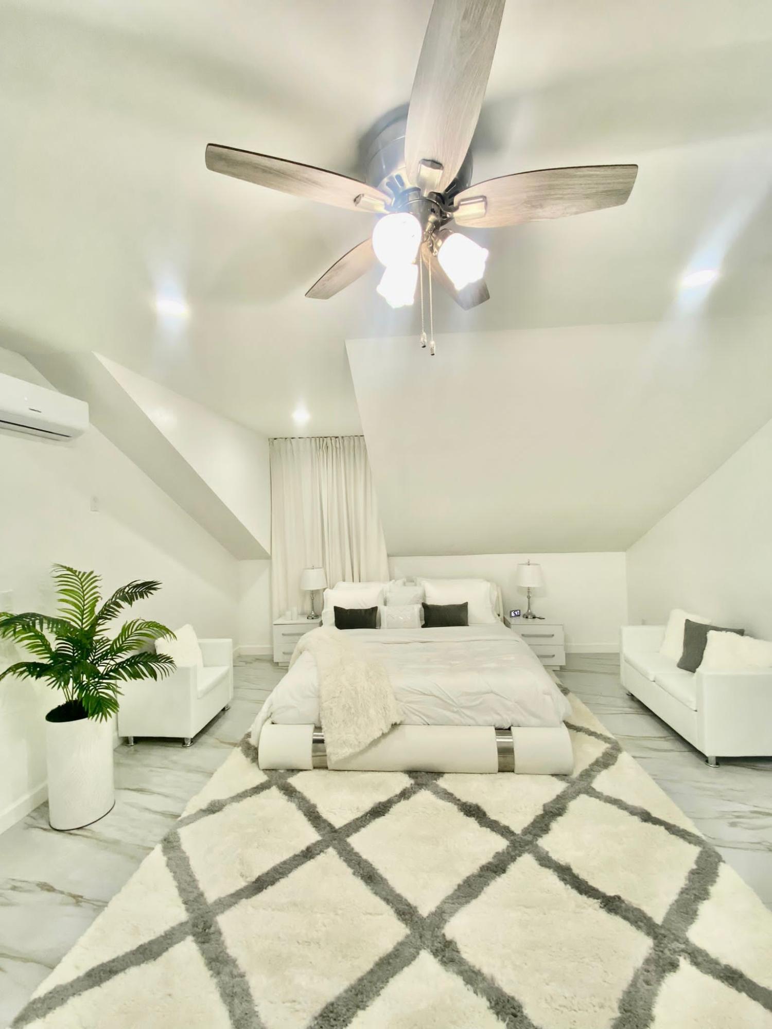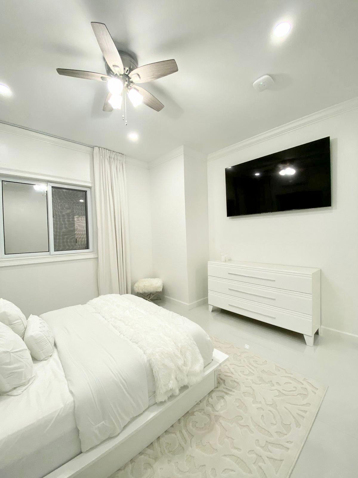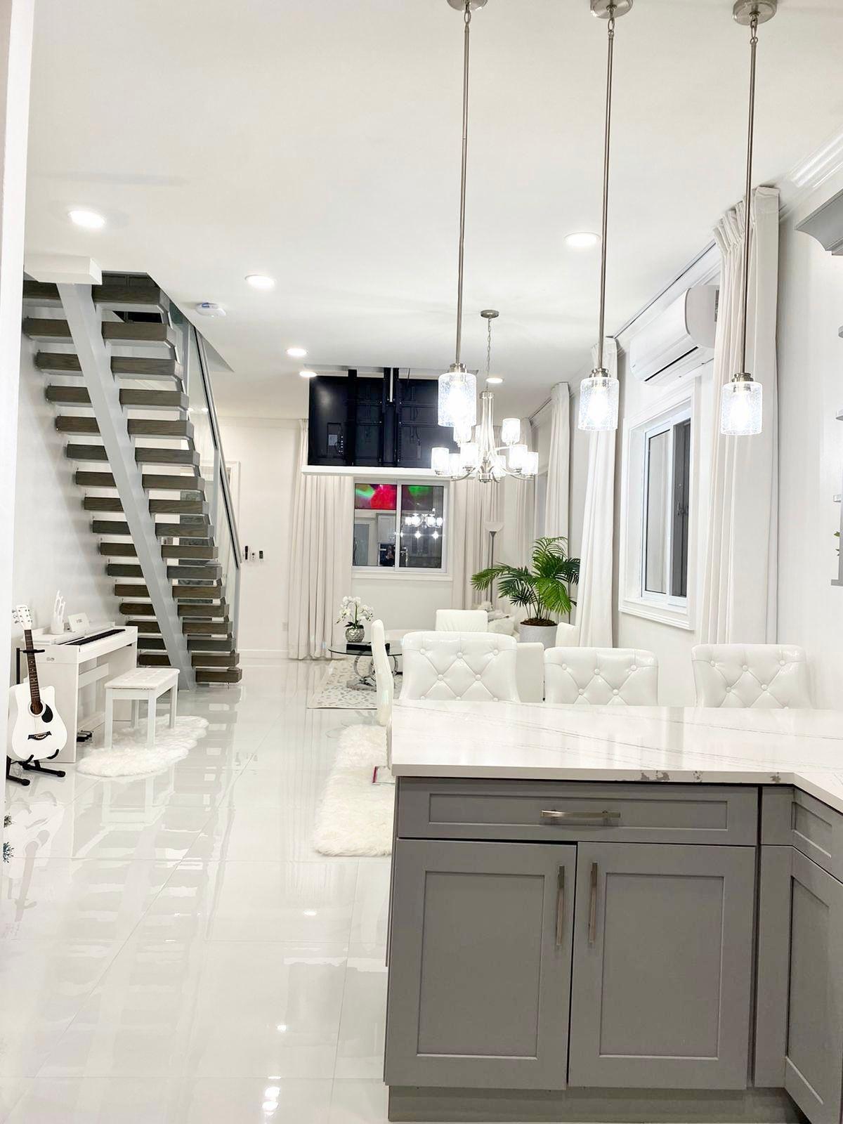 The Moss Manor is a modern, tastefully designed, 2 story home built with the finest attention to detail. Enter the home to a stunning entryway, showcasing an open concept design with 12ft ceilings throughout. Accented with crown molding, recess lighting, porcelain tiling, a gourmet kitchen, quartz countertops and Samsung appliances. Realise max enjoyment with a vanishing T.V in the living room, a breakfast bar, washer and dryer, ceiling fans and ductless A/C, hurricane grade windows and a standby generator. The home features 3 beds, 3 baths, each designed and decorated with LED mirrors, vanities with ample storage and stand-up showers. Follow the beautifully crafted floating stairs to enter the cozy loft to an impressive master bedroom with its own private balcony plus an ensuite bath with rainfall shower, double vanity, soak tub and a T.V for the total spa experience. Home is offered turnkey with utilities included. Access to golf cart and bikes to explore the island.