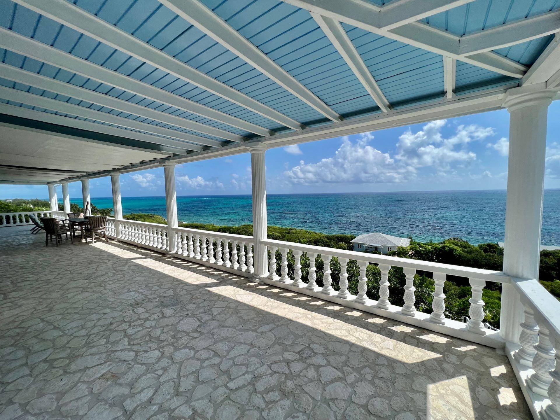 Sitting proudly atop a 120-plus ridge with approximately 80 feet of frontage on the Old Banks Road, High Life is a well-constructed home perfectly positioned to enjoy magnificent, double-sided, ocean views. It's all about the views! The 180-degree panoramic view of the Atlantic is unobstructed. The estate encompasses an expansive, 5-bed, 5-bath home spanning 2.336 acres, and includes a semi-detached 300 sq ft 1-bed guest apartment or office, and a pool, with plenty of room for further expansion. There are 5,700 total square feet under cover, including 2,900 sq ft of living space under air, a 2,500 sq ft covered verandah, and a 300 sq ft garage. There is an additional 600 sq ft sun deck. An endless supply of cool breeze provides incredible cross ventilation. The property is a short drive from the centre of Governor's Harbour and stretches from the Old Banks Road to the Queen's Highway. Shops, restaurants, beaches, and the airport are all within easy reach. With a full wraparound verandah, an outdoor shower, all modern conveniences, a chefs kitchen, cozy home bar, vaulted ceilings