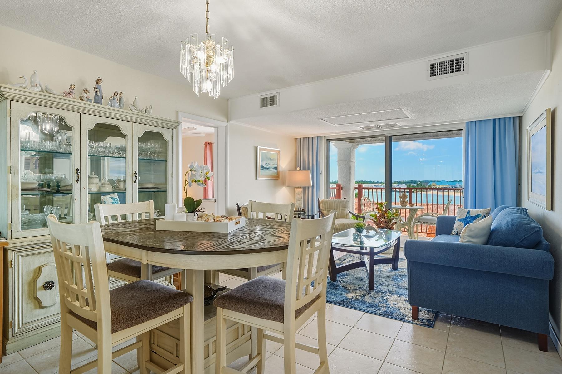 Wake up to the sound of gentle waves and panoramic ocean views from this meticulously maintained two-bedroom, two-bath condo in the secure, gated waterfront community of Delaporte Pointe in Western New Providence. Located on the 5th floor, this light-filled retreat captures the essence of relaxed island living. The interior of the apartment is thoughtfully laid out with sea views from every room.. The fully equipped kitchen with stainless steel appliances flows effortlessly into the dining and living areas, creating the perfect space for entertaining or unwinding at the end of the day. Step onto the spacious south east facing balcony and take in the endless shades of our Beautiful Bahamian waters — a front-row seat to breathtaking sunrises and tranquil evenings by the sea. Residents enjoy resort-style amenities including two swimming pools, direct beach access ideal for snorkeling or leisurely walks, 24-hour security, coded building entry, and a backup generator for added peace of mind. The unit also includes a dedicated parking space with additional guest parking available.