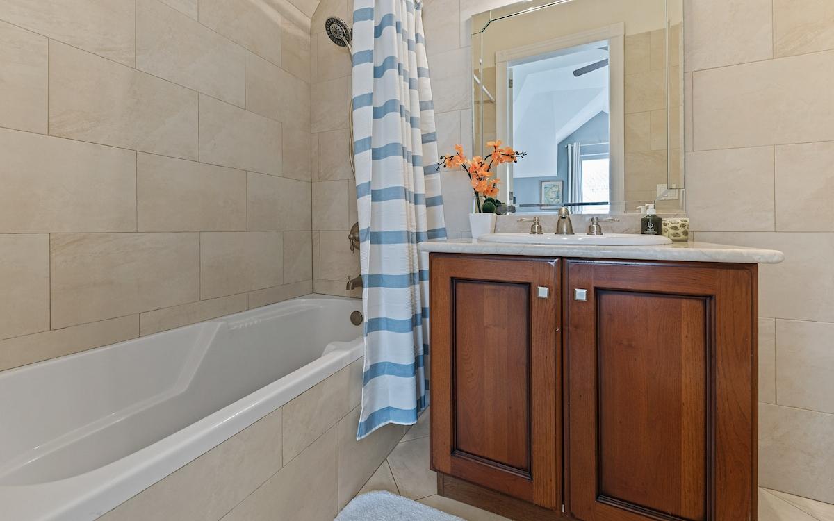 Come home to the ultimate in luxury island living at this ocean view penthouse within the gated community of Love Beach Walk. Situated on a secluded one-mile beach on the western end of New Providence, and just minutes away from the international airport and prestigious developments of Lyford Cay and Old Fort Bay. Immaculately maintained and beautifully furnished, this 3-bedroom, 3.5-bathroom apartment is offered turn-key, ready for you to move in and enjoy. Soaring ceilings and sliding glass doors grace the expansive living, dining, and kitchen area designed for ease of fun-filled entertainment. Two guest bedrooms, both en-suite, are located just steps away, including one that is currently used as a study. A vibrantly colored and exquisitely decorated primary bedroom transforms into a luxurious suite, which opens onto the main balcony and boasts stunning sea views. At the same time, the primary bathroom is accented by his and hers basins, a large walk-in shower, a spacious closet, and ample storage.