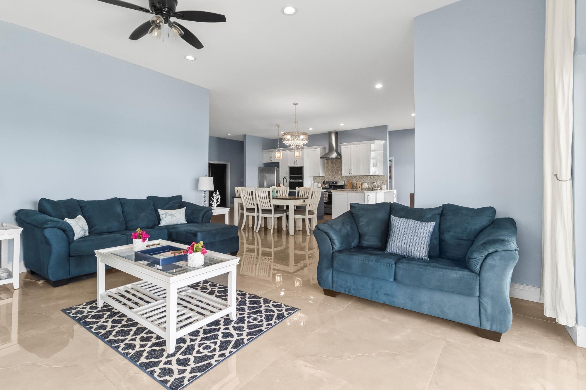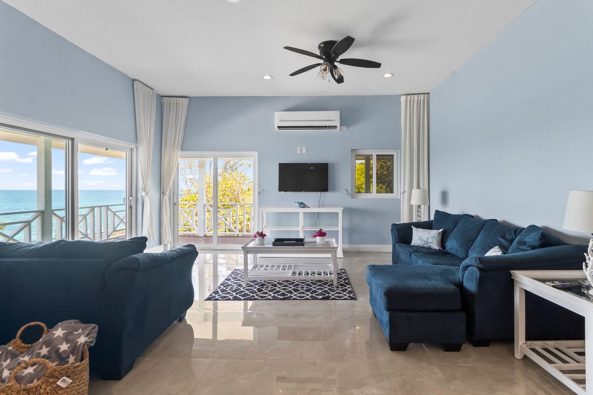 With incredible views over the turquoise and indigo Bahamian waters, this recently constructed concrete home on the calm "Caribbean" side of the island offers the stunning natural beauty and tranquility of island living, complemented by modern conveniences and comforts. Airy and spacious, with high ceilings and beautiful, carefully curated fixtures and fittings throughout, The Blue House features 3 bedrooms and 3.5 bathrooms, designed to reflect the vibe of the tropical waters and vegetation that surround it.