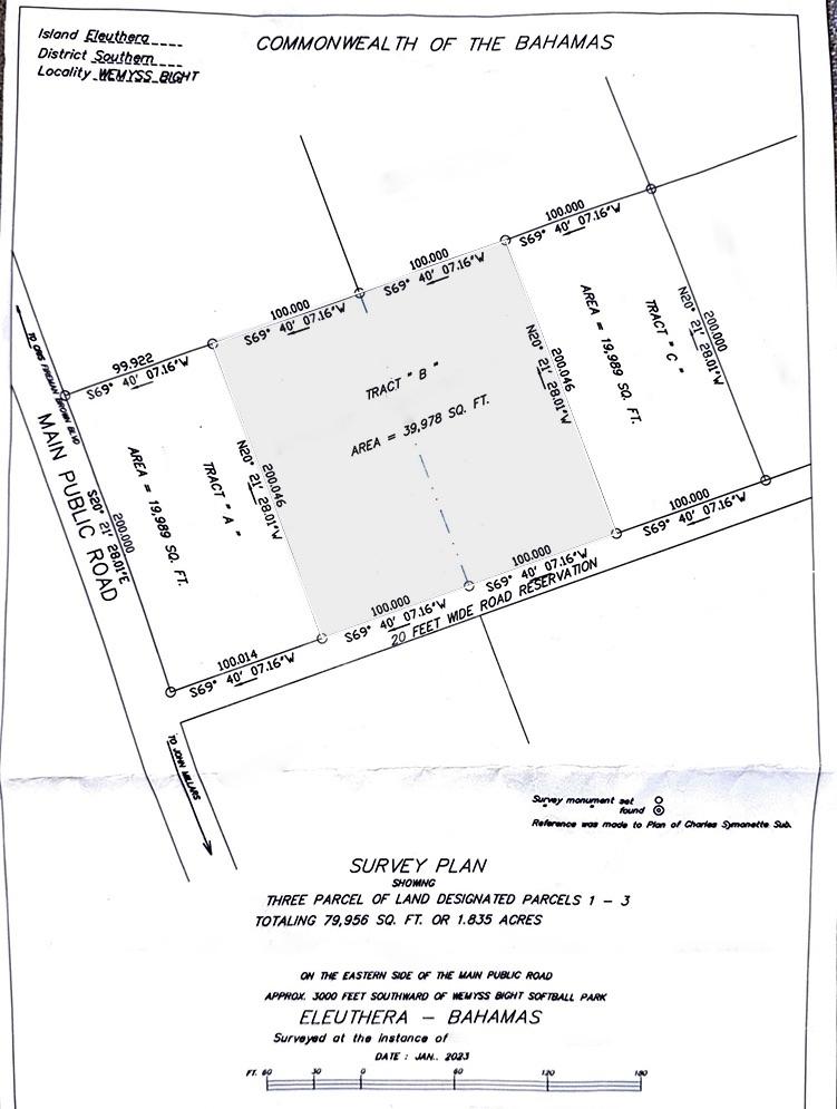 Prime opportunity to own the entire Tract "B" totaling 39,978 sq. ft., in the quiet community of Wemyss Bight, Eleuthera. With Open Zoning, this expansive parcel offers flexibility for a private residence, vacation rental, or long-term investment. Ideally located approximately 4 miles from Lighthouse Beach and the new Disney Lookout Cay, the property sits along Queen's Highway, about 3,000 ft southwest of the Wemyss Bight softball park. Positioned on the left (southeast) side of the road, it includes a 20 ft. road reservation for convenient access. With its generous size, prime location, and proximity to major developments, this tract is an excellent opportunity in Eleuthera's growing southern corridor.
