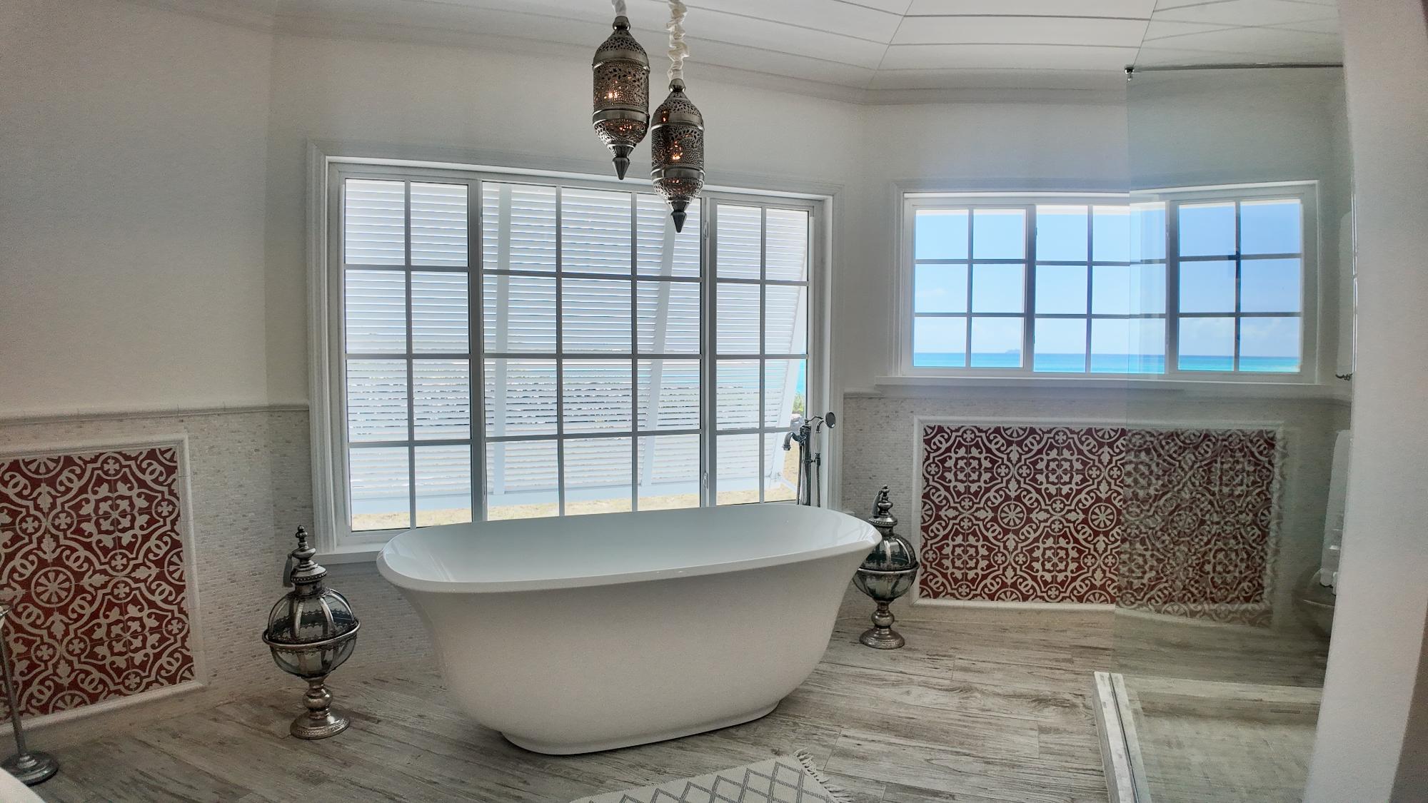 White Nights Two is a stunning 2018 Deltec oceanfront estate offering luxury, tranquility, and timeless Bahamian charm. With 215 feet of direct ocean frontage, its patented circular design provides engineered hurricane resistance and panoramic 180° views. Sunlight fills the open-plan kitchen, dining, and living areas, complemented by a dedicated TV room. The primary suite features breathtaking water views, a spa-inspired bath, and office nook, while two additional ensuite bedrooms offer comfort for family and guests. Curated pieces and décor from around the world make this home unique. Outdoors, enjoy a wraparound deck and direct sea access. A double garage, laundry, backup well, and modern infrastructure, including fiber internet and city power, ensure convenience. Like new and in pristine shape, White Nights Two is the perfect blend of elegance, durability, and serene island living.