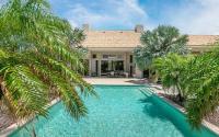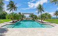 Nestled along 150 feet of stunning beach, Lot 16 is a rare find in this exclusive power sand beach community. This exceptional beachfront home offers 2,744 sq. ft. of thoughtfully designed living space, radiating a traditional island style that is both inviting and comforting. The property features a spacious master suite with direct access to the pool, complemented by an additional ensuite guest bedroom that overlooks lush gardens, ensuring relaxation and privacy for all. Enhancing the allure of this estate is a charming separate guest house spanning 688 sq. ft., complete with an open-plan living area, a full kitchen, and an upstairs loft bedroom—an ideal sanctuary for visitors. With its own 150-foot stretch of the total 300-foot beachfront, this property presents breathtaking views that must be experienced to be believed. Elegant details abound, including an etched-glass enclosed library, a chef’s kitchen equipped with premium Miele appliances, and exquisite white oak wood and marble flooring. The Ludowici roof tile adds a touch of timeless sophistication.