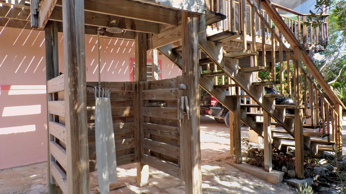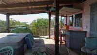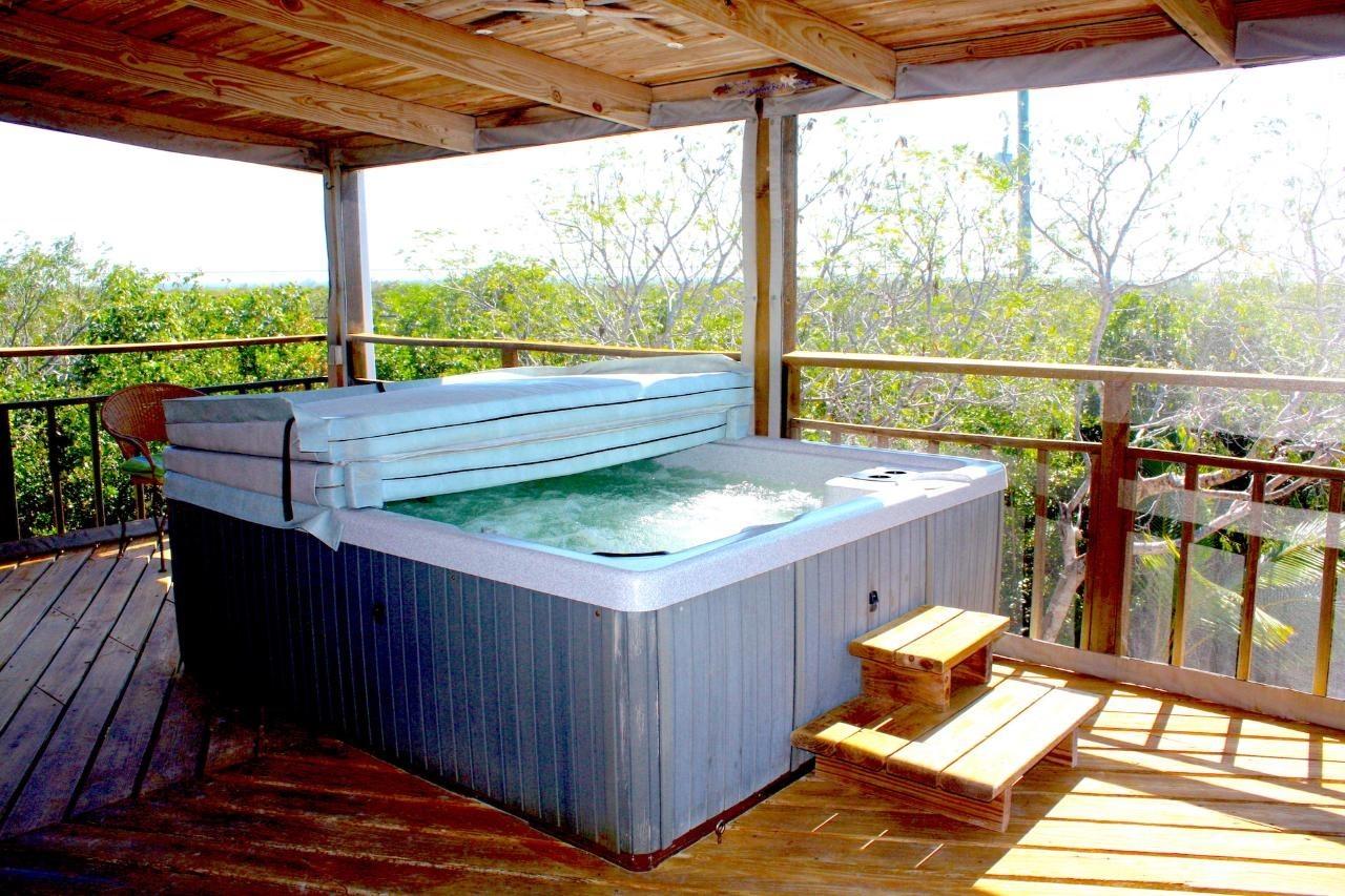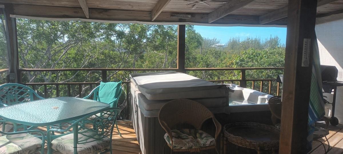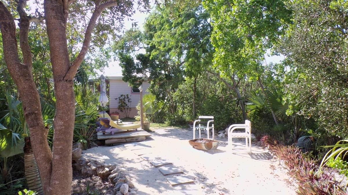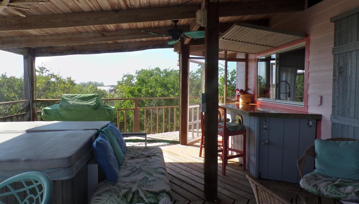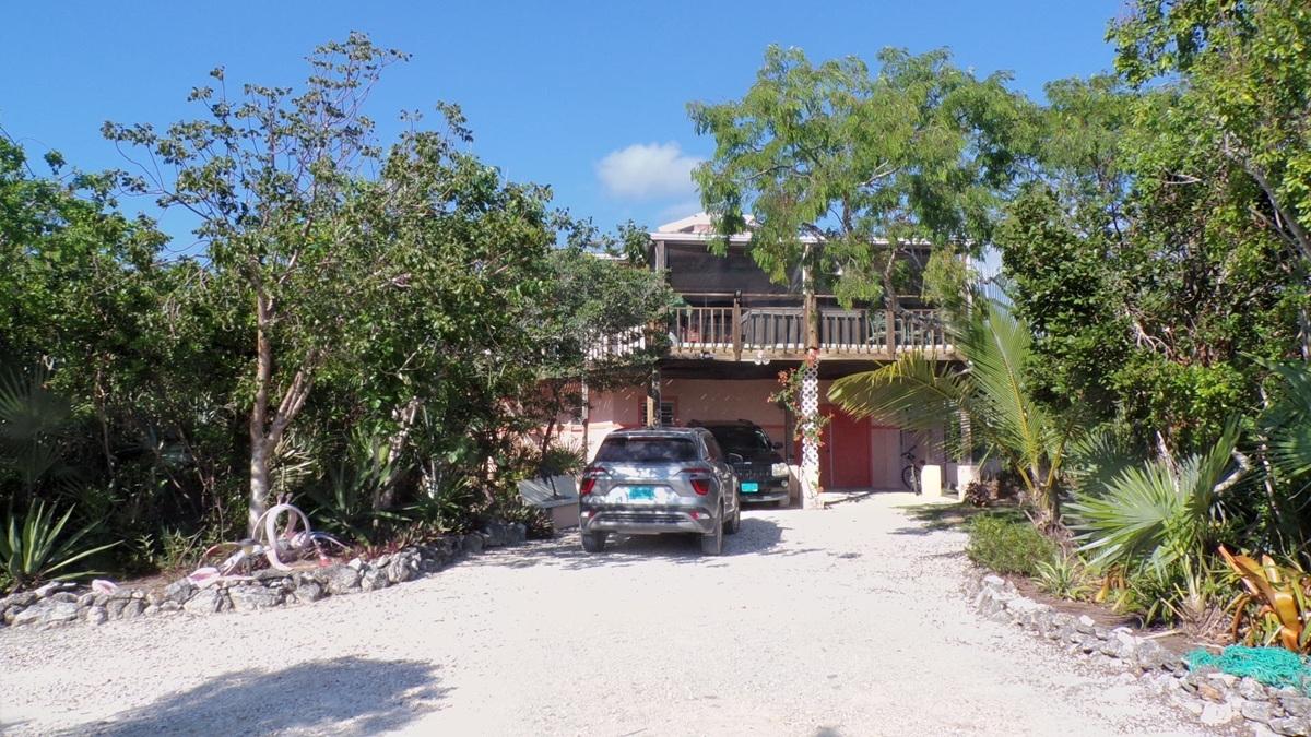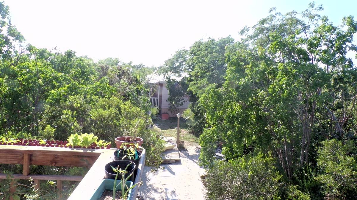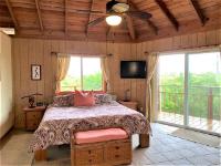 This spacious home along with a guest cottage sits in a tropical low maintenance setting with walkways between the homes where there is a hidden sundeck and garden area. This is a custom built 6-sided raised home with 360 degree views of the surrounding area including water and sunrise/sunset views. There are 2 bedrooms, 2 bathrooms, office/extra bedroom with an open plan Kitchen, dining and living room. Ceilings are open beam with a windowed cupola, and ceiling fans. A screened in area with plenty of seating, an outdoor bar and a 7 person hot tub sits in the perfect location for the right mix of sun, shade and breeze. The ground level has a 2-car covered carport, with an additional 1,200 sq. ft. workshop, mechanicals, laundry, a bonus room with 1/2 bath. There is an 18,000 gallon cistern with plenty of storage above. The guest cottage is 600 sq. ft. with 1 bedroom, 1 bathroom, an open kitchen, dinning and living room. A screened front porch for enjoying the tropical breeze while relaxing in your hammock. There is also an outdoor shower and a 5,000 gallon cistern.