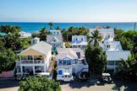 Bright, airy, and colourful home in the heart of Hope Town with postcard-perfect Elbow Reef Lighthouse views. The property has excellent storage and a flexible downstairs space, plus true boater appeal: private dock + parking and the ability to “pull your boat right up.” Layout has a kids’ bunk area, two king bedrooms—one ensuite—plus an extra full bath. Down stairs in the private bunk rooms, with access to basement, storage area for bikes & a basement with even more storage area plus a washer/dryer.