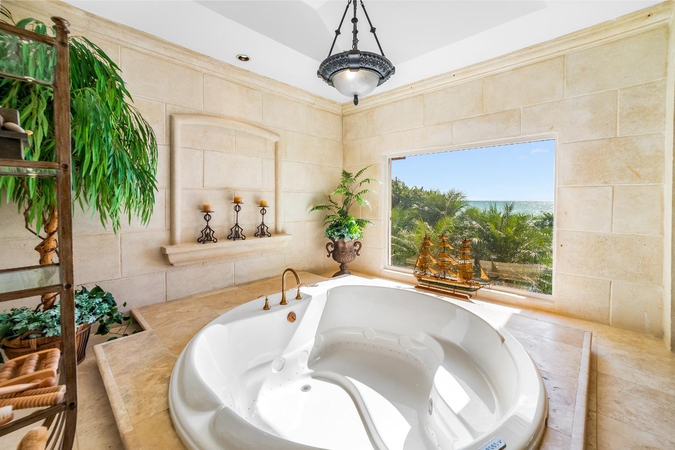 Experience refined island living in this exceptional single-family waterfront residence located in the sought-after Turtle Reef Settlement, East Grand Bahama. Designed for comfort, elegance, and functionality, this 3-bedroom, 3-bathroom home spans approximately 4,000 square feet and offers breathtaking ocean views throughout. The heart of the home is a spacious, chef-inspired kitchen outfitted with premium, high-end appliances, including a 36” Wolf oven, 30” Thermador oven, 36” Thermador induction cooktop, and a 30” GE Advantium halogen oven. Custom high-end cabinetry, a large pantry, and a generously sized laundry room add both style and convenience. Step outside to enjoy a waterfall pool overlooking 120 feet of pristine beachfront, perfect for entertaining or relaxing in total privacy. The property features irrigation from a private well, lush outdoor spaces, and a garage with ceramic flooring, as well as a dedicated gardener’s room with shower. Inside, luxury details abound, including designer ceilings, travertine flooring, hurricane-proof windows with shutters, and an elevator