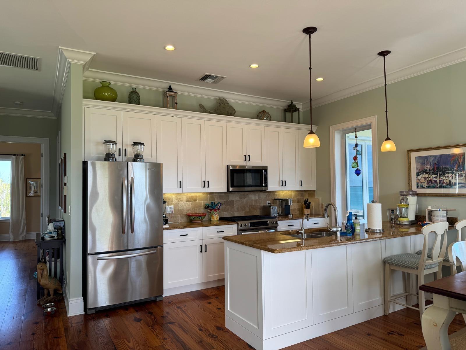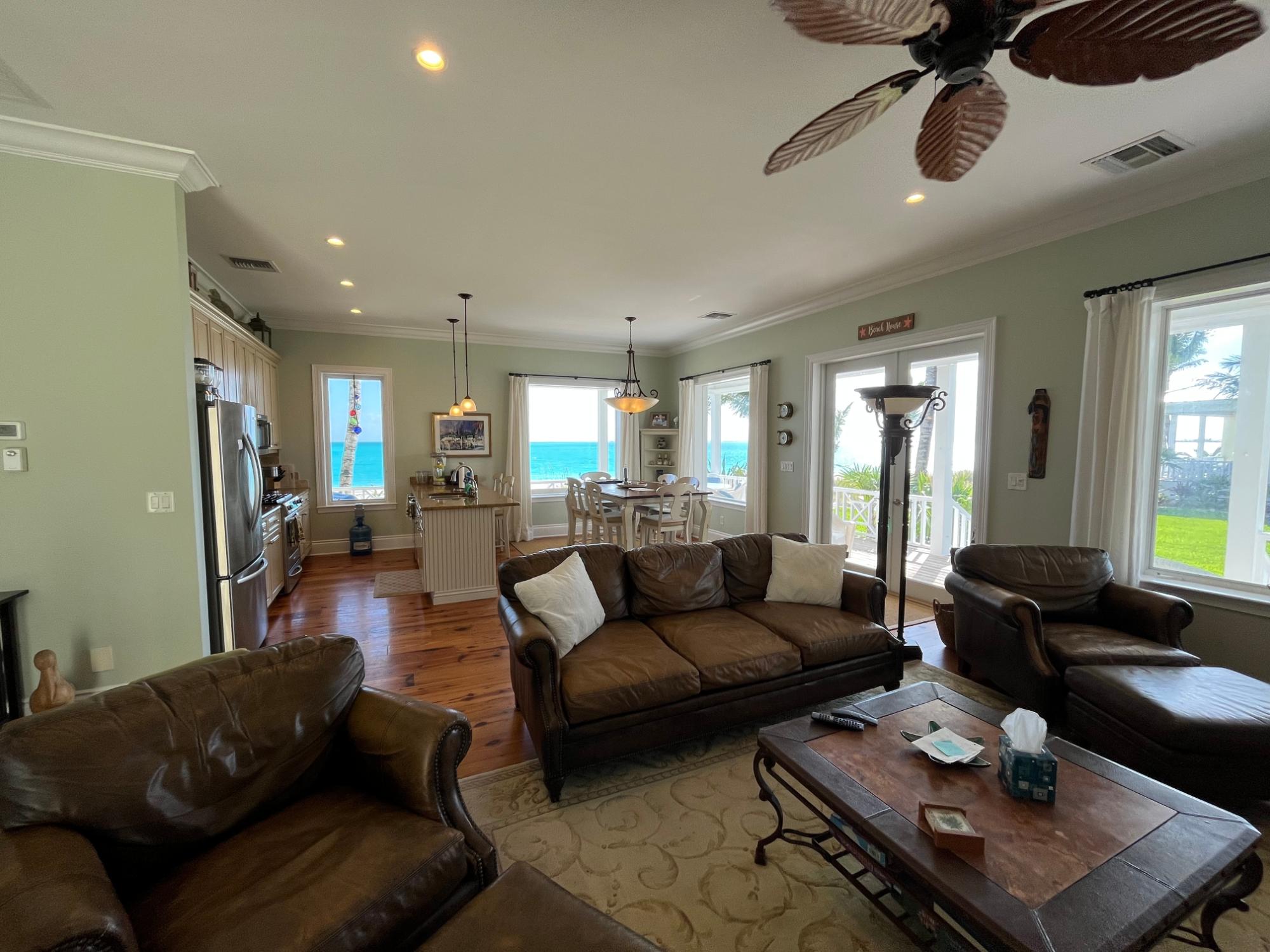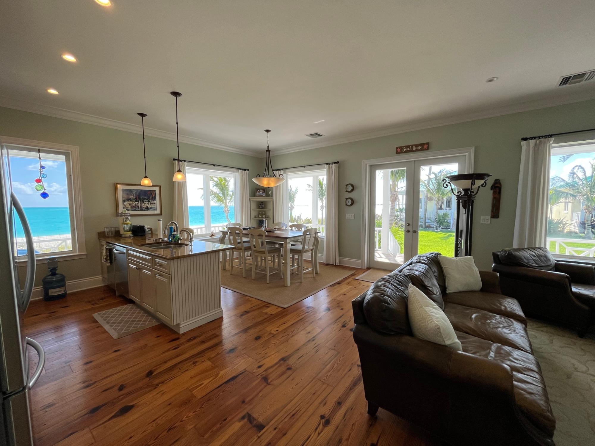 10 The Cottages is a dream come true if you love a home on the beach! In the centre of Treasure Cay's famous crescent shaped white sand beach the views of every shade of blue from every window on the main floor are so stunning as to be almost unbelievable! The Cottages is known for its sturdy concrete builds, its gorgeous landscaping and the functional design of its dwellings. The developer deeply understood Treasure Cay living. The lower level entrance is accessed via a golf cart/bike path and the covered porch has ample room for golf cart parking. The laundry/mud room is on this level as well as two guest bedrooms, family room & bathroom. The spacious master bedroom with its own sitting area & covered porch was designed for privacy. The wraparound porch on the main level faces Treasure Cay beach, the two pools and hot-tub. #10 also has an exterior storage/workshop area on the lower level large enough to store your golf cart! Additional locked owner's closet for those who wish to rent. It comes with a back-up generator and has new a/c units and new kitchen cabinets & appliances.
