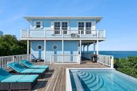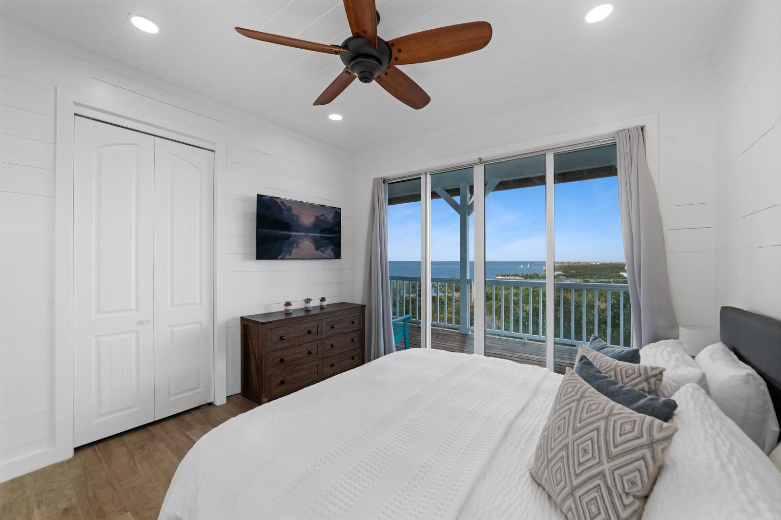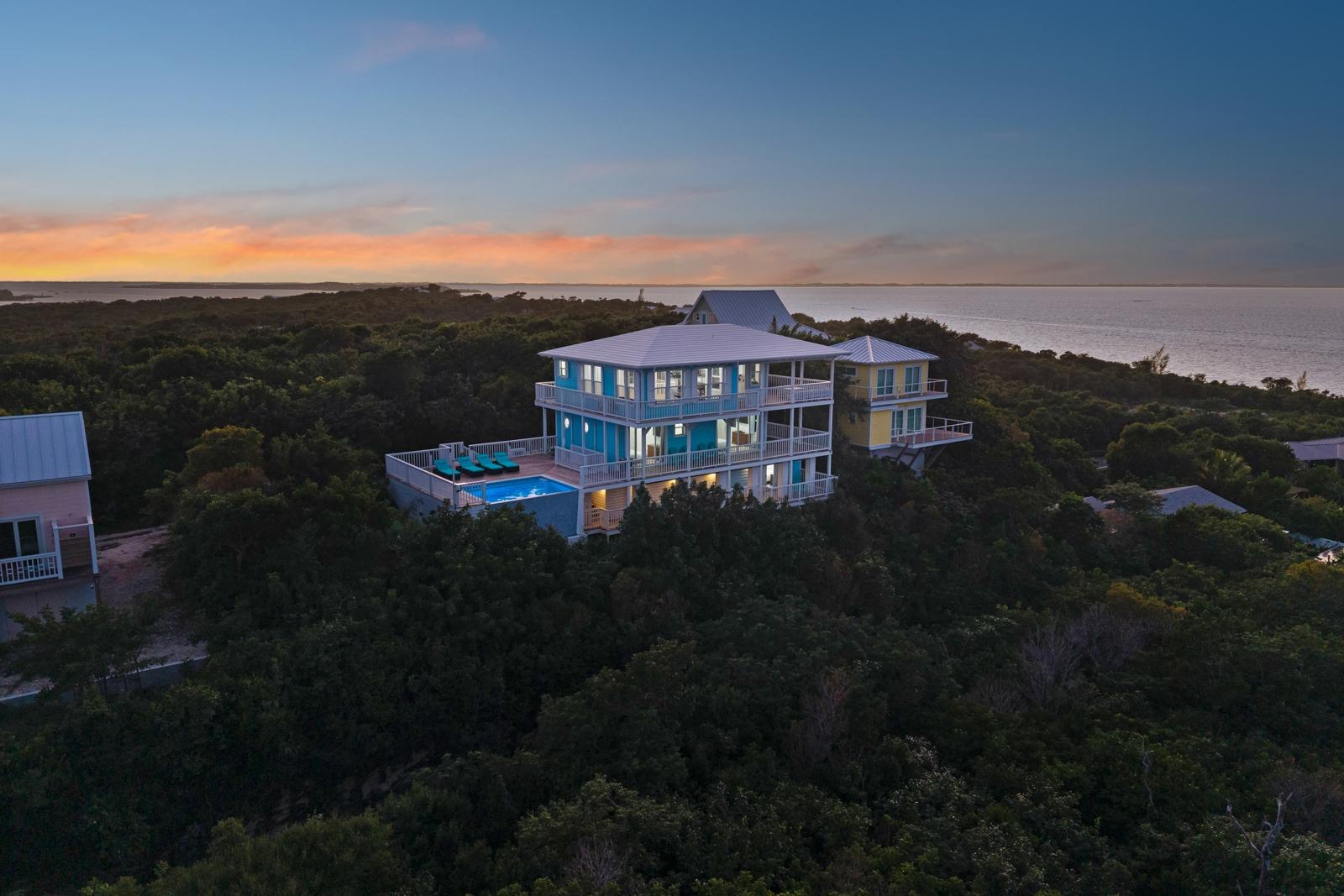 TRIPLE VISTAS: Sea of Abaco, Atlantic Ocean & Hope Town Harbour! This 3-story island retreat is located on one of the highest elevations Elbow Cay has to offer, with a falling grade that ensures panoramic water views and a gentle Bahama breeze. 4 bed/ 3.5 bath, and 1858 sq ft of fully air-conditioned living space with the crown jewel being the 1000 sq.’ sun deck with infinity pool overlooking the Sea of Abaco. Designed for a laid-back lifestyle, the expansive wrap-around decks on every level create ideal lounging havens. The top floor features indoor and outdoor great rooms. Perfect for family gatherings and entertaining! On the entrance floors of this inverted plan is a spacious master ensuite, guest room, bunk bedroom, laundry and 3rd bathroom. On the lower level, off the pool deck is another spacious en-suite with separate entrance and private balcony. Features include: wood-look ceramic tile, shiplap walls, 18KW diesel generator (auto-transfer), Starlink, and per-bedroom AC controls. Close to Sunset Exclusive Dockage, where the current owner has moorage. Proven rental history.