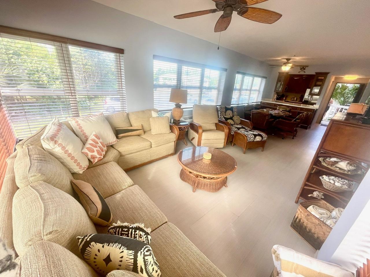Riviera Towers is a desirable beachfront development within walking distance of Port Lucaya—the vibrant hub of shopping, dining, and nightlife on Grand Bahama Island. Centrally located near the island’s best amenities, this first-floor, 2-bedroom, 2-bath condominium offers both comfort and convenience in an ideal coastal setting. The condo features a quality interior with a beautifully designed open-concept kitchen that flows seamlessly into the living room, allowing the cook to remain part of every gathering. A washer and dryer are conveniently located in the unit, along with water softener, and hurricane-impact windows provide added peace of mind. Outdoors, residents enjoy a stunning white sand beach, a swimming pool with chairs and umbrellas, and the nearby Coral Beach restaurant and bar, known for its live music on weekends—an excellent complement to the relaxed and social island lifestyle. Maintenance fee $505 monthly, assessment for painting the building is currently at 167/monthly until end of project.