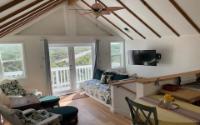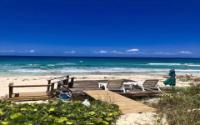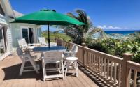 Situated in a desirable upscale neighborhood, this beautiful home is ocean front on a white sandy beach. The home has 2 ocean view bedrooms, each with its own bathroom at separate ends of the home. There is a full wet bar, and a built-in laundry area. Dramatic tongue and groove wood high ceilings in the great room, with upper windows letting in lots of light. Dining area has room enough for seating for 8 to 10 people with views of the ocean. Each room has its own mini split air conditioner. Sliding glass doors lead to the outdoor deck with plenty of room for outdoor eating and entertaining. Starlink has been installed for perfect internet connections. A few steps down the deck to a sandy path takes you to a white sand beach. The path is bordered with many palm trees leading to a sun deck at the water’s edge to one of the most beautiful beaches on Long Island, where you can walk over a mile. Since there is no public access, this a very private beach. There is an oversized garage with an apartment above that offers great views from an elevated deck.