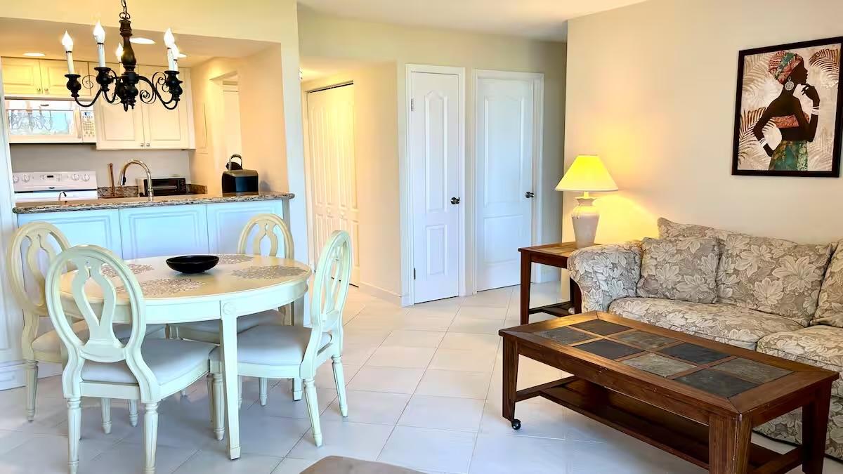 Experience true Bahamian living in this beachfront condo with direct access to the pool, pool bar, and beachside restaurant. The unit is well equipped with two full-size beds in the bedroom, a comfortable living room with sofa and chaise lounge , a four-piece dinette set, and a fully stocked kitchen. One of the few condos featuring a full-size in-unit washer and dryer, double sinks, and a clean, functional layout. Resort-style amenities include a pickleball court, garden areas, barbecue grills, shuffleboard, on-site med spa, full salon, massage parlor, resort wear boutique, gated entry & parking, and 24-hour security (guards and cameras). The property also offers four elevators and storage rooms available for rent. This unit has a strong rental history on Airbnb/VRBO and is ideal as an investment property or a cozy home away from home. Schedule your showing today.