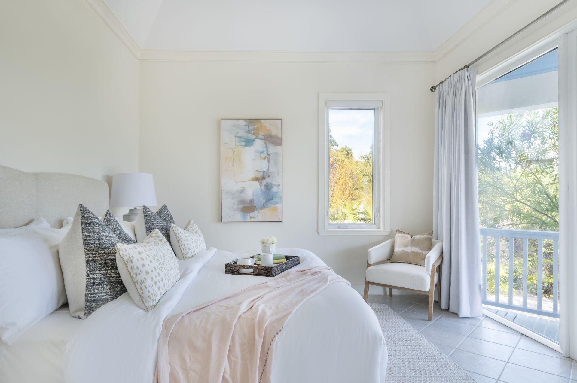 Beautifully landscaped gardens on either side of the driveway lead to Jumentos, a spectacular and luxurious four-bedroom beachfront estate with a private pool. Extensively covered decks extend from the great room, while each bedroom overlooks the pool and frames breathtaking views of the beach and ocean beyond. Set on an exceptional 1.5-acre beachfront parcel, Jumentos, Lot 33 at The Abaco Club on Winding Bay is perfectly positioned along miles of pristine white-sand shoreline. From the moment you step through the double French doors, sweeping aquamarine hues of Winding Bay pour in through expansive picture windows, creating a seamless connection to the surrounding seascape. Just inside the entrance, a staircase leads to the second-floor observatory level, offering stunning 360-degree views of the beach, Winding Bay, and the golf course. The heart of the home is an open-plan great room, newly updated with fresh furnishings, bedding, and accessories. The décor is refined yet relaxed, featuring soothing tones of aqua and beige that complement the coastal setting.