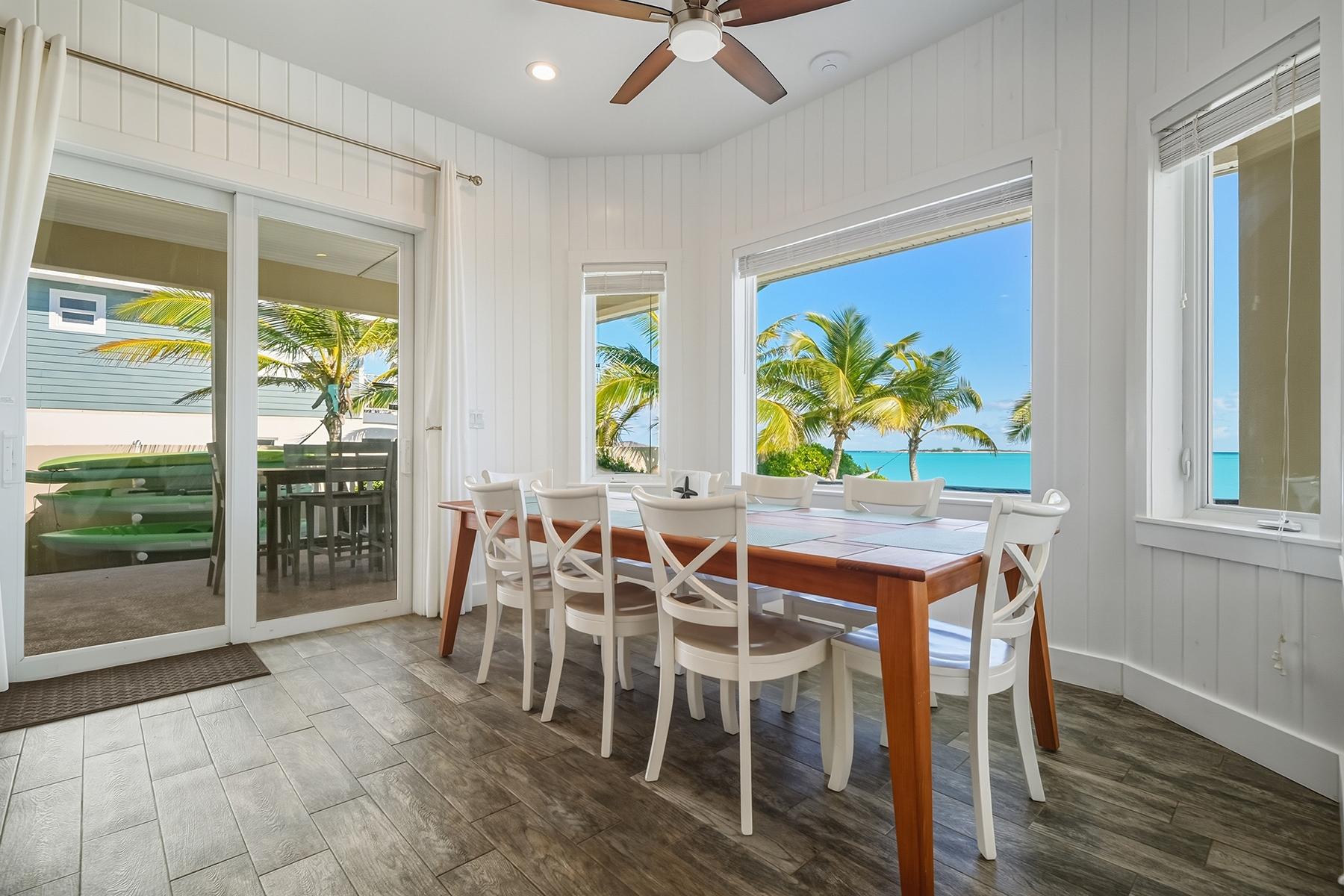 Discover your slice of paradise in this stunning 3-bedroom, 3-bathroom beach house nestled on the pristine shores of Jimmy Hill, Great Exuma, just minutes from Exuma International Airport (GGT). Perfect for effortless island living, frequent travelers, or savvy investors seeking a high-demand vacation retreat, this inviting home combines convenience with the quintessential Exuma experience. Step inside to an open-concept layout bathed in natural light, where expansive windows and sliding glass doors frame breathtaking turquoise ocean views and direct access to your private stretch of powdery white-sand beach. The spacious great room seamlessly blends living, dining, and kitchen areas?ideal for relaxed family gatherings or entertaining guests amid the soothing sounds of gentle waves. The well-appointed kitchen features modern appliances, ample counter space, and a breakfast bar, making meal prep a breeze whether you're whipping up fresh conch salad or tropical cocktails.