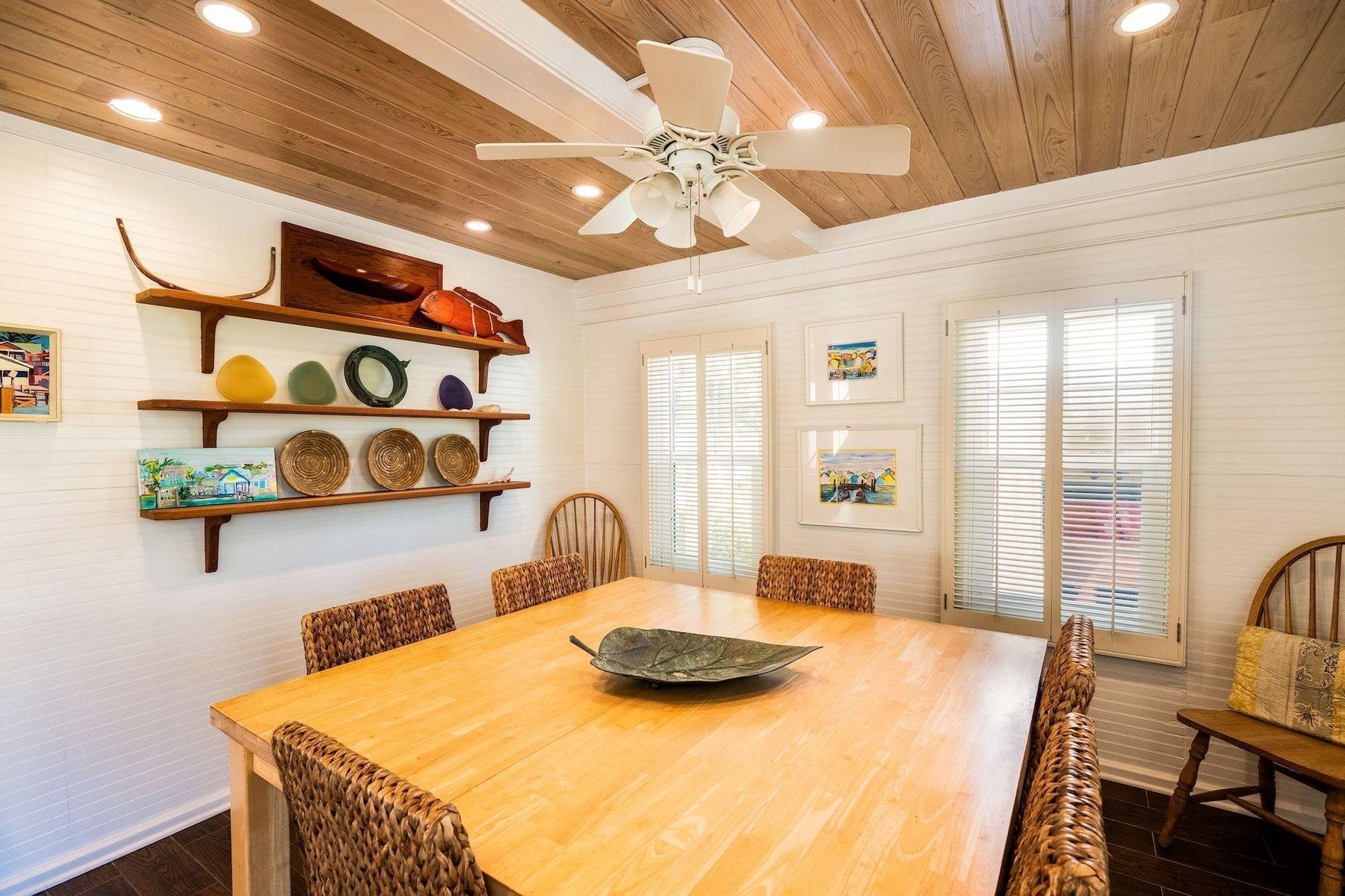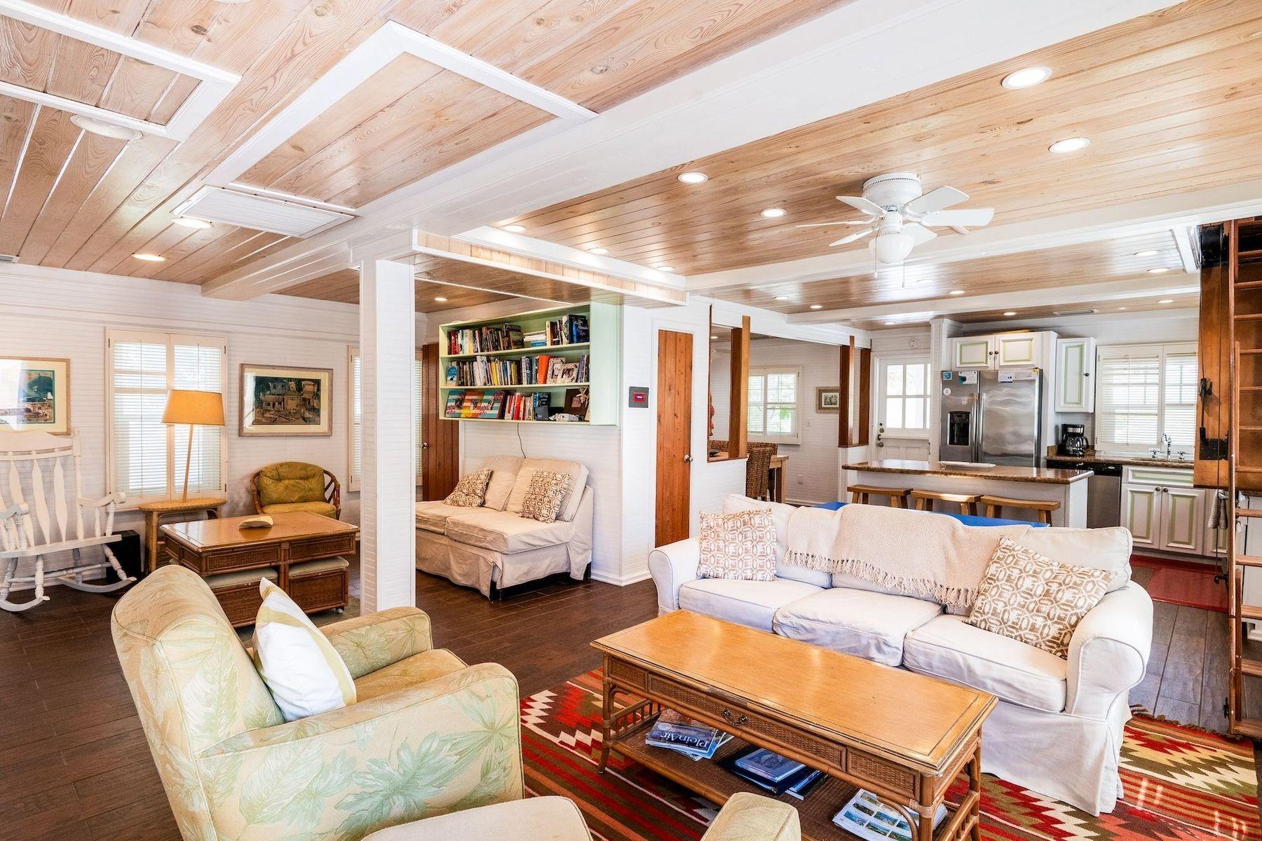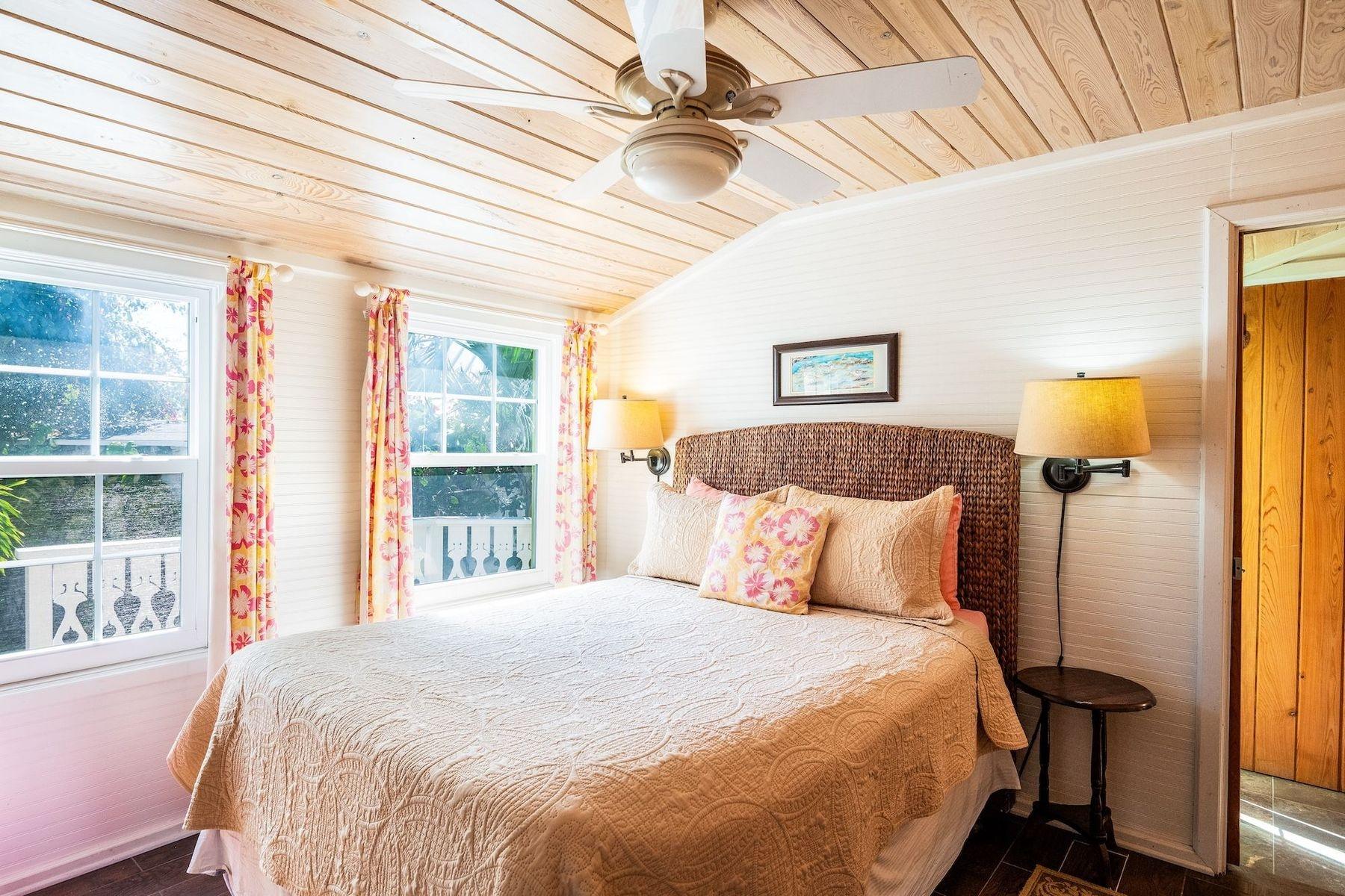 Experience the timeless appeal of Green Shutters, a restored 19th-century cottage with separate guesthouse in the heart of Hope Town on sought-after Elbow Cay. Just steps from Atlantic Beach, shops, dining, and public dockage, this prime location offers effortless access to the best of the settlement. The property features four bedrooms and three-and-a-half baths across two residences. The main house includes a welcoming front porch, open-concept living, two main-level bedrooms, and a charming loft retreat with private bath. The fully equipped kitchen boasts granite countertops, stainless steel appliances, and a breakfast bar. A private one-bedroom guesthouse with ensuite provides added flexibility for guests or extended family. A generator ensures comfort and peace of mind. Beautifully blending historic character with modern convenience, Green Shutters presents a rare opportunity to enjoy authentic island living in an exceptional setting.