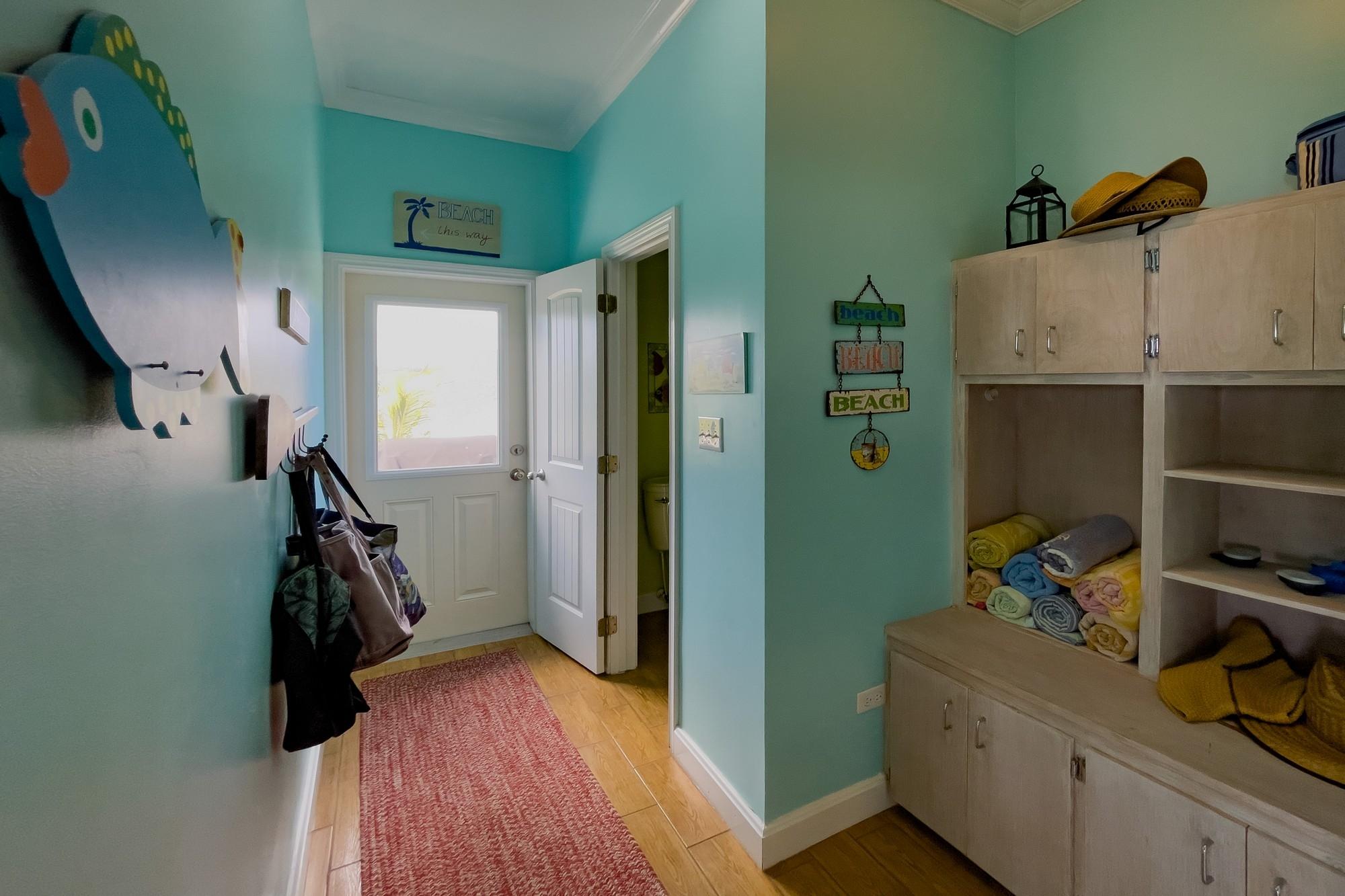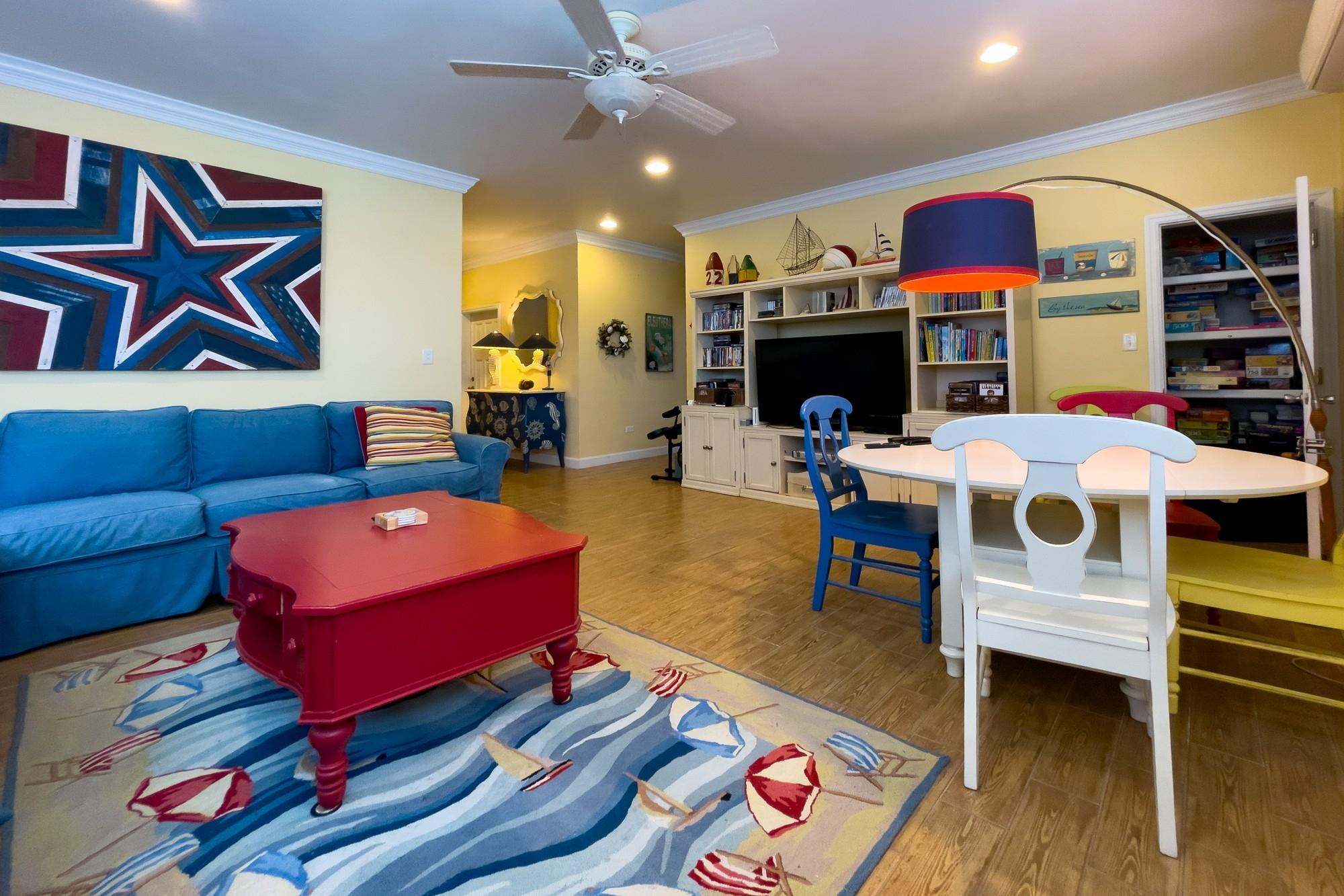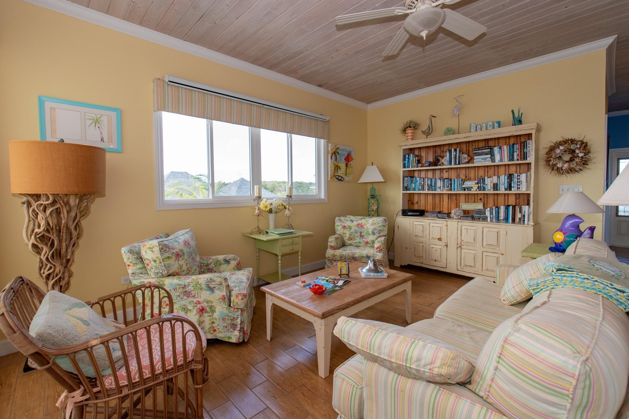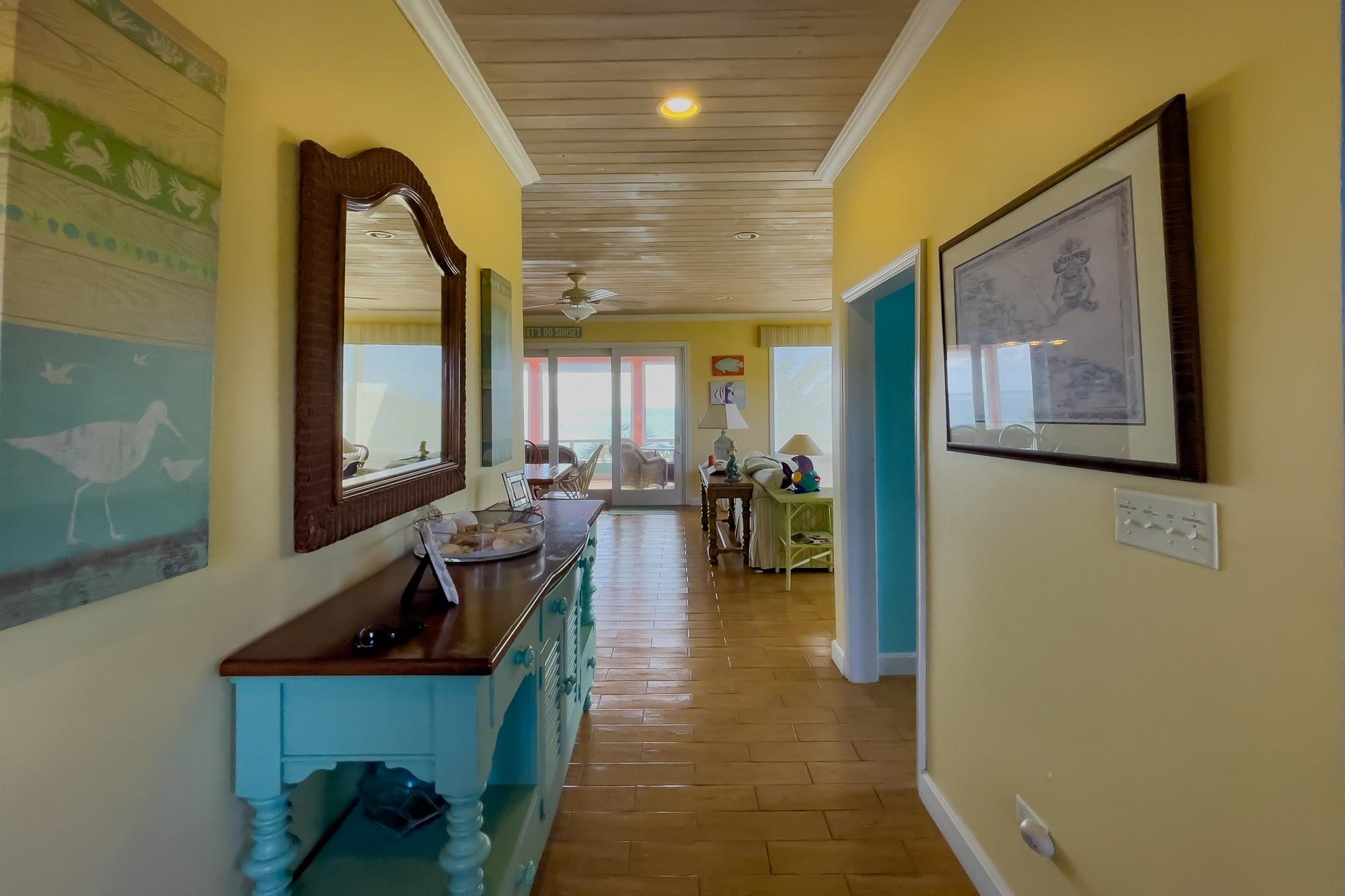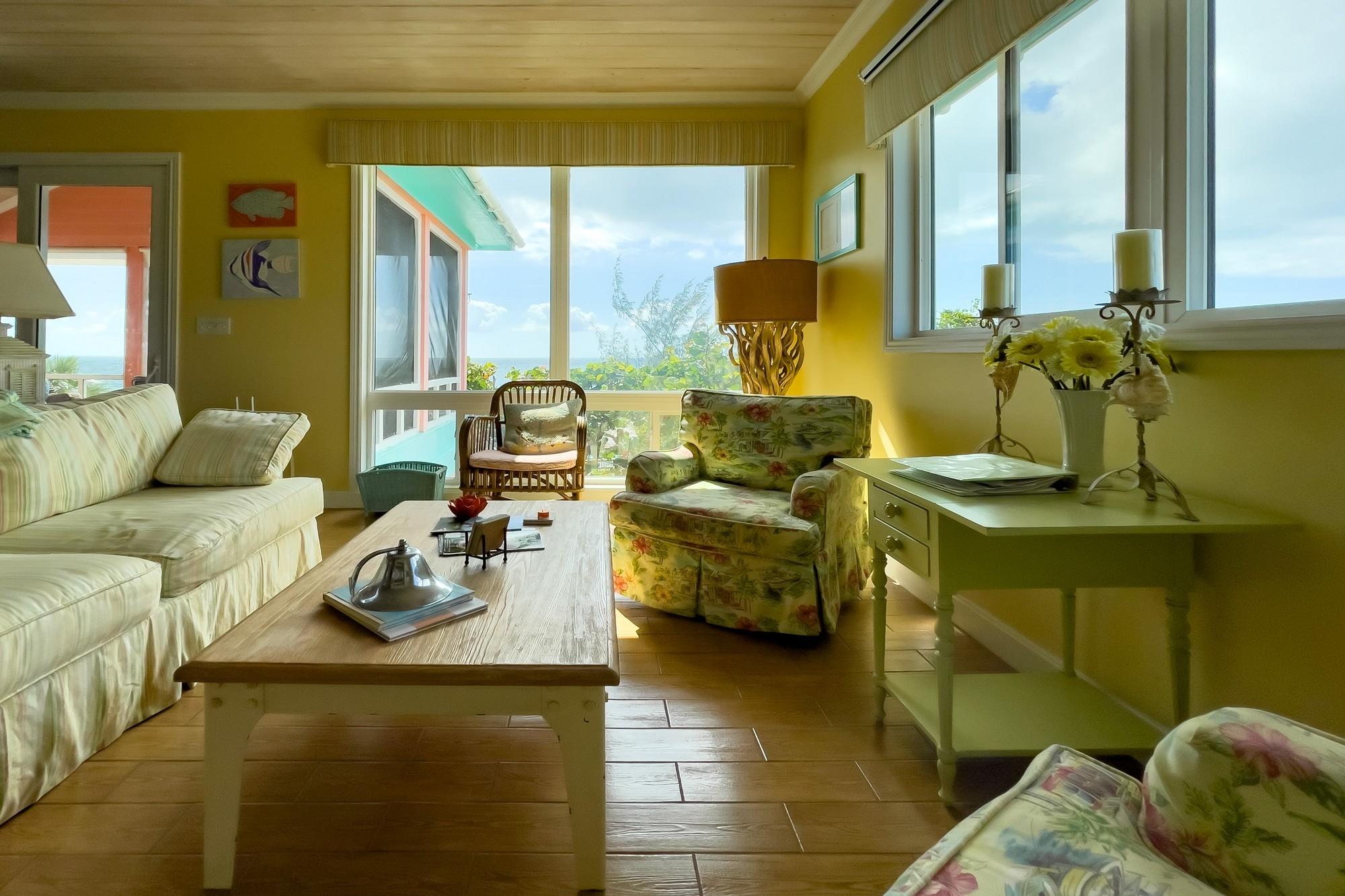 Welcome to Savannah Sunset, a stunning oceanfront home with a pool on the tranquil shores of Little Bay. Spanning two acres, this property offers ample space for additional cottages or a second residence. The great room boasts vibrant colors and breathtaking ocean views through expansive floor-to-ceiling windows. The open layout flows into a cheerful kitchen, spacious pantry, dining area, and a screened porch—ideal for relaxation, where you can enjoy the refreshing breezes and scenic vistas. The main level features two large bedrooms with king-sized beds and en-suite bathrooms. One bedroom overlooks the ocean, while the other offers views of the lush garden. Step outside to the boardwalk leading to the pool. The lower level is perfect for entertainment, with a cozy family room, plush seating, a large TV, and a wide selection of games, books, and activities. A bright bedroom accommodating up to six people is also located here, with a queen bed, twin beds, and trundles.