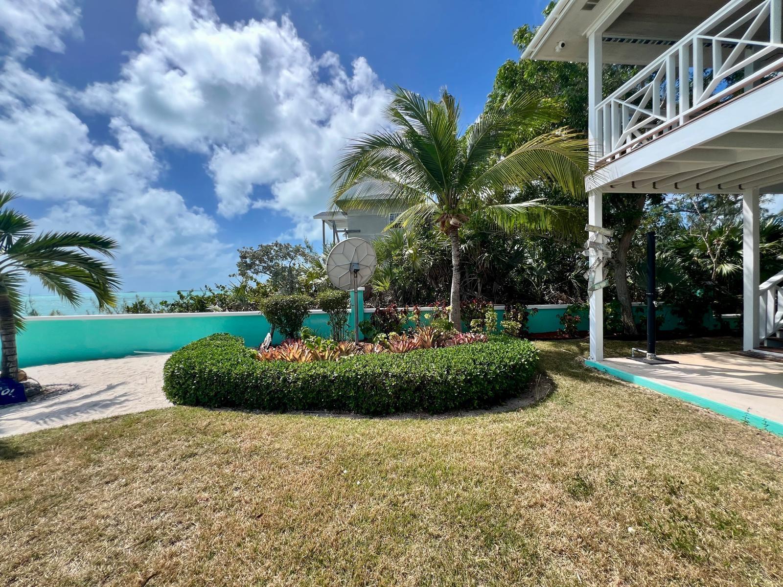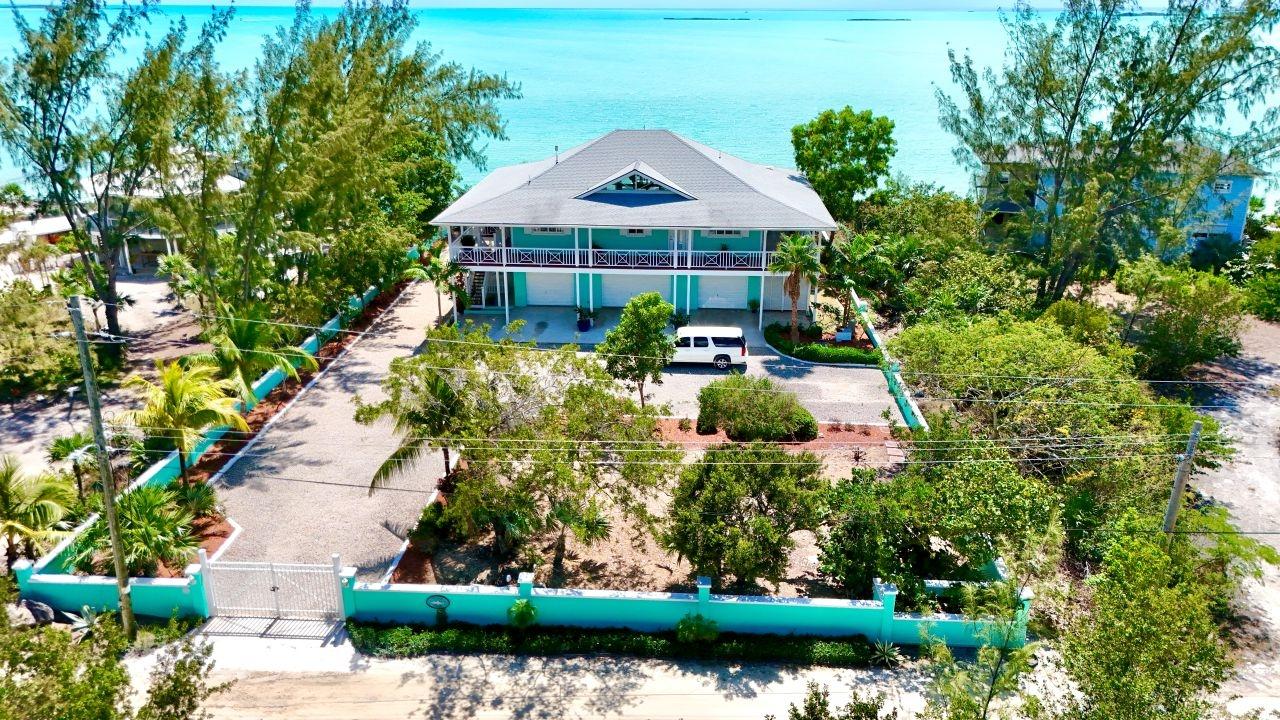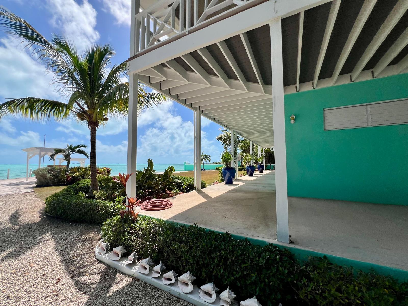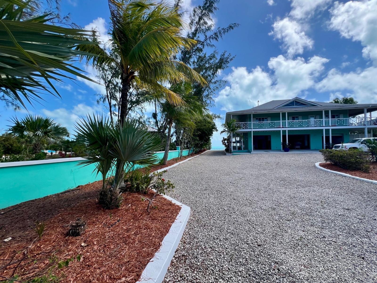 Situated on the south side of Amberjack Road, this exceptional waterfront property presents a rare opportunity to own a private coastal estate in beautiful Exuma. The property comprises approximately 100.04 linear feet of sandy and rocky shoreline. Its elevated height, approximately 10 feet above sea level, allows for refreshing sea breezes and stunning ocean views. Water is supplied by a freshwater well and reverse osmosis system. The residence is a two-story, 3-bedroom, 2.5-bath home comprising approximately 3,648 sq. ft. of interior living space, along with an additional 592 sq. ft. of covered verandahs, thoughtfully designed to take full advantage of the surrounding waterfront views and island breezes. All bedrooms have direct access to the verandah, allowing residents to enjoy the ocean views and cooling breezes right from their rooms. The home also features a half bath located in the laundry room, as well as an additional outdoor shower that is accessed from outside the home. The grounds are beautifully landscaped with a variety of mature palms and tropical hedges.
