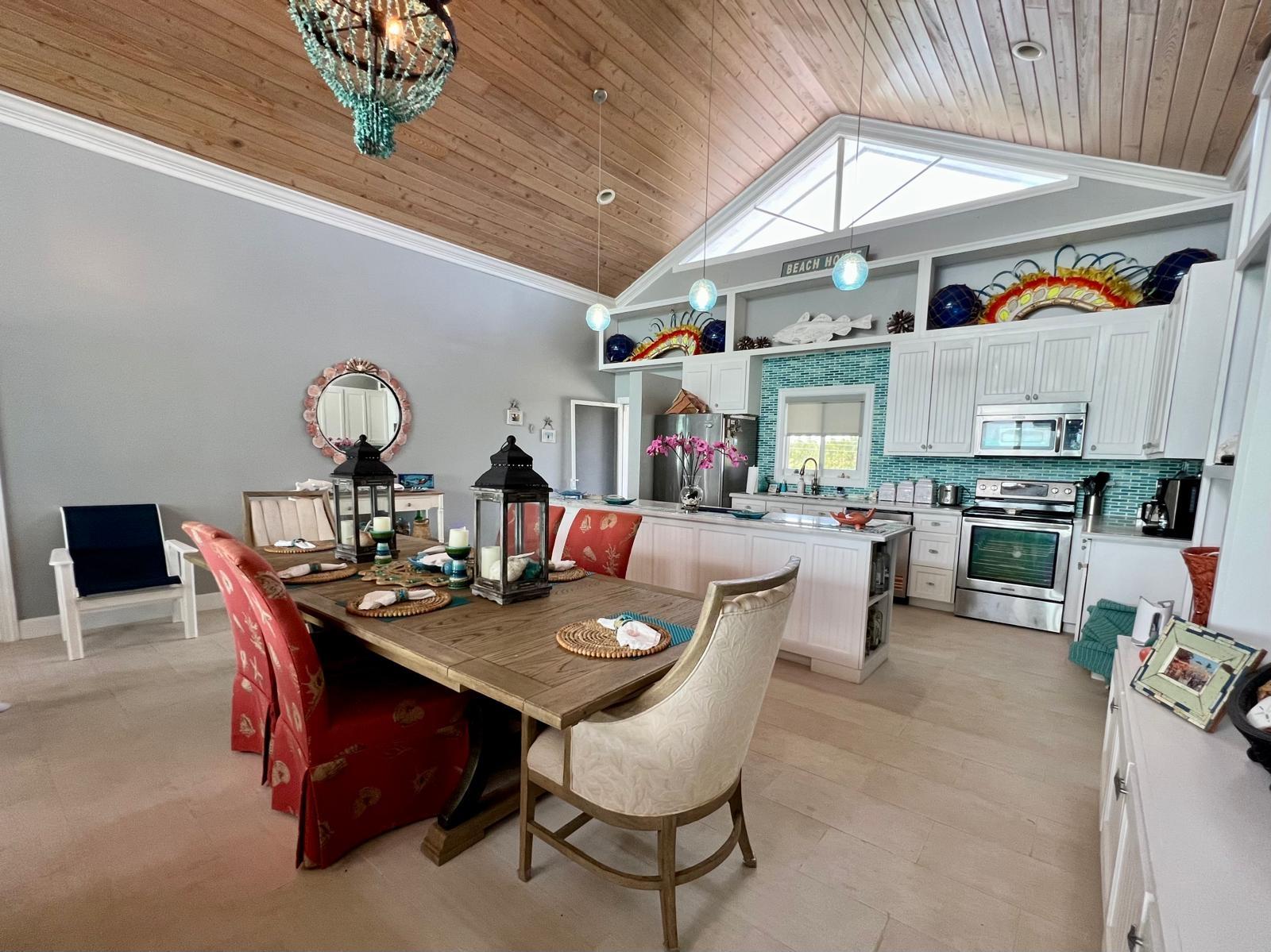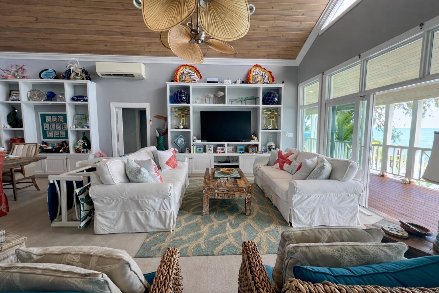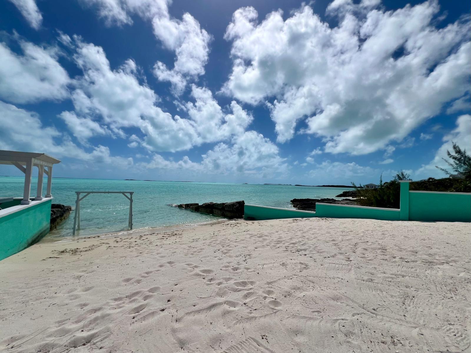 Situated on the south side of Amberjack Road, this exceptional waterfront property presents a rare opportunity to own a private coastal estate in beautiful Exuma. The property comprises approximately 100.04 linear feet of sandy and rocky shoreline. Its elevated height, approximately 10 feet above sea level, allows for refreshing sea breezes and stunning ocean views. Water is supplied by a freshwater well and reverse osmosis system. The residence is a two-story, 3-bedroom, 2.5-bath home comprising approximately 3,648 sq. ft. of interior living space, along with an additional 592 sq. ft. of covered verandahs, thoughtfully designed to take full advantage of the surrounding waterfront views and island breezes. All bedrooms have direct access to the verandah, allowing residents to enjoy the ocean views and cooling breezes right from their rooms. The home also features a half bath located in the laundry room, as well as an additional outdoor shower that is accessed from outside the home. The grounds are beautifully landscaped with a variety of mature palms and tropical hedges.
