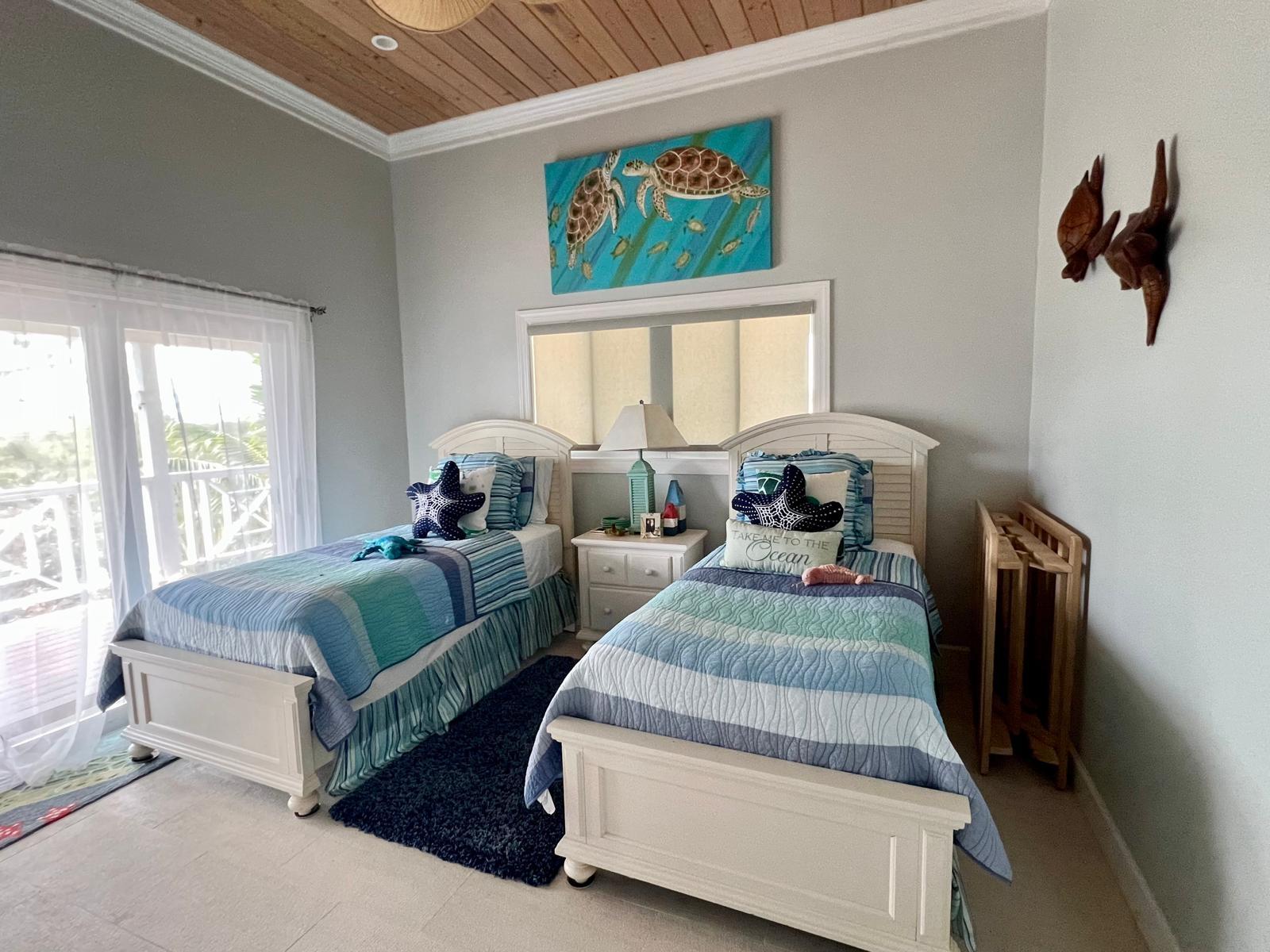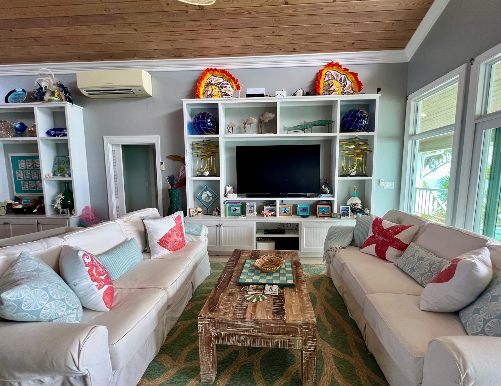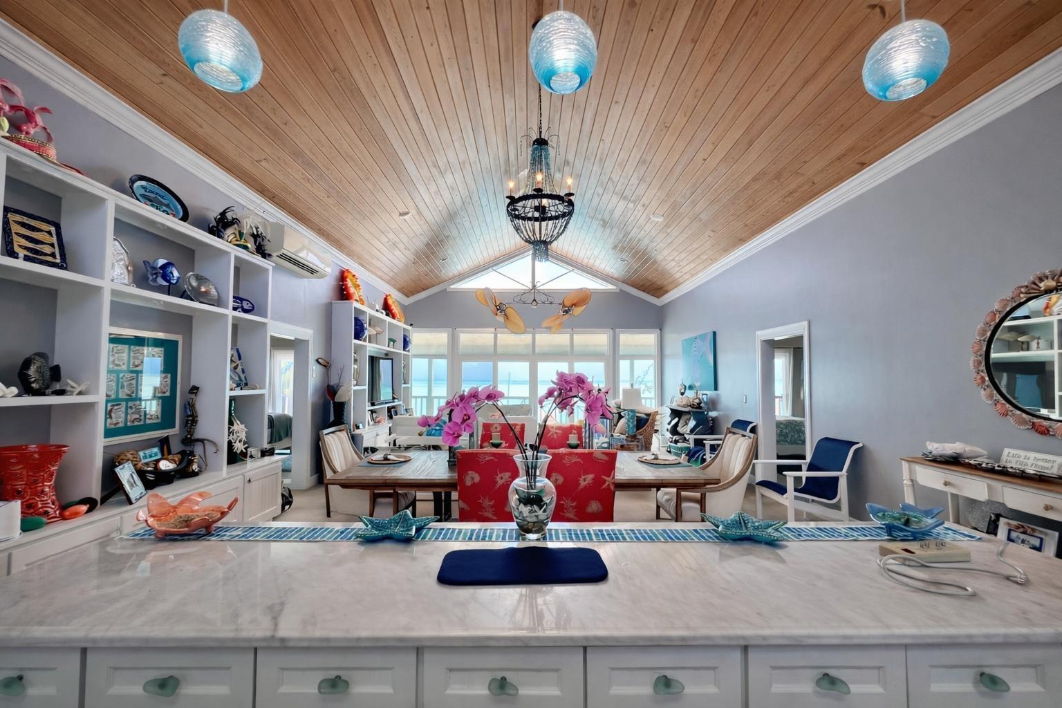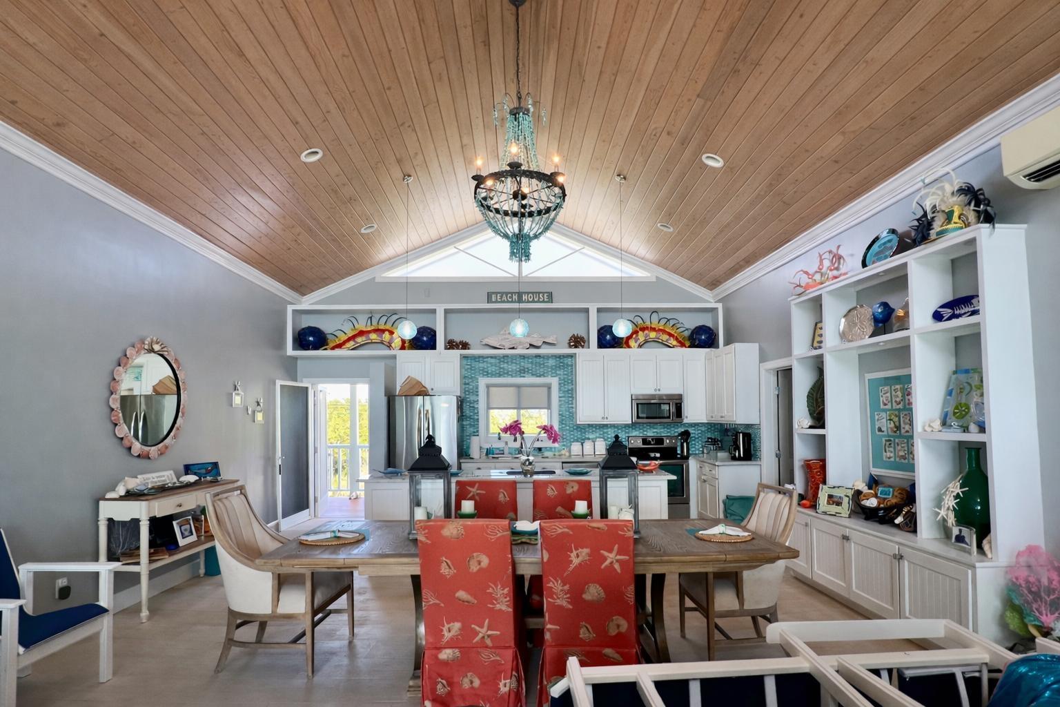 Situated on the south side of Amberjack Road, this exceptional waterfront property presents a rare opportunity to own a private coastal estate in beautiful Exuma. The property comprises approximately 100.04 linear feet of sandy and rocky shoreline. Its elevated height, approximately 10 feet above sea level, allows for refreshing sea breezes and stunning ocean views. Water is supplied by a freshwater well and reverse osmosis system. The residence is a two-story, 3-bedroom, 2.5-bath home comprising approximately 3,648 sq. ft. of interior living space, along with an additional 592 sq. ft. of covered verandahs, thoughtfully designed to take full advantage of the surrounding waterfront views and island breezes. All bedrooms have direct access to the verandah, allowing residents to enjoy the ocean views and cooling breezes right from their rooms. The home also features a half bath located in the laundry room, as well as an additional outdoor shower that is accessed from outside the home. The grounds are beautifully landscaped with a variety of mature palms and tropical hedges.