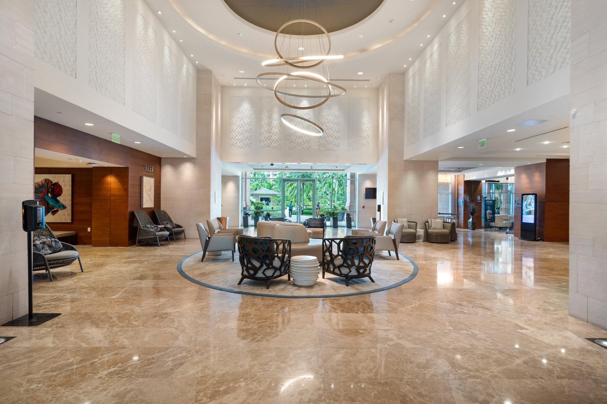 The Reef Residences at Atlantis is a sanctuary of exclusivity and luxury. Seamlessly blending contemporary design with island-inspired accents, this magnificent condo is infused with luxury and beachfront living. The Reef Residences at Atlantis is the only building on the beach at Atlantis that offers full kitchens. The Reef brags of its newly remodeled elegant suites, fully furnished, from linens to tableware and features a wide array of custom interior amenities such as crown molding, granite countertops, and fine European kitchen cabinetry. Owners of The Residence at Atlantis (The Reef) have exclusive access to their private gym, a Starbucks Cafe conveniently located in the lobby, and an owner's concierge team is available to assist with everything from dinner reservations to in-house massages and cocktail parties. Other amenities include access to the adult pool at the Cove and Aquaventure at Atlantis.